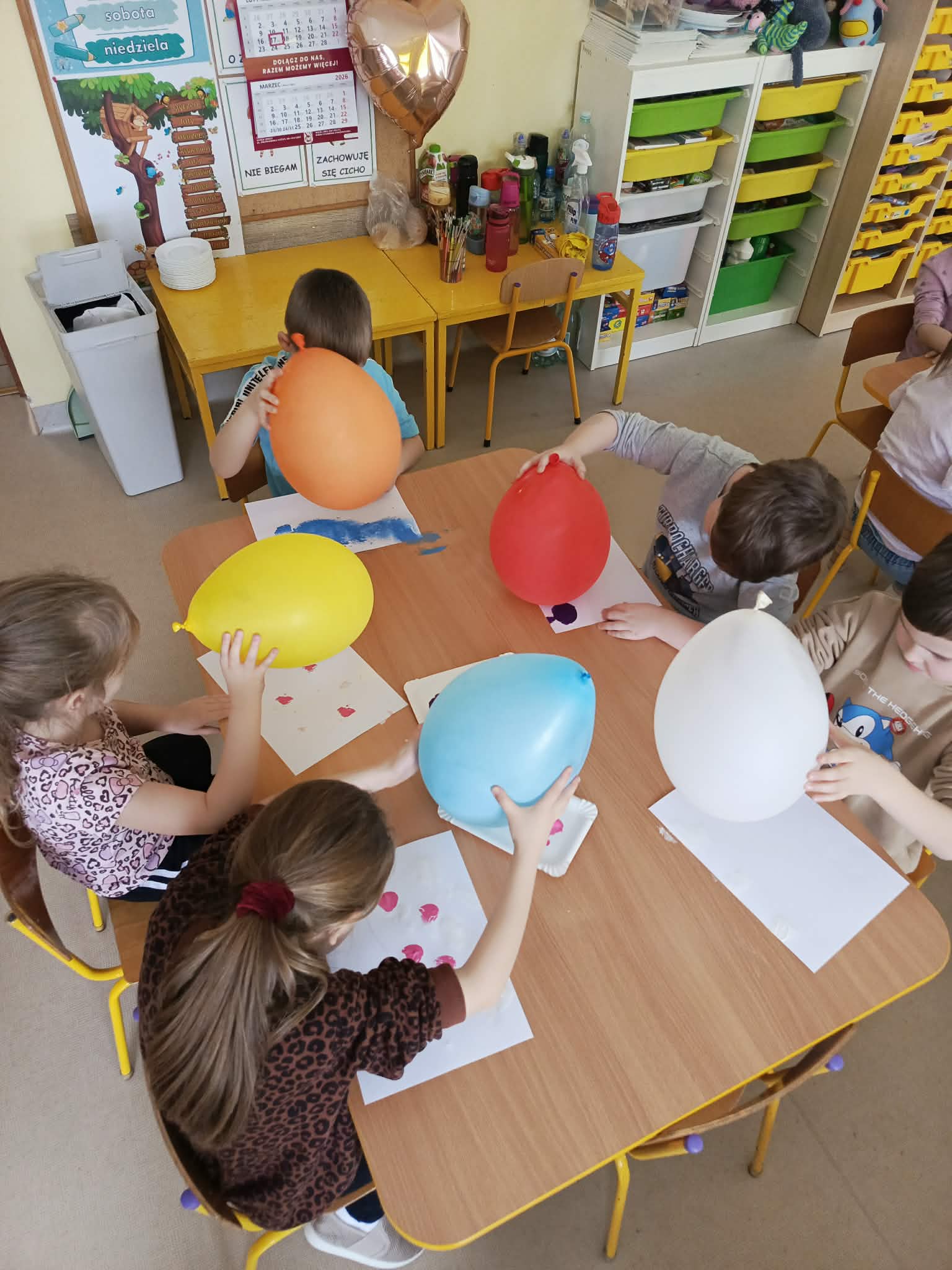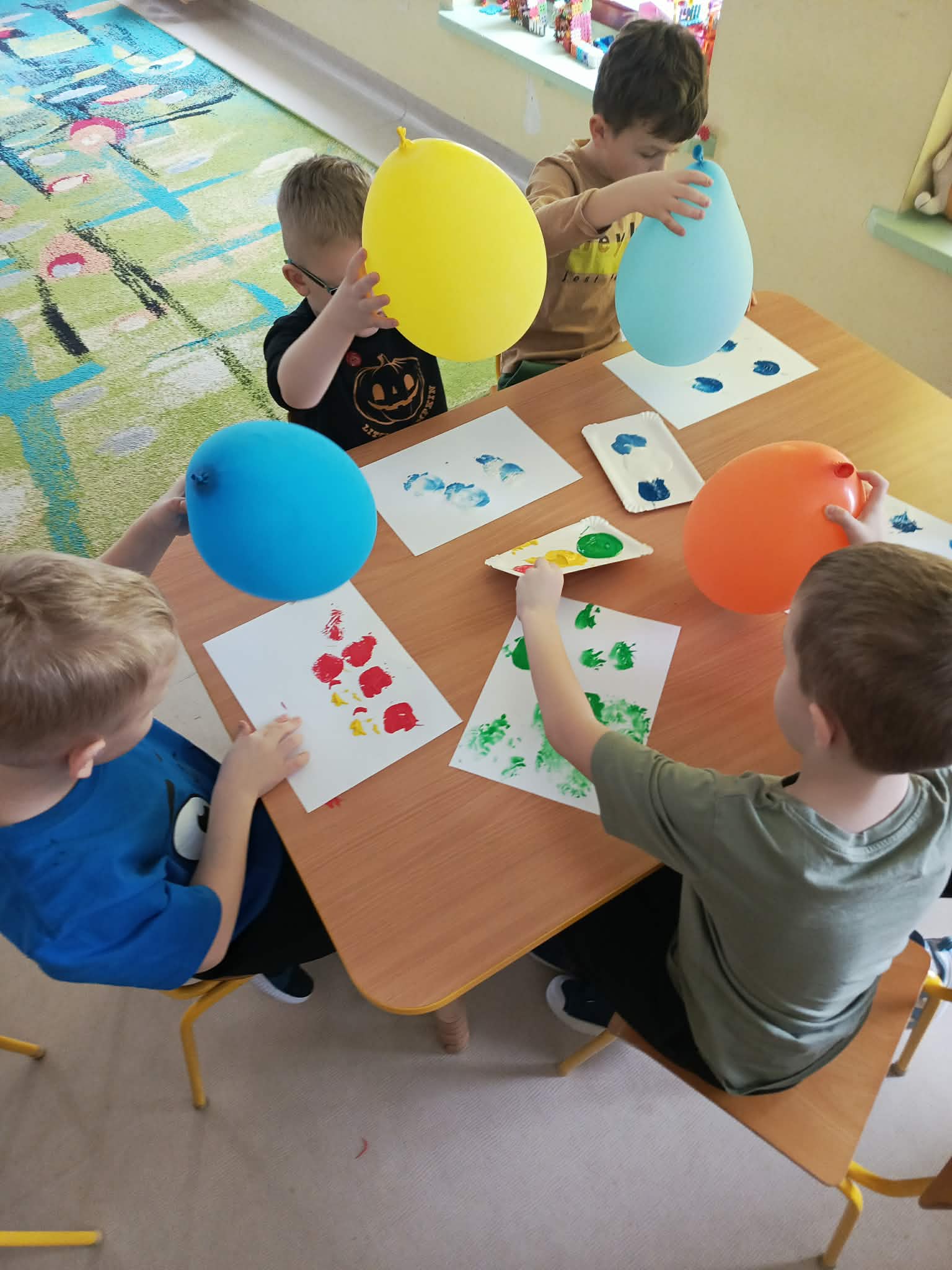 Przez pięć lat trwania projektu uzbierał się pokaźny zbiór inspiracji wprowadzających w świat sztuki. Wybraliśmy i zrealizowaliśmy zadanie z poprzedniej edycji, tj. 2022-2023 pt. "Nietypowy pędzel", ponieważ wykorzystaliśmy w ten sposób kolorowe balony, które wcześniej dodały uroku podczas balu karnawałowego. W ten o to sposób, przy użyciu kolorowych farb, "Motylki" stworzyły prawdziwe arcydzieła. To było fantastyczne ćwiczenie motoryki małej, wyobraźni oraz kreatywności. Realizacja tego zadania sprawiła dzieciom mnóstwo radości i potwierdziła fakt, że sztuką naprawdę można się fantastycznie bawić. Zachęcamy do takich działań również w środowisku domowym dziecka i podejmowania prób malowania różnymi, nietypowymi pędzelkami.