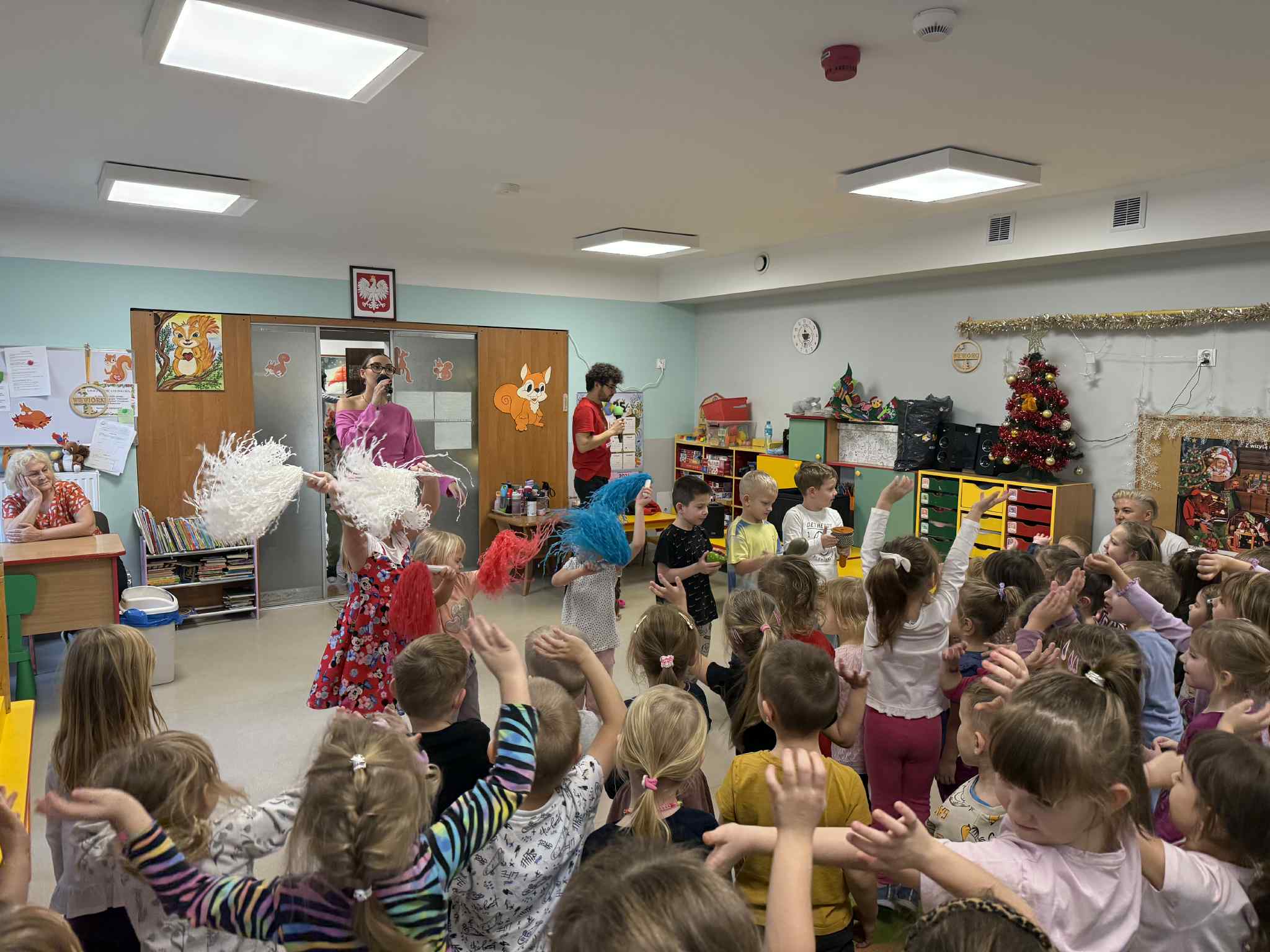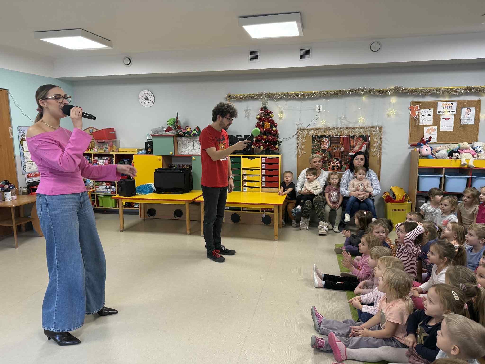 Podczas naszej comiesięcznej audycji wyruszyliśmy w niezwykłą muzyczną podróż po różnych krajach świata. Odwiedziliśmy m.in. Paryż, Włochy, Polskę oraz Republikę Południowej Afryki. Każdy z tych krajów przywitał nas inną, charakterystyczną piosenką, dzięki czemu mogliśmy poznać różnorodność kultur i brzmień. W czasie spotkania dowiedzieliśmy się również, kto przynosi prezenty w różnych krajach, co było bardzo ciekawą i zabawną częścią audycji. Nie zabrakło także ćwiczeń oddechowych i wokalnych, które pomogły nam rozgrzać głosy i lepiej przygotować się do śpiewu. Było to pełne radości, muzyki i nowych doświadczeń spotkanie!