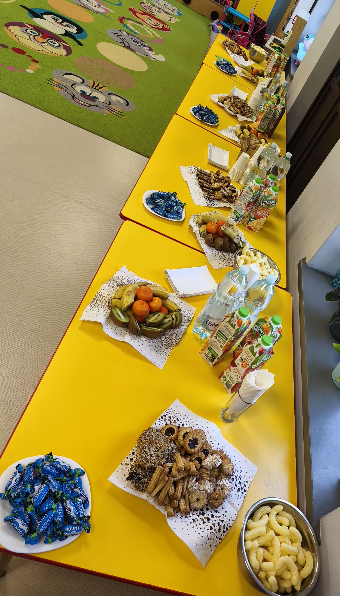 Tego dnia mieliśmy okazję spotkać się z Rodzicami przyszłych przedszkolaków. Na wstępie powitała nas p. Dyrektor - Anna Kasprowicz, która przedstawiła obecne nauczycielki. Dla Rodziców zaplanowano zwiedzanie sal, rozmowy z nauczycielkami i specjalistami oraz zapoznanie z ofertą przedszkola. Dla dzieci natomiast przygotowano we wszystkich salach wiele, ciekawych atrakcji w postaci: zabaw sensorycznych, ruchowych, plastycznych oraz manipulacyjnych. Nie mogło również zabraknąć pysznego poczęstunku i upominków dla naszych Gości w postaci fantastycznych tatuaży, kolorowych bransoletek, baloników, broszur informacyjnych oraz naklejek. Mamy nadzieję, że Państwo miło i aktywnie spędziliście czas w murach naszego przedszkola i serdecznie zapraszamy od września.