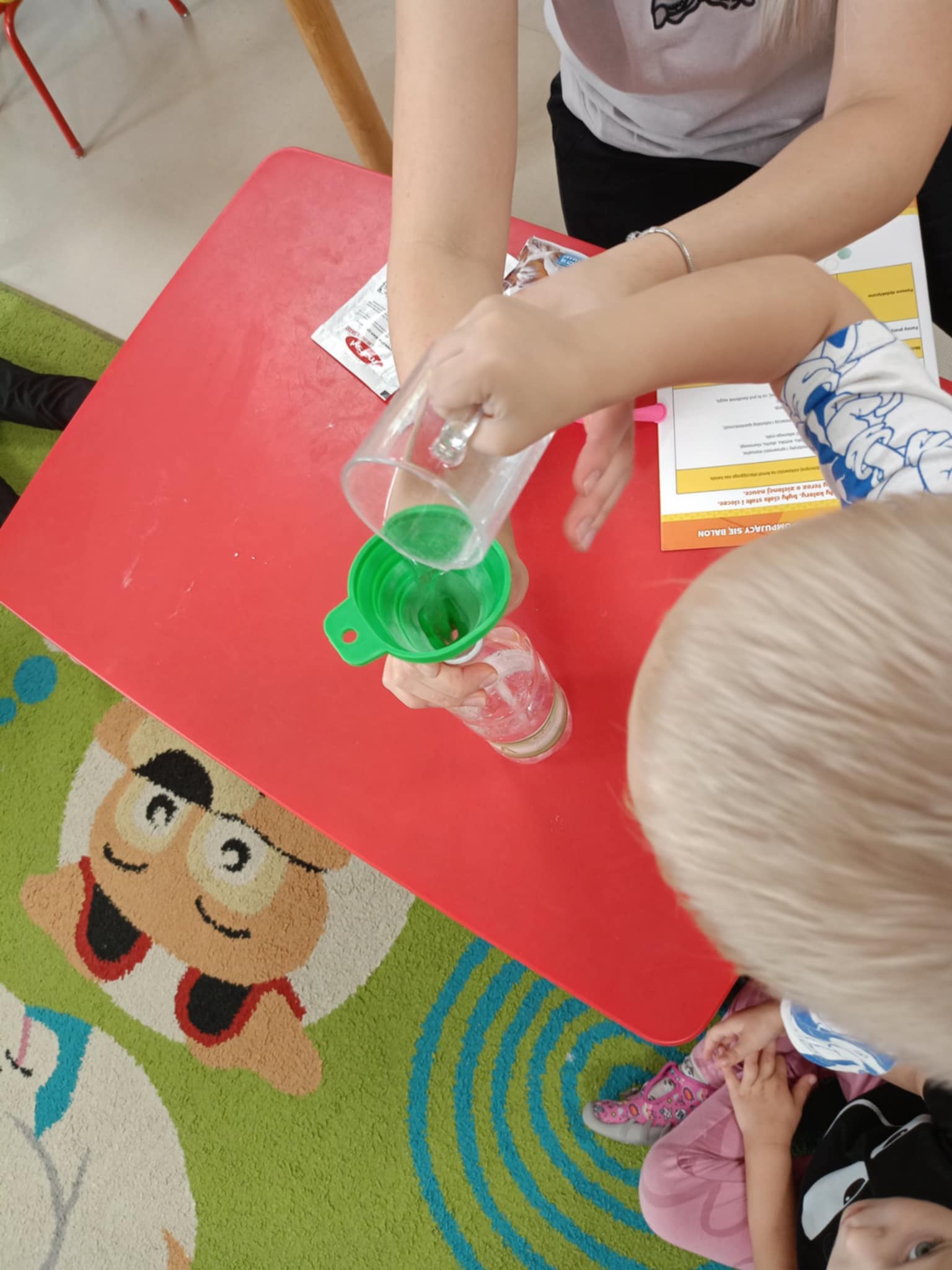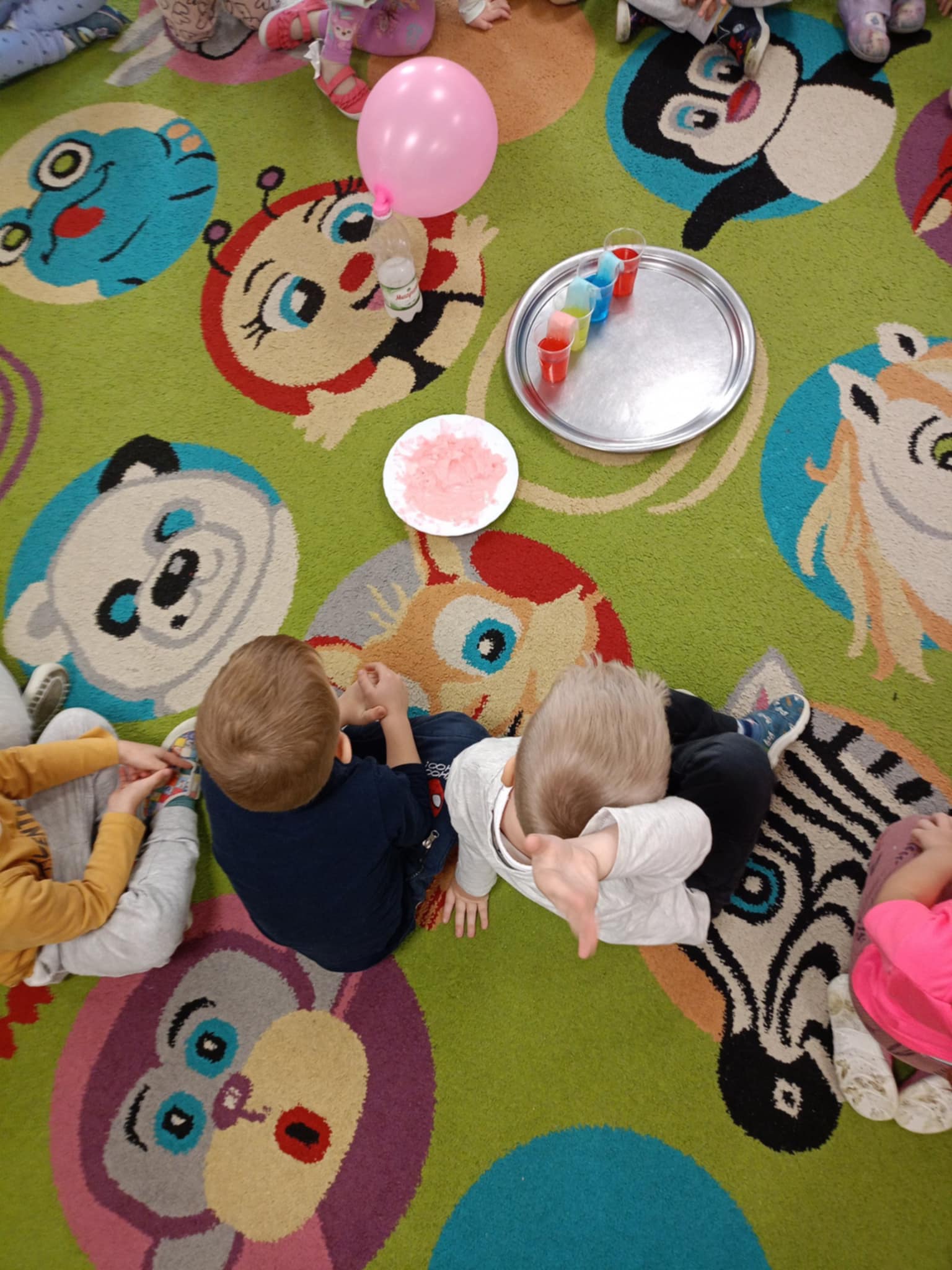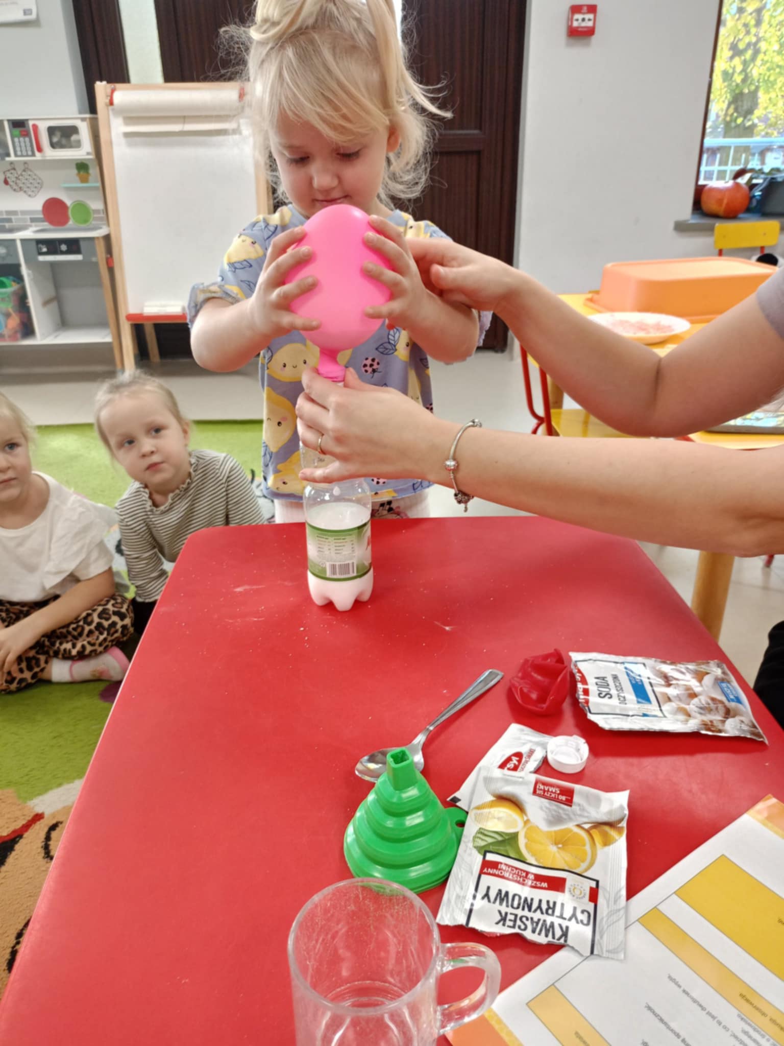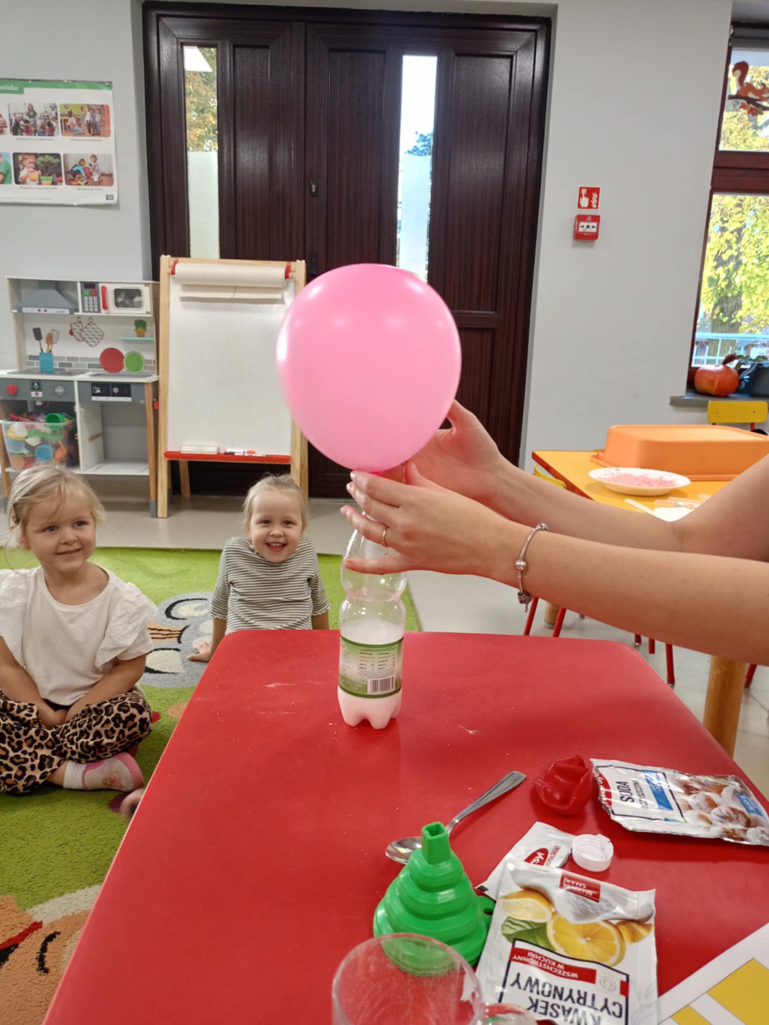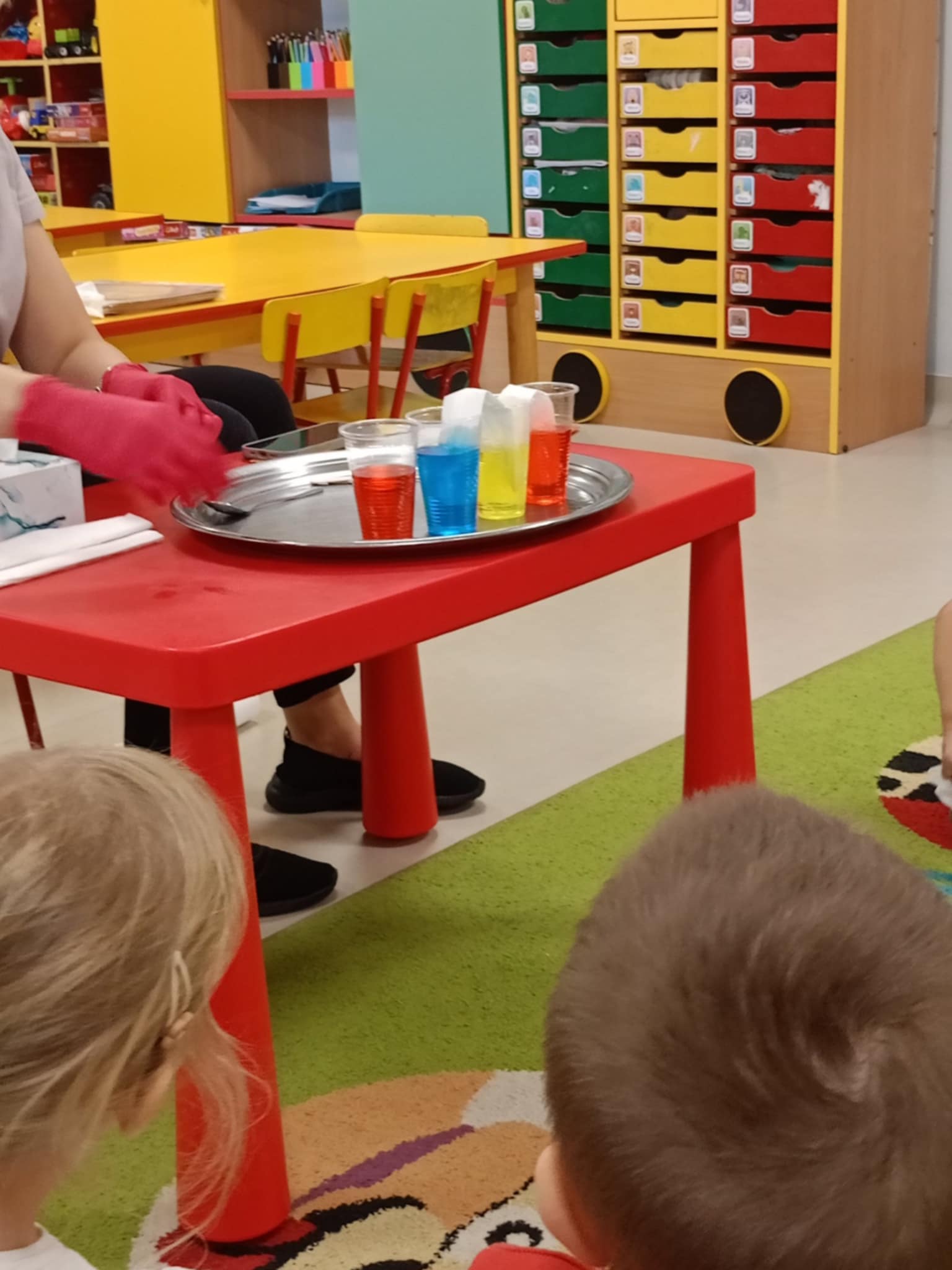 We wtorek „Wiewiórki” wzięły udział w zajęciach w ramach akcji „ Iron Man i super ekipa. Laboratorium odkrywców”. Na początku nauczyciel przedstawił dzieciom ideę akcji oraz postacie z drużyny Iron Mana. Dzieci dowiedziały się, że tego dnia same wcielą się w rolę odkrywców i przeprowadzą prawdziwe eksperymenty naukowe. Omówiono również zasady bezpieczeństwa obowiązujące podczas doświadczeń. Następnie, korzystając z materiałów z Pakietu powitalnego (kubeczki, barwniki, balony, soda oczyszczona, kwasek cytrynowy), dzieci wykonały doświadczenie „Magiczny balon”. Obserwowały, jak podczas reakcji kwasku cytrynowego z sodą powstaje gaz, który nadmuchuje balon. Wykonały także eksperyment „Wędrujące kolory” oraz obserwowały powstanie cieczy twardej jak skała. Eksperymenty wzbudziły duże zainteresowanie- dzieci z entuzjazmem obserwowały efekty i dzieliły się swoimi spostrzeżeniami. Dzięki tym doświadczeniom nie tylko nauczyły się czegoś nowego, ale również przekonały się, że warto zadawać pytania, szukać odpowiedzi i cieszyć się samym odkrywaniem. Każde dziecko otrzymało dyplom z kolorowanką, naklejki oraz list dla rodziców, zachęcający do kontynuowania idei eksperymentowania w domu.