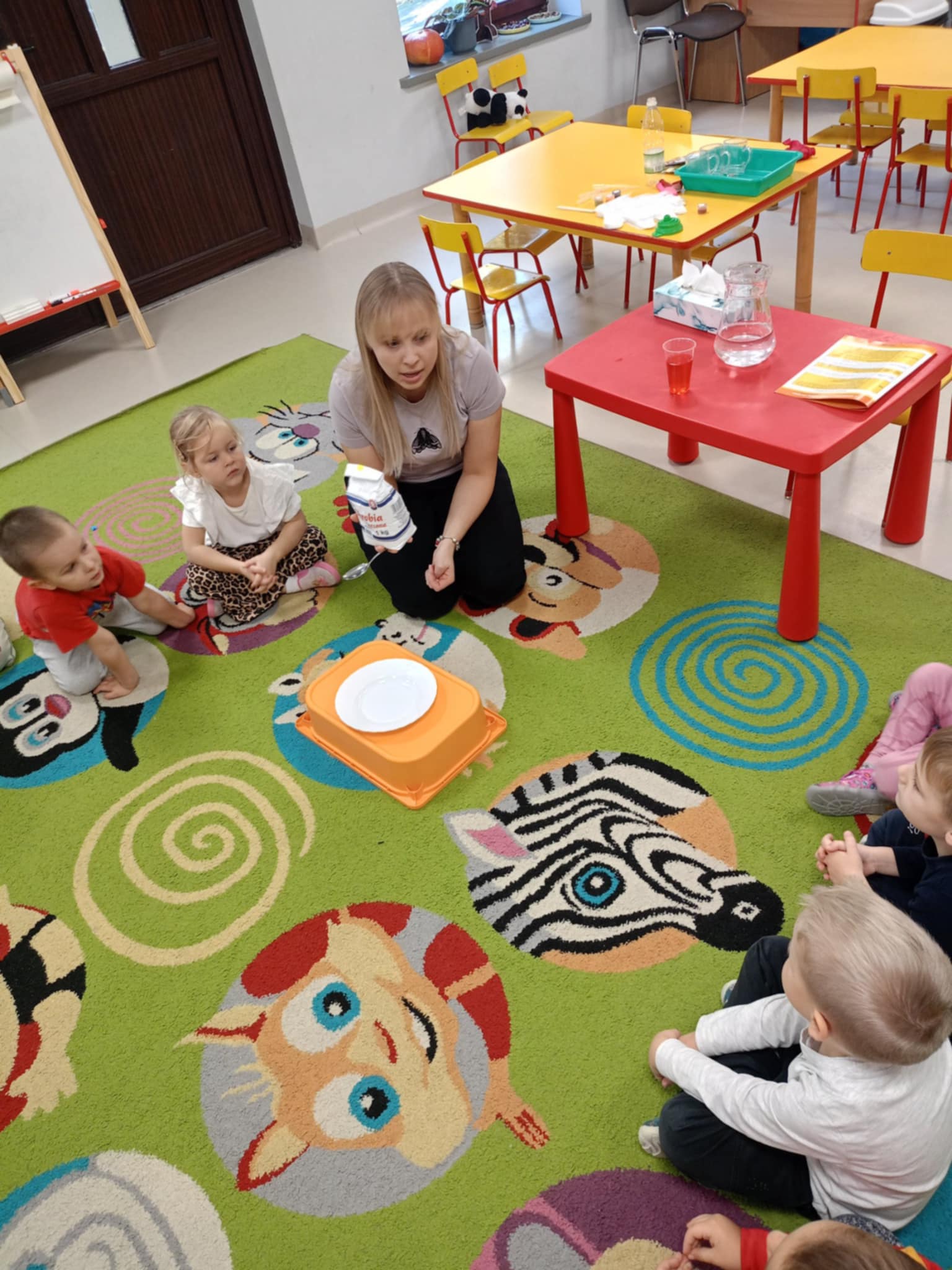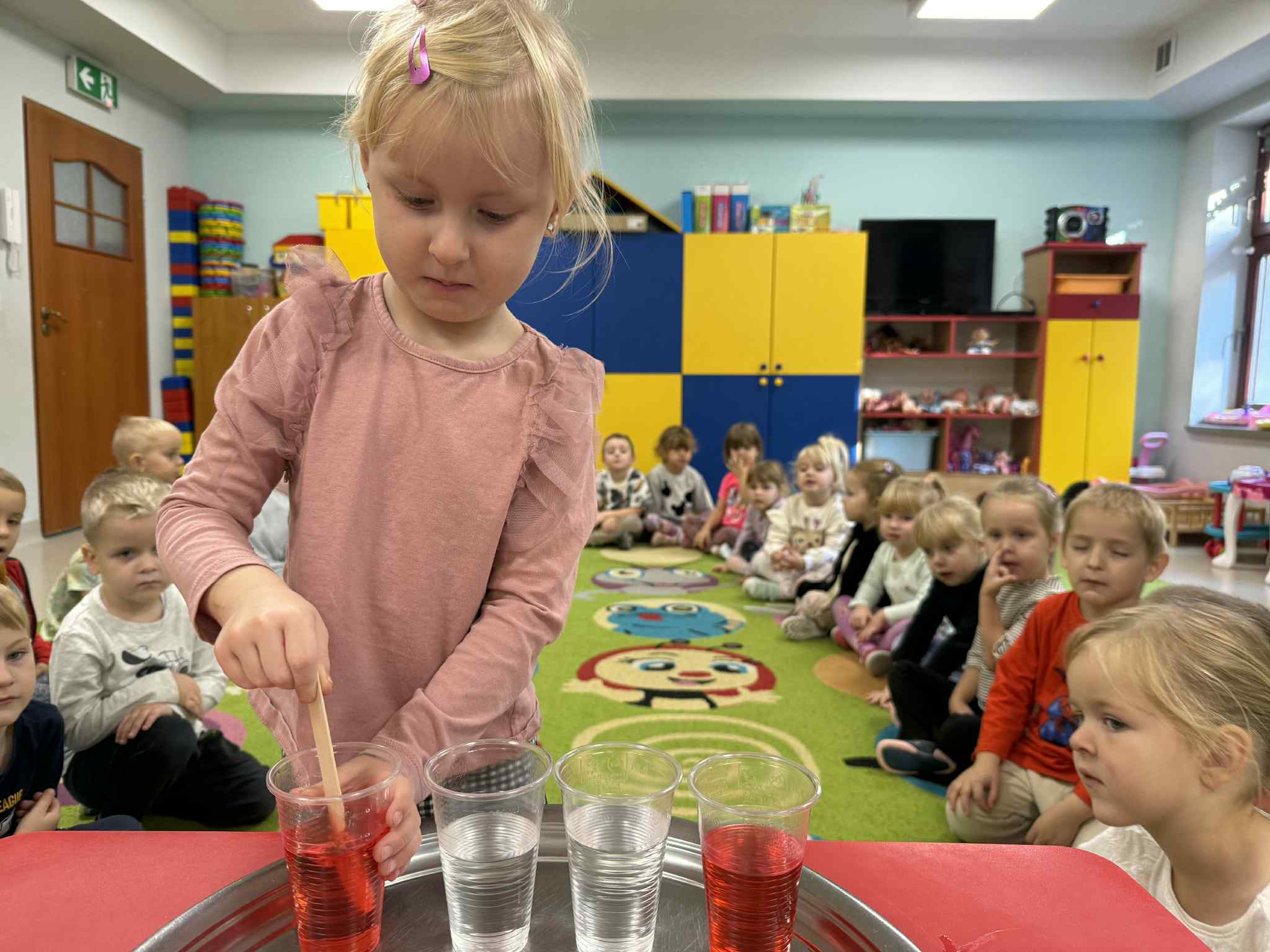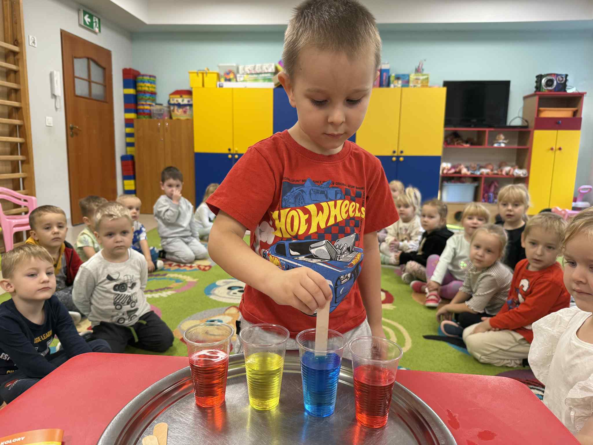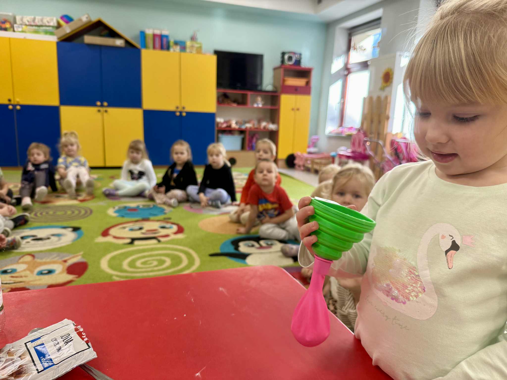 We wtorek „Wiewiórki” wzięły udział w zajęciach w ramach akcji „ Iron Man i super ekipa. Laboratorium odkrywców”. Na początku nauczyciel przedstawił dzieciom ideę akcji oraz postacie z drużyny Iron Mana. Dzieci dowiedziały się, że tego dnia same wcielą się w rolę odkrywców i przeprowadzą prawdziwe eksperymenty naukowe. Omówiono również zasady bezpieczeństwa obowiązujące podczas doświadczeń. Następnie, korzystając z materiałów z Pakietu powitalnego (kubeczki, barwniki, balony, soda oczyszczona, kwasek cytrynowy), dzieci wykonały doświadczenie „Magiczny balon”. Obserwowały, jak podczas reakcji kwasku cytrynowego z sodą powstaje gaz, który nadmuchuje balon. Wykonały także eksperyment „Wędrujące kolory” oraz obserwowały powstanie cieczy twardej jak skała. Eksperymenty wzbudziły duże zainteresowanie- dzieci z entuzjazmem obserwowały efekty i dzieliły się swoimi spostrzeżeniami. Dzięki tym doświadczeniom nie tylko nauczyły się czegoś nowego, ale również przekonały się, że warto zadawać pytania, szukać odpowiedzi i cieszyć się samym odkrywaniem. Każde dziecko otrzymało dyplom z kolorowanką, naklejki oraz list dla rodziców, zachęcający do kontynuowania idei eksperymentowania w domu.
