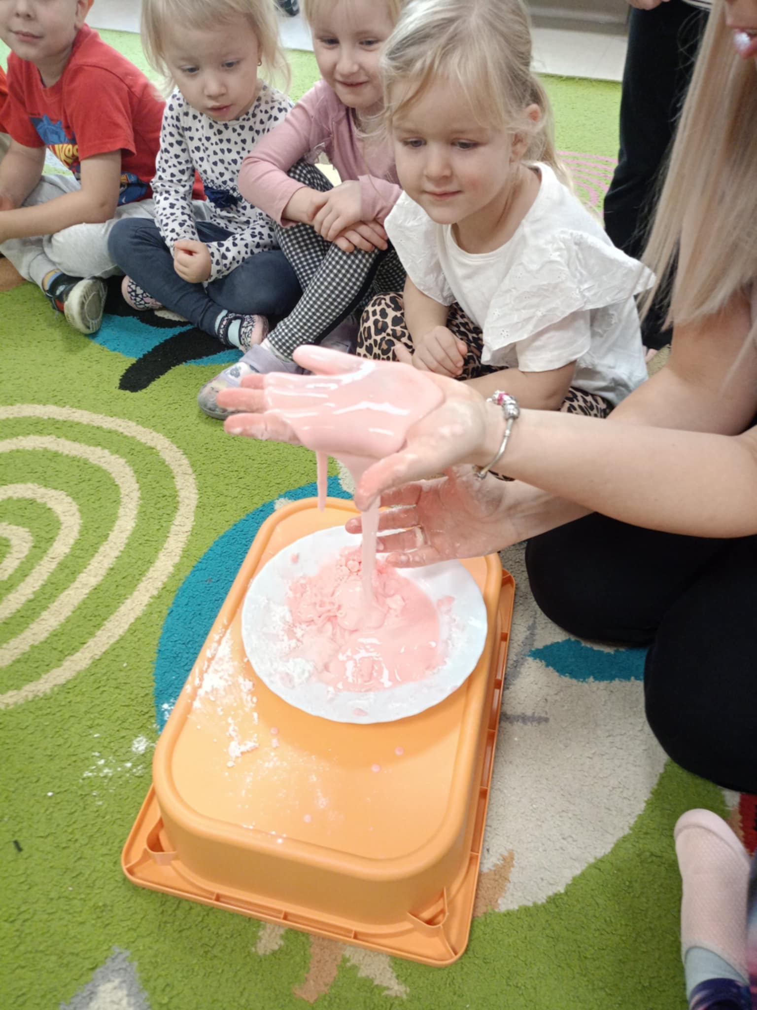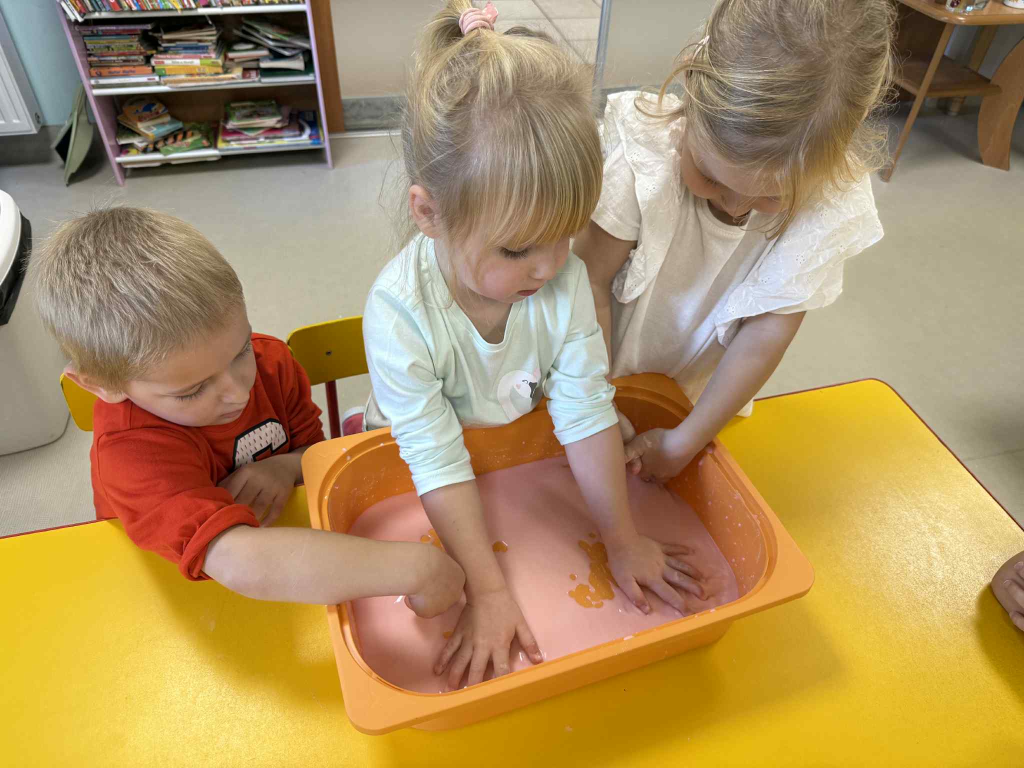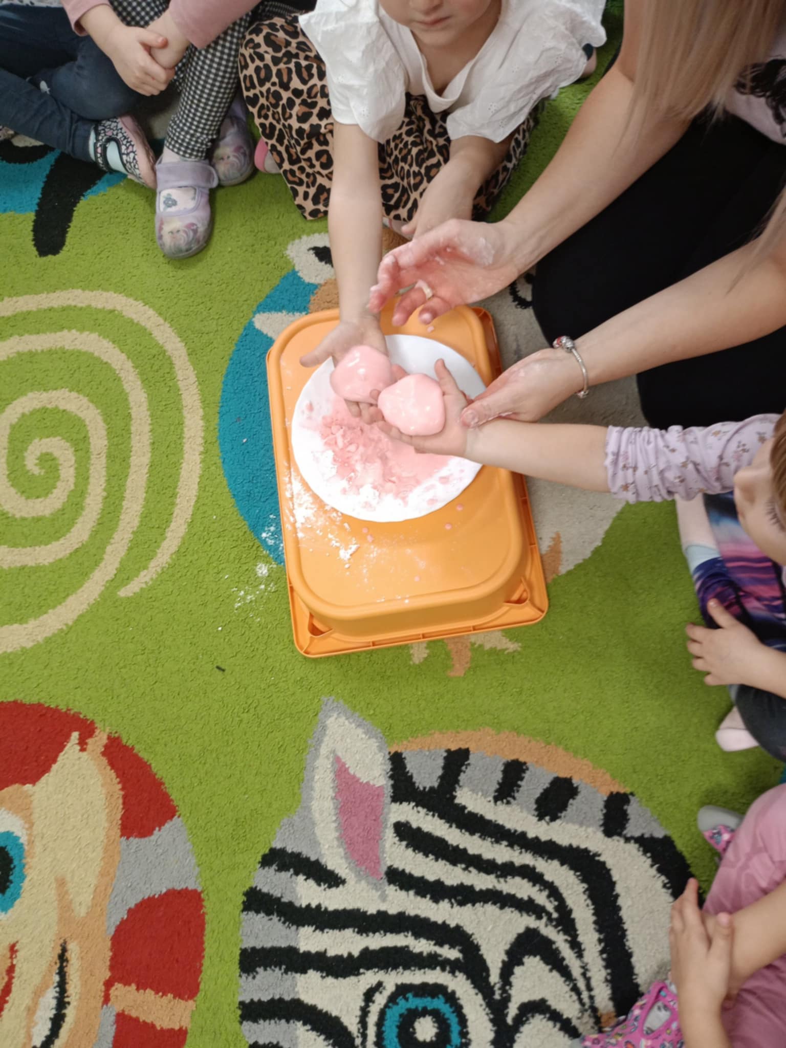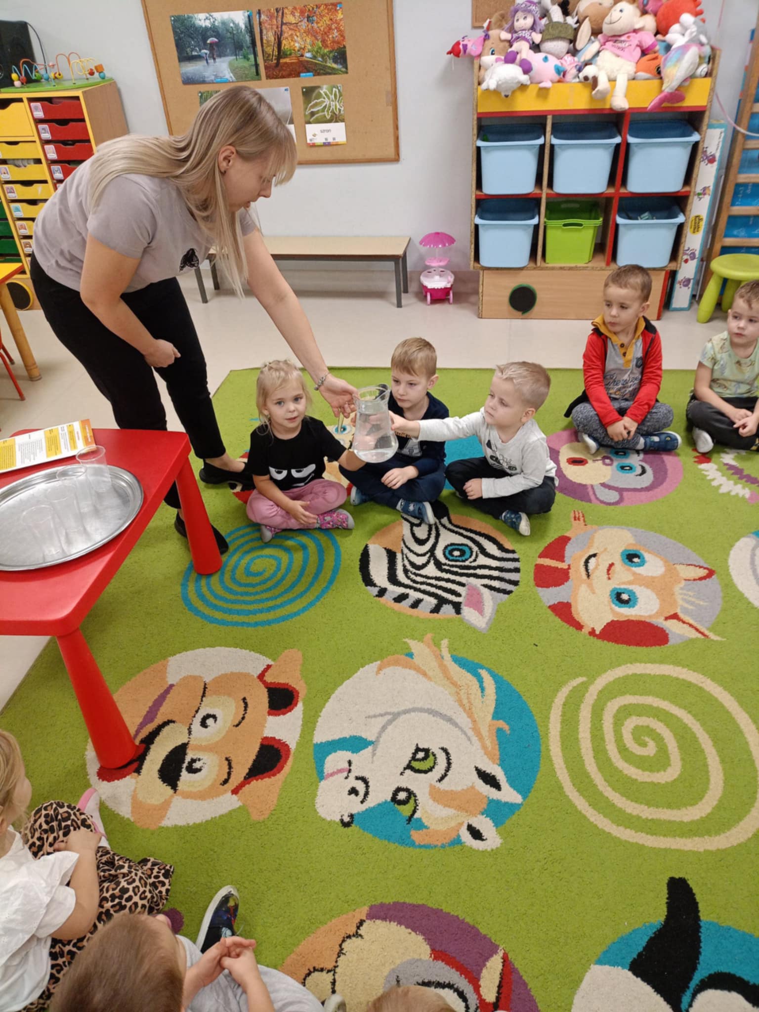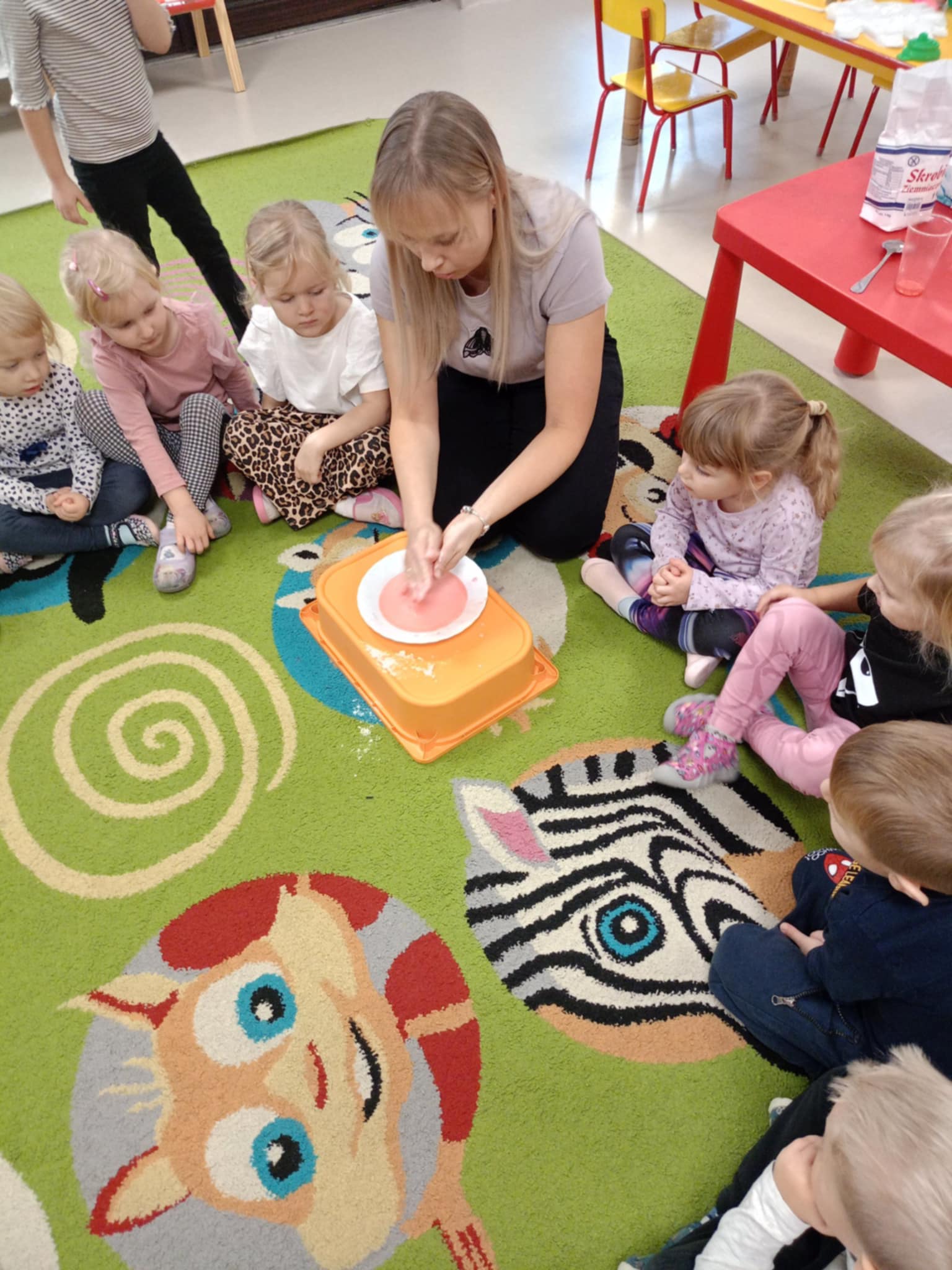 We wtorek „Wiewiórki” wzięły udział w zajęciach w ramach akcji „ Iron Man i super ekipa. Laboratorium odkrywców”. Na początku nauczyciel przedstawił dzieciom ideę akcji oraz postacie z drużyny Iron Mana. Dzieci dowiedziały się, że tego dnia same wcielą się w rolę odkrywców i przeprowadzą prawdziwe eksperymenty naukowe. Omówiono również zasady bezpieczeństwa obowiązujące podczas doświadczeń. Następnie, korzystając z materiałów z Pakietu powitalnego (kubeczki, barwniki, balony, soda oczyszczona, kwasek cytrynowy), dzieci wykonały doświadczenie „Magiczny balon”. Obserwowały, jak podczas reakcji kwasku cytrynowego z sodą powstaje gaz, który nadmuchuje balon. Wykonały także eksperyment „Wędrujące kolory” oraz obserwowały powstanie cieczy twardej jak skała. Eksperymenty wzbudziły duże zainteresowanie- dzieci z entuzjazmem obserwowały efekty i dzieliły się swoimi spostrzeżeniami. Dzięki tym doświadczeniom nie tylko nauczyły się czegoś nowego, ale również przekonały się, że warto zadawać pytania, szukać odpowiedzi i cieszyć się samym odkrywaniem. Każde dziecko otrzymało dyplom z kolorowanką, naklejki oraz list dla rodziców, zachęcający do kontynuowania idei eksperymentowania w domu.