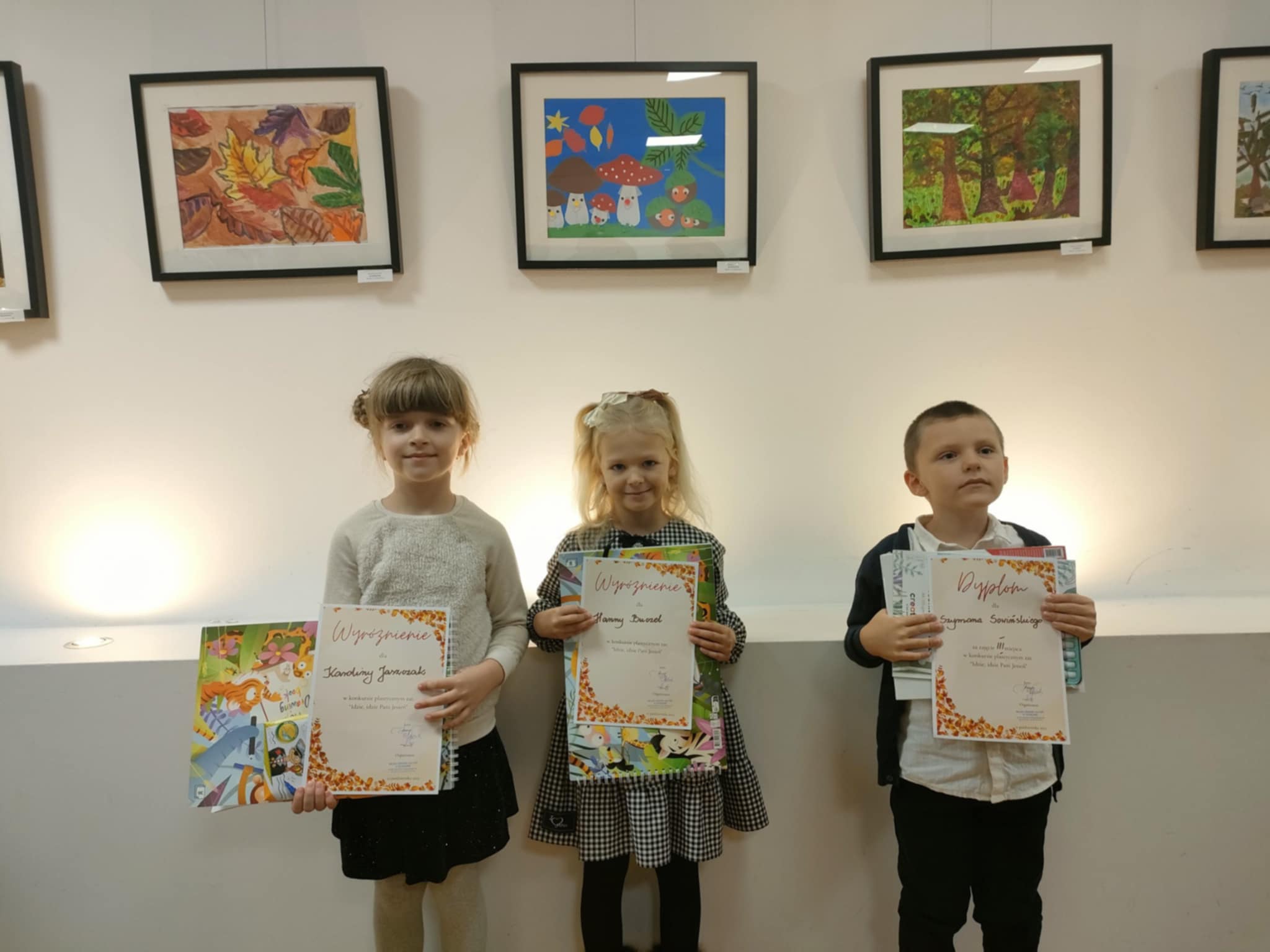 Tematem konkursu była jesień widziana oczami dziecka - jej barwy, zjawiska atmosferyczne, przyroda, tradycje i symbole związane z tą porą roku. Prace miały przedstawiać jesień lub jej personifikację w sposób twórczy i oryginalny. Głównym celem było m.in.: rozwijanie i promowanie twórczości dzieci, a także utrwalanie obserwacji zjawisk przyrodniczych, charakterystycznych dla jesieni. Wśród odpuszczalnych technik znalazło się: malarstwo, rysunek, kolaż lub techniki mieszane. Format pracy to A3 i należało ją dostarczyć w formie papierowej do 10.10.2025r. do Miejskiego Ośrodka Kultury w Ozorkowie. Z naszego przedszkola udział wzięło kilkoro chętnych dzieci z grupy "Pszczółek". Ogromnie miło nam ogłosić, iż w dniu 21.10.2025r.(wtorek) w MOK-u w Ozorkowie odbyło się rozstrzygnięcie, ogłoszenie wyników oraz otwarcie wystawy pokonkursowej, a wśród laureatów znaleźli się: