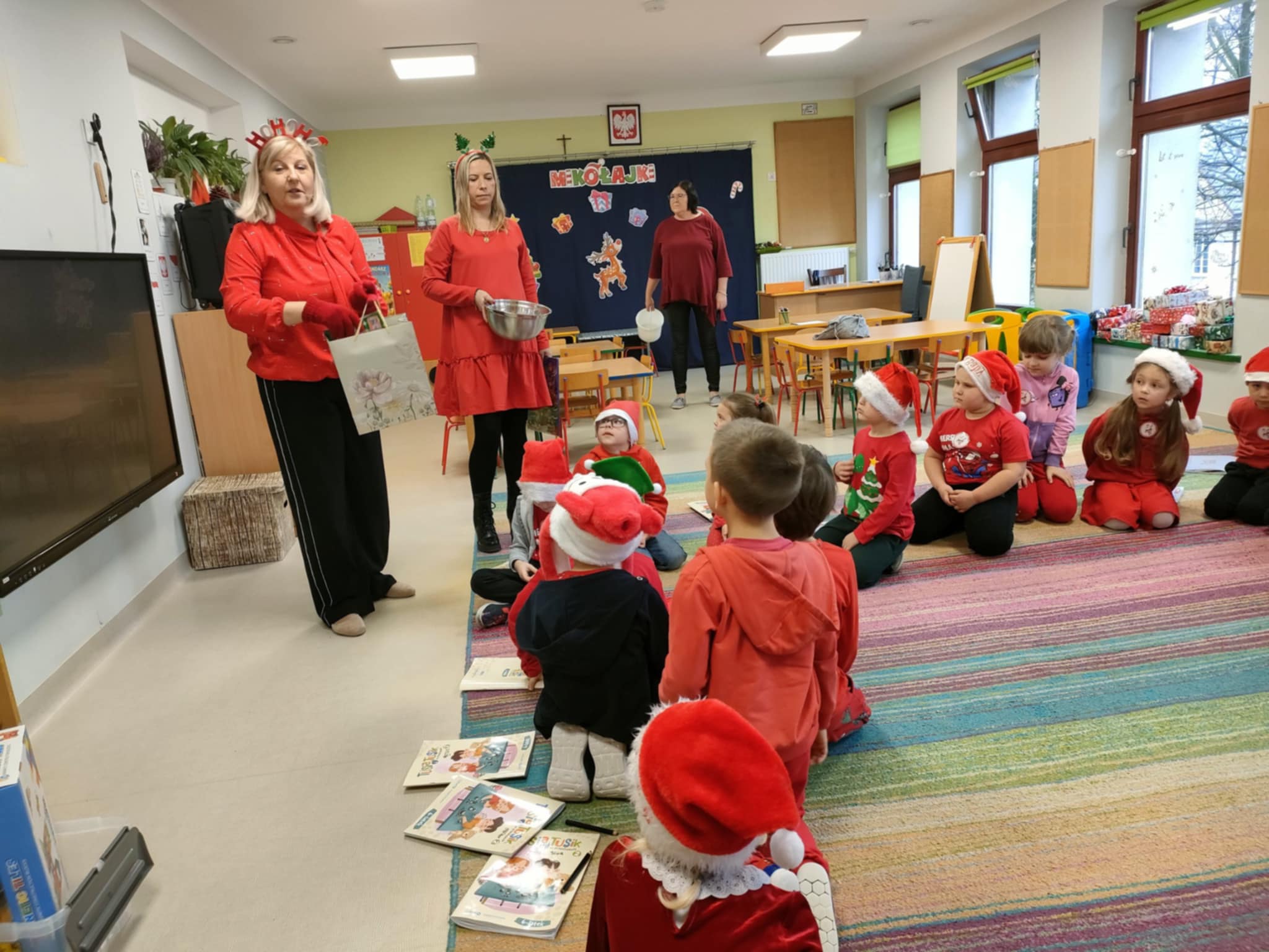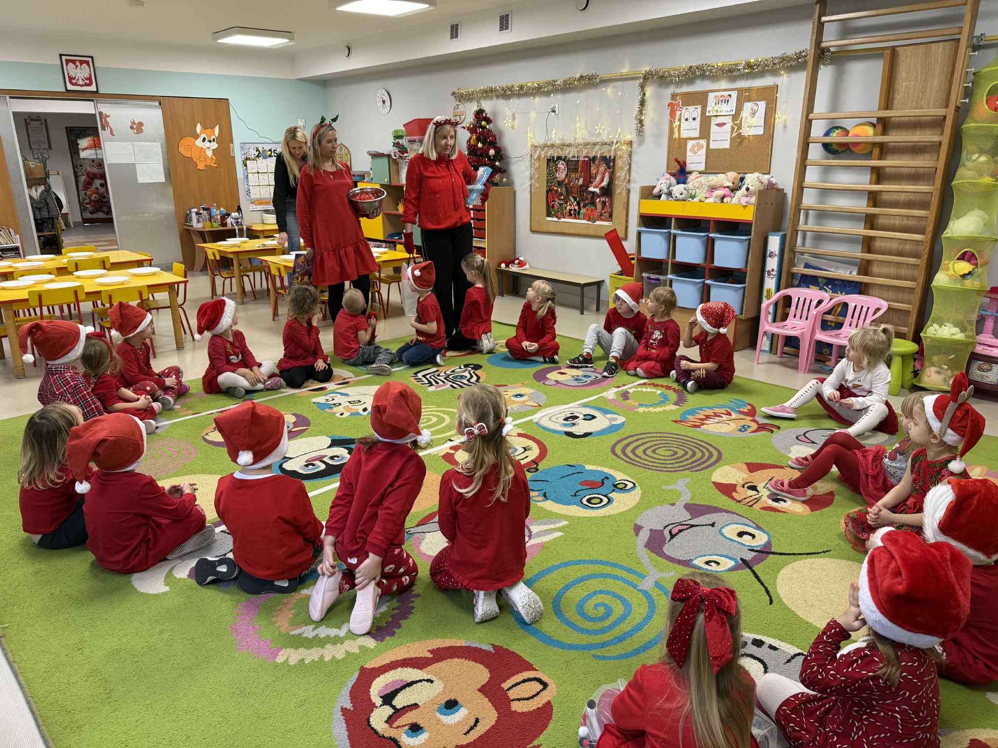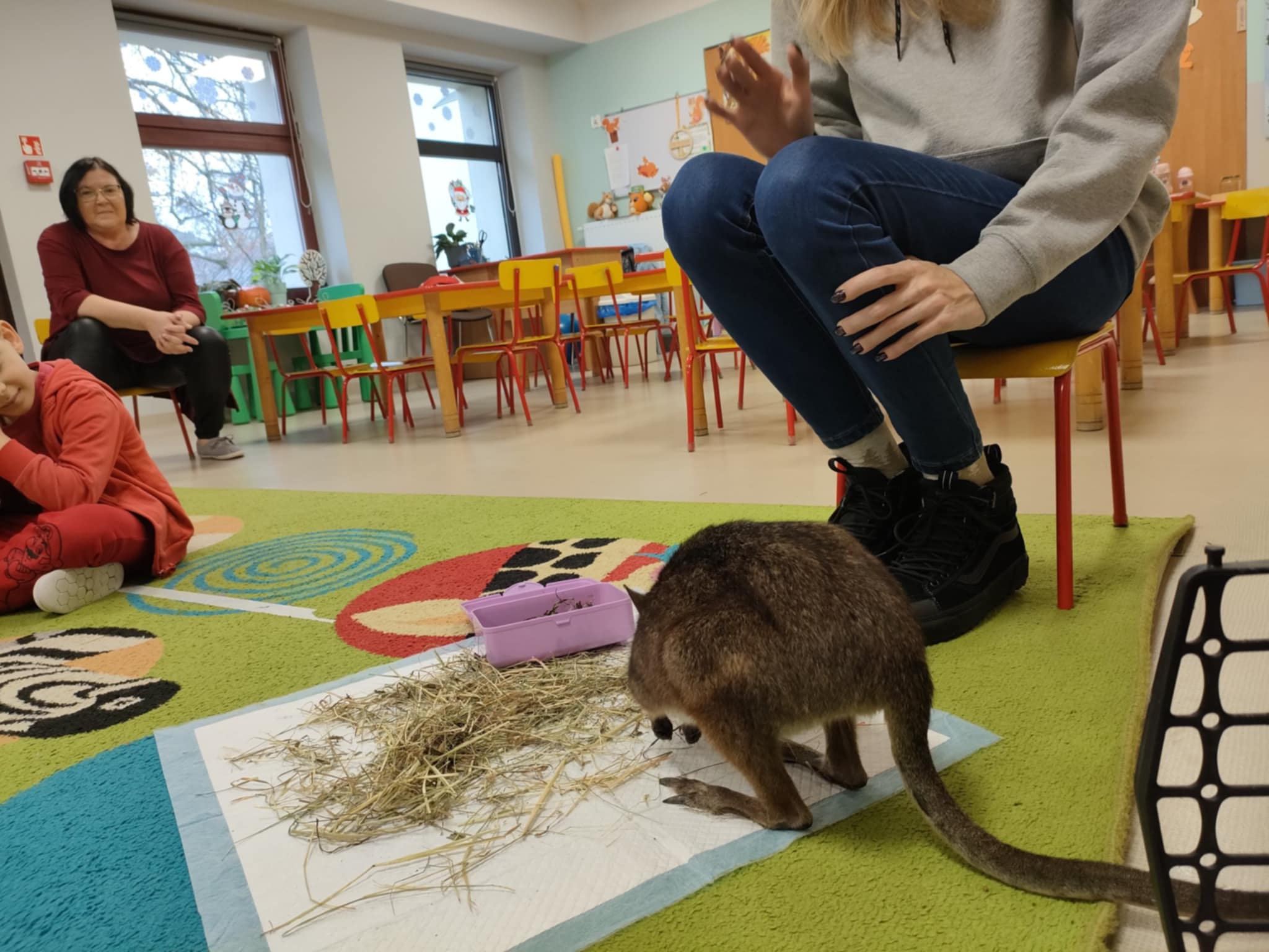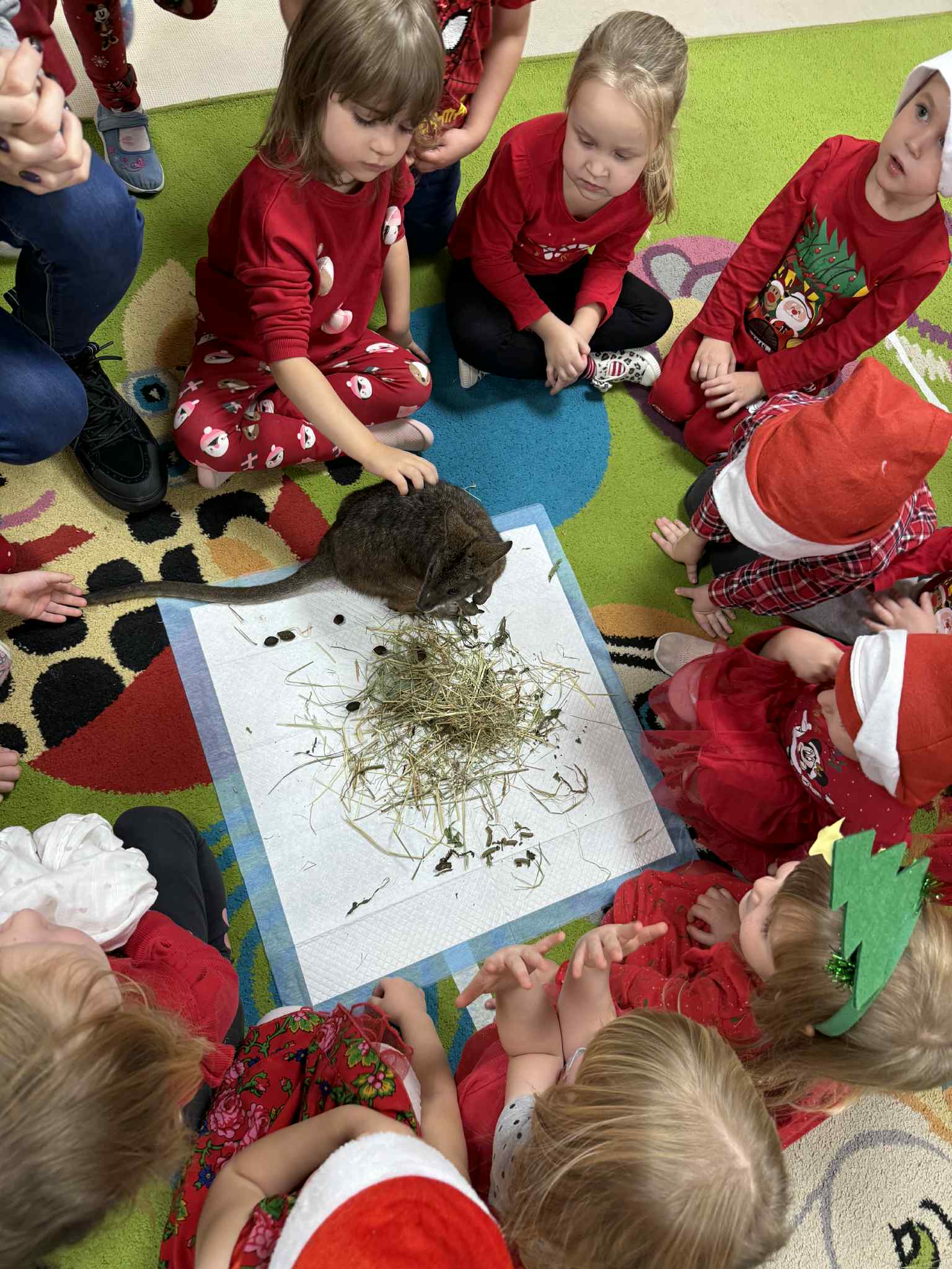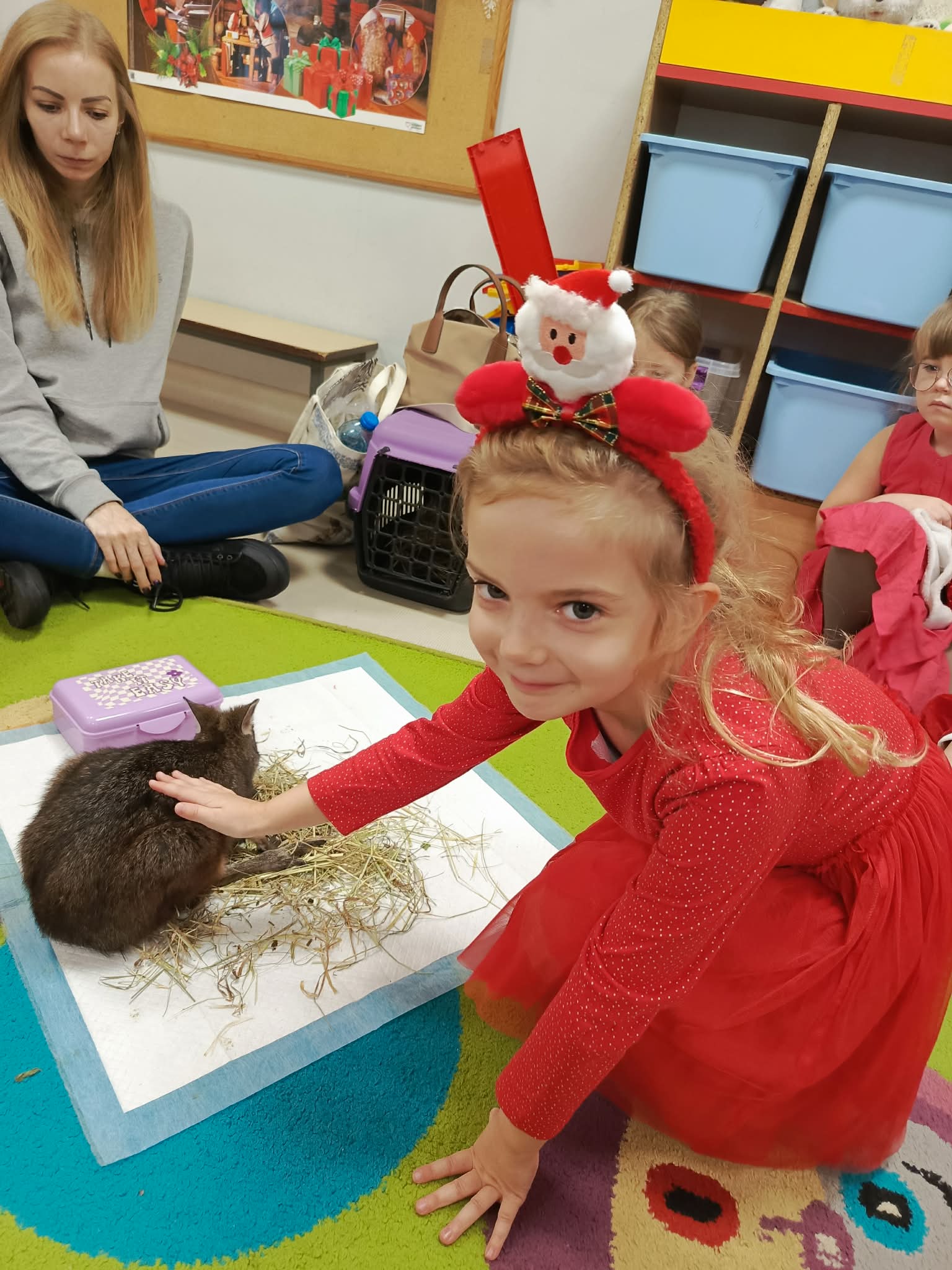 Dziś nasze przedszkole zamieniło się w prawdziwą, mikołajkową krainę. Przedszkolaki ubrane były na czerwono, a sale zostały specjalnie na tę okazję udekorowane. Dla dzieci przygotowano wyjątkowe spotkanie z żywym zwierzątkiem - kangurem o imieniu Łoli, a dokładniej pademelonem tasmańskim. Zajęcia prowadziła p. Ola z firmy "Odlotowe pokazy", która przekazała dzieciom ogromną garść wiedzy na temat kangurów, a po zajęciach umożliwiła dzieciom pogłaskanie go. Dzieci podczas spotkania z żywym zwierzątkiem, uważnie wysłuchały ciekawostek i wykazały się właściwym zachowaniem podczas bezpośredniego kontaktu ze zwierzakiem. Doskonale wiedziały, że w trakcie takich zajęć należy zachować ciszę i wykazać się empatią. Jednak to nie koniec niespodzianek! W międzyczasie, wszystkie grupy odwiedziła p. Dyrektor wraz z p. Intendent, które wręczyły dzieciom świąteczne kolorowanki i kalendarze adwentowe, a każdej grupie podarowały klocki magnetyczne. Dodatkowo przedszkolaki w tym dniu miały zaplanowane ciekawe zabawy mikołajkowe, w których bardzo chętnie brały udział. Ten dzień był pełen niezapomnianych wrażeń i przybliżył nam magię nadchodzących świąt. Dziękujemy Rodzicom za odpowiednie przygotowanie dzieci, a p. Oli dziękujemy za wartościowe spotkanie!
