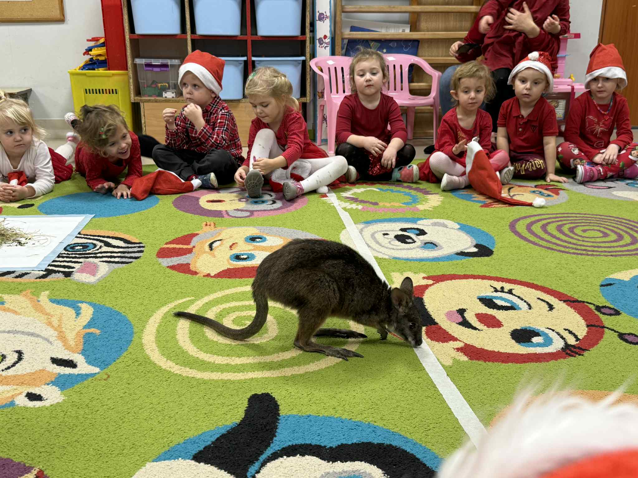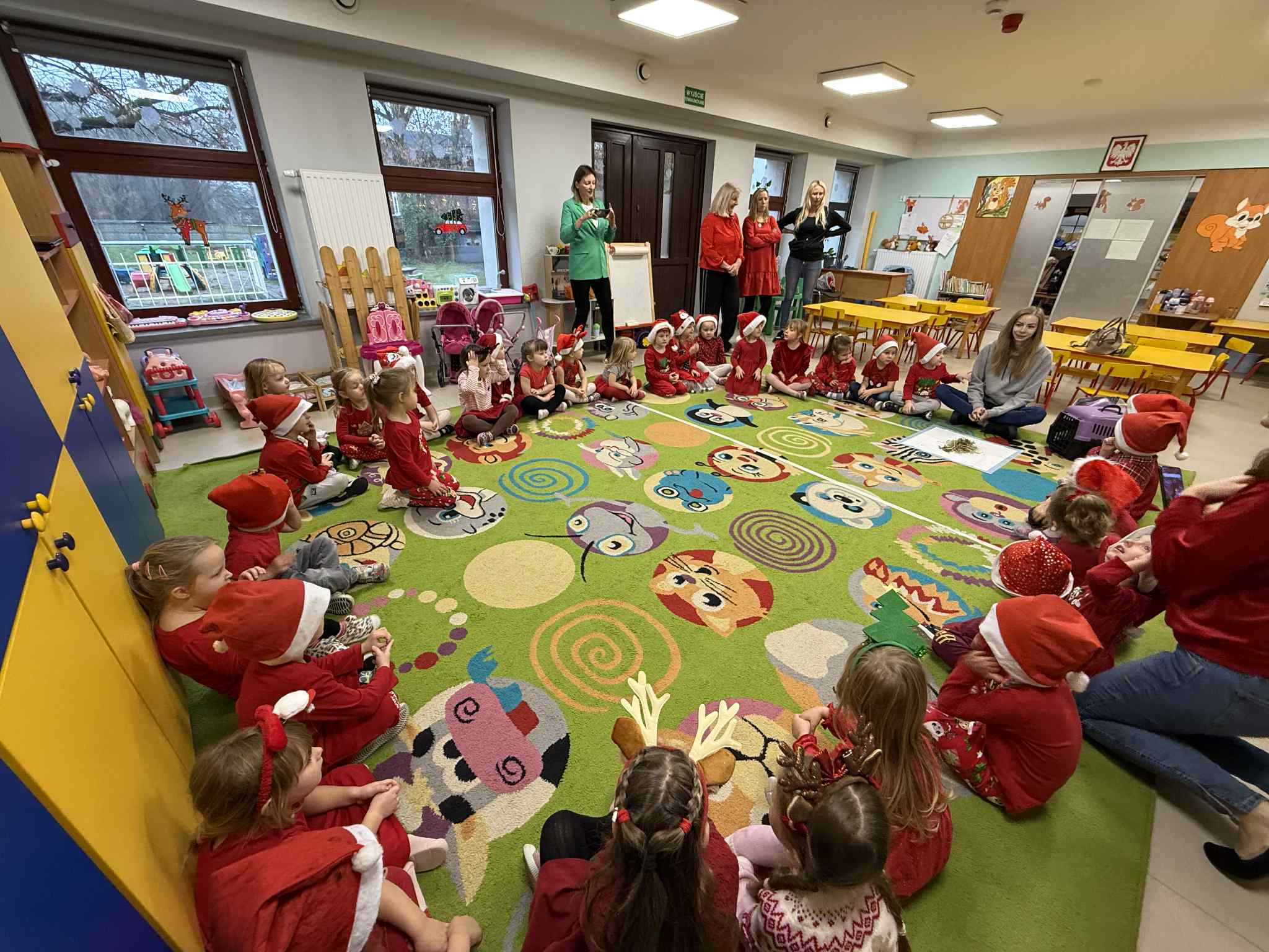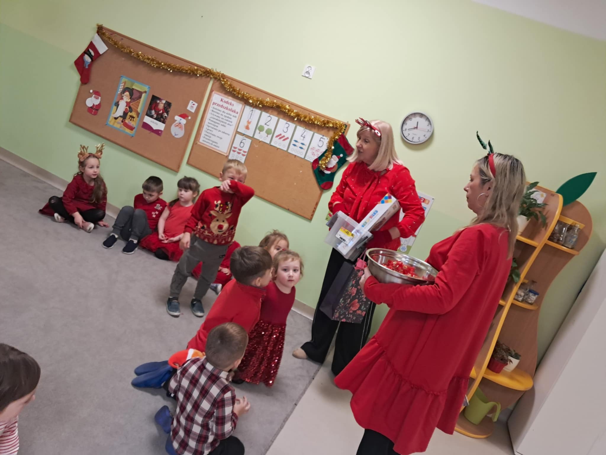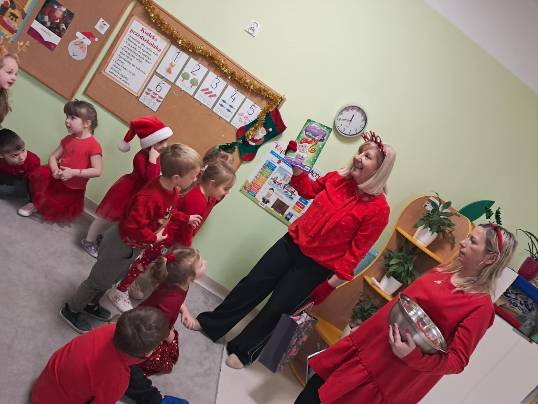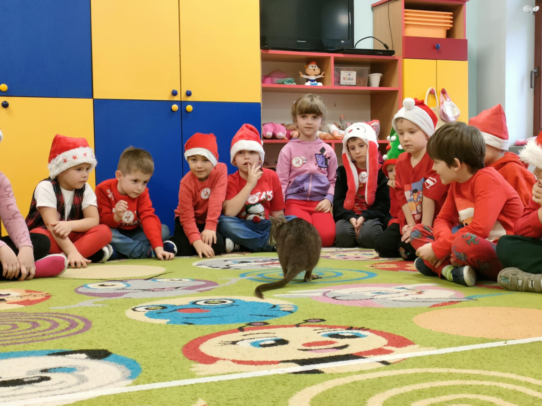 Dziś nasze przedszkole zamieniło się w prawdziwą, mikołajkową krainę. Przedszkolaki ubrane były na czerwono, a sale zostały specjalnie na tę okazję udekorowane. Dla dzieci przygotowano wyjątkowe spotkanie z żywym zwierzątkiem - kangurem o imieniu Łoli, a dokładniej pademelonem tasmańskim. Zajęcia prowadziła p. Ola z firmy "Odlotowe pokazy", która przekazała dzieciom ogromną garść wiedzy na temat kangurów, a po zajęciach umożliwiła dzieciom pogłaskanie go. Dzieci podczas spotkania z żywym zwierzątkiem, uważnie wysłuchały ciekawostek i wykazały się właściwym zachowaniem podczas bezpośredniego kontaktu ze zwierzakiem. Doskonale wiedziały, że w trakcie takich zajęć należy zachować ciszę i wykazać się empatią. Jednak to nie koniec niespodzianek! W międzyczasie, wszystkie grupy odwiedziła p. Dyrektor wraz z p. Intendent, które wręczyły dzieciom świąteczne kolorowanki i kalendarze adwentowe, a każdej grupie podarowały klocki magnetyczne. Dodatkowo przedszkolaki w tym dniu miały zaplanowane ciekawe zabawy mikołajkowe, w których bardzo chętnie brały udział. Ten dzień był pełen niezapomnianych wrażeń i przybliżył nam magię nadchodzących świąt. Dziękujemy Rodzicom za odpowiednie przygotowanie dzieci, a p. Oli dziękujemy za wartościowe spotkanie!