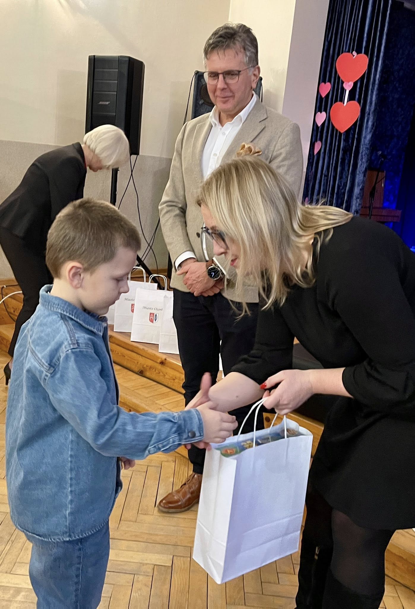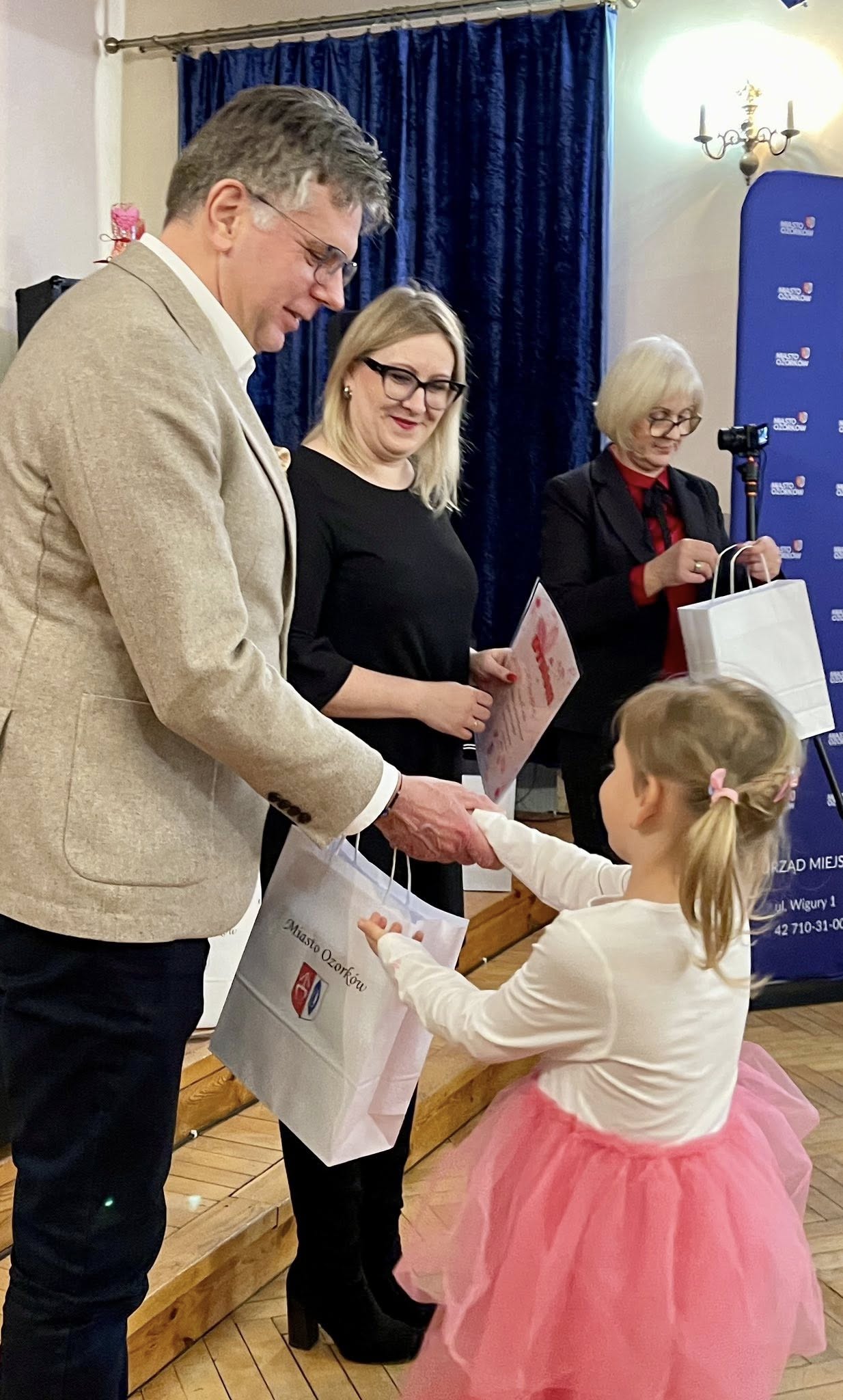 Najważniejszym celem tego konkursu było zachęcenie Mieszkańców Miasta Ozorkowa do zaprezentowania swoich talentów plastycznych, literackich oraz fotograficznych, a także propagowania wartości i ideałów towarzyszących Świętu Zakochanych - szacunku, akceptacji oraz sympatii do drugiej osoby/rodzinnego miasta. Konkurs odbył się w trzech kategoriach: fotograficznym, literackim i plastycznym. Kryteria oceny prac konkursowych to: zgodność z tematyką konkursu, oryginalność i pomysłowość oraz estetyka pracy. Prace należało dostarczyć do naszego przedszkola do dnia 4.02.2026r. lub bezpośrednio do Wydziału Oświaty, Sportu i Spraw Społecznych do 6.02.2026r. Na konkurs wpłynęło 66 prac, w tym aż 10 z naszego przedszkola! Dziś laureaci odebrali dyplomy i nagrody z rąk Burmistrza Miasta Ozorkowa - p. Jacka Sochy i Dyrektor Miejskiej Biblioteki Publicznej w Ozorkowie - p. Aleksandry Kalinowskiej. Na zakończenie, na scenie zaprezentował się zespół AnaJa, w którego repertuarze nie brakuje piosenek o miłości.