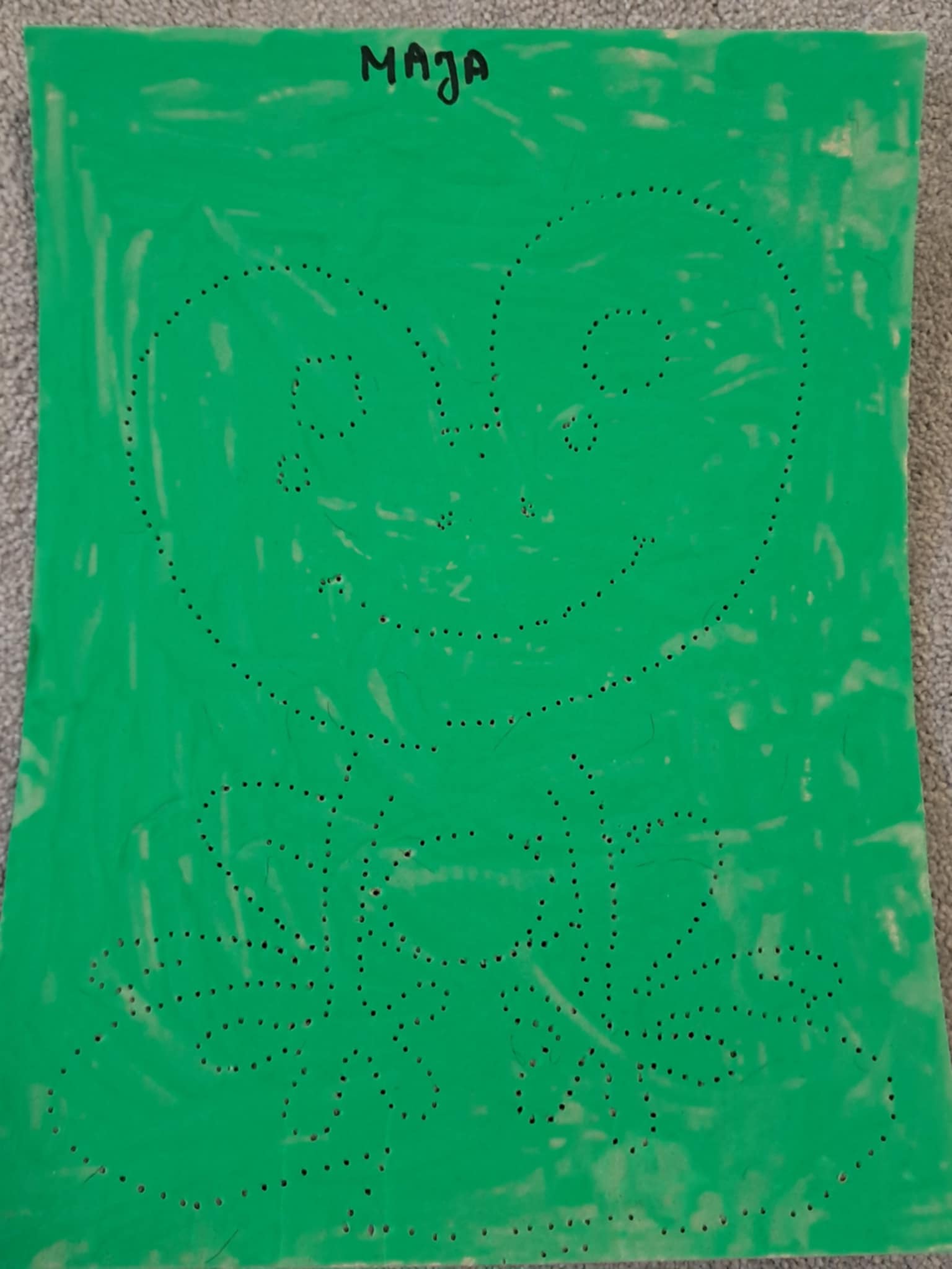 W grupie „Żabki” perforowanie okazało się interesującą i angażującą techniką plastyczną, która umożliwiła dzieciom samodzielne wykonanie oryginalnej pracy.