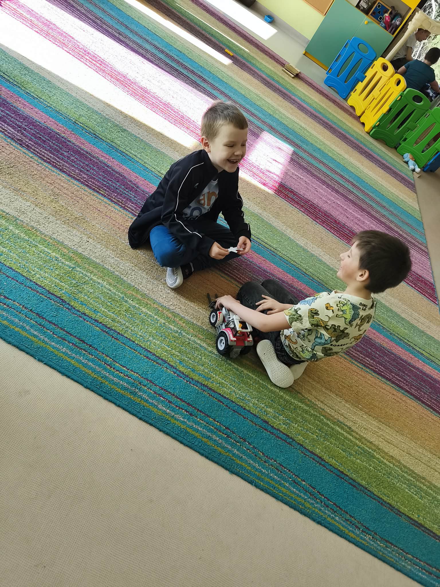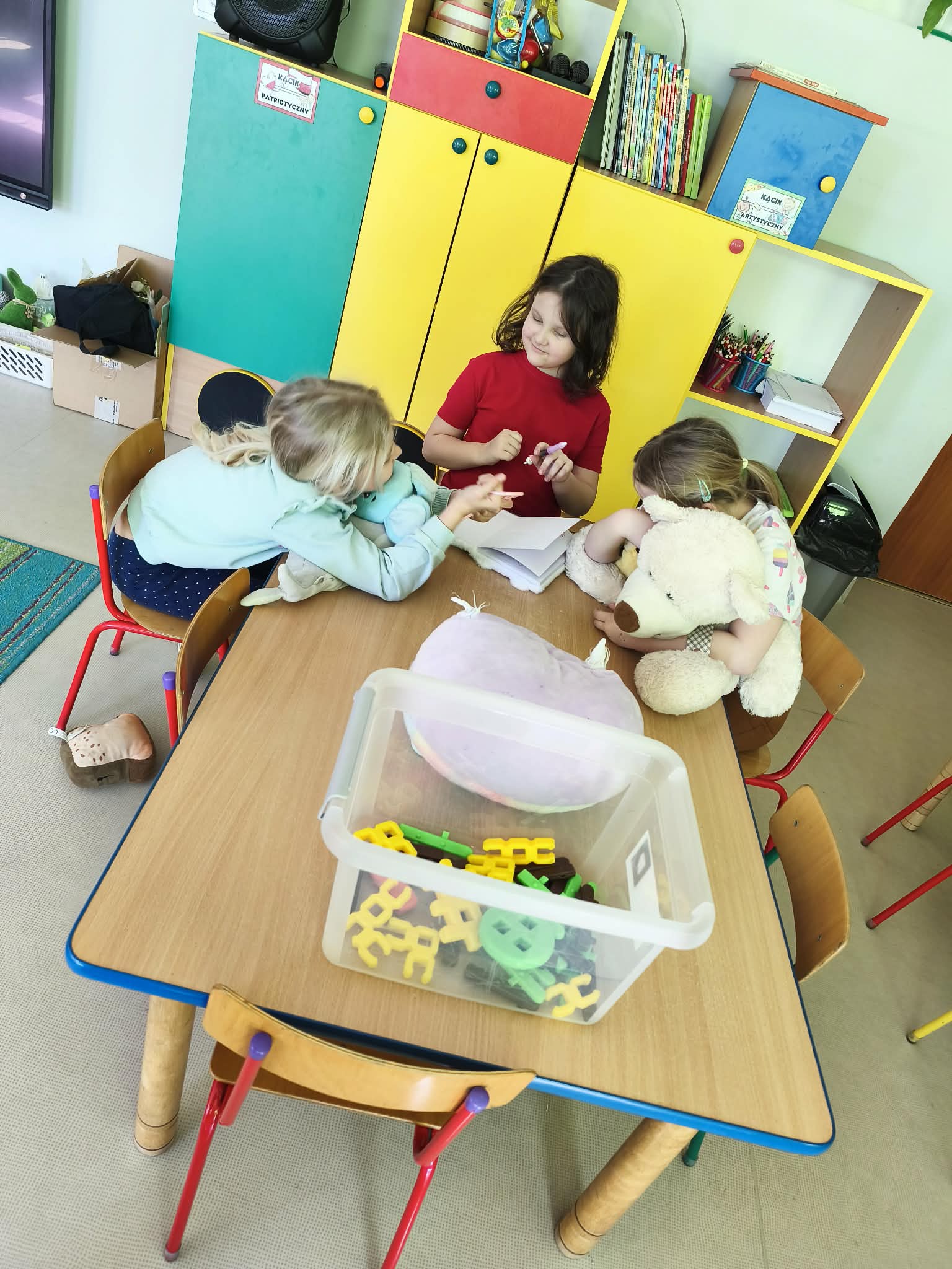 Piątek w naszej grupie jest wyczekiwanym przez przedszkolaki "dniem zabawki". Tego dnia dzieci mogą przynieść wybraną przez siebie zabawkę w domu i w ten sposób uczą się pilnowania swoich rzeczy, kształtują umiejętność dzielenia się, a także spędzają czas na zabawie ulubionym przedmiotem. Do wyboru mają również ogólnodostępne klocki, misie, układanki, puzzle, gry, książki, kartki, kredki itp. Każda "Pszczółka" podejmuje się tej aktywności, którą lubi najbardziej i w ten sposób nawiązują się pierwsze relacje, przyjaźnie, a dzieci uczą się ustalania zasad i podejmują się pierwszych prób negocjacji. To naprawdę wartościowy czas, podczas którego wspieramy rozwój społeczno-emocjonalny bez kierowania aktywnością dziecka i dając mu pełną możliwość wyboru zabawy, która angażuje go i sprawia mu radość.