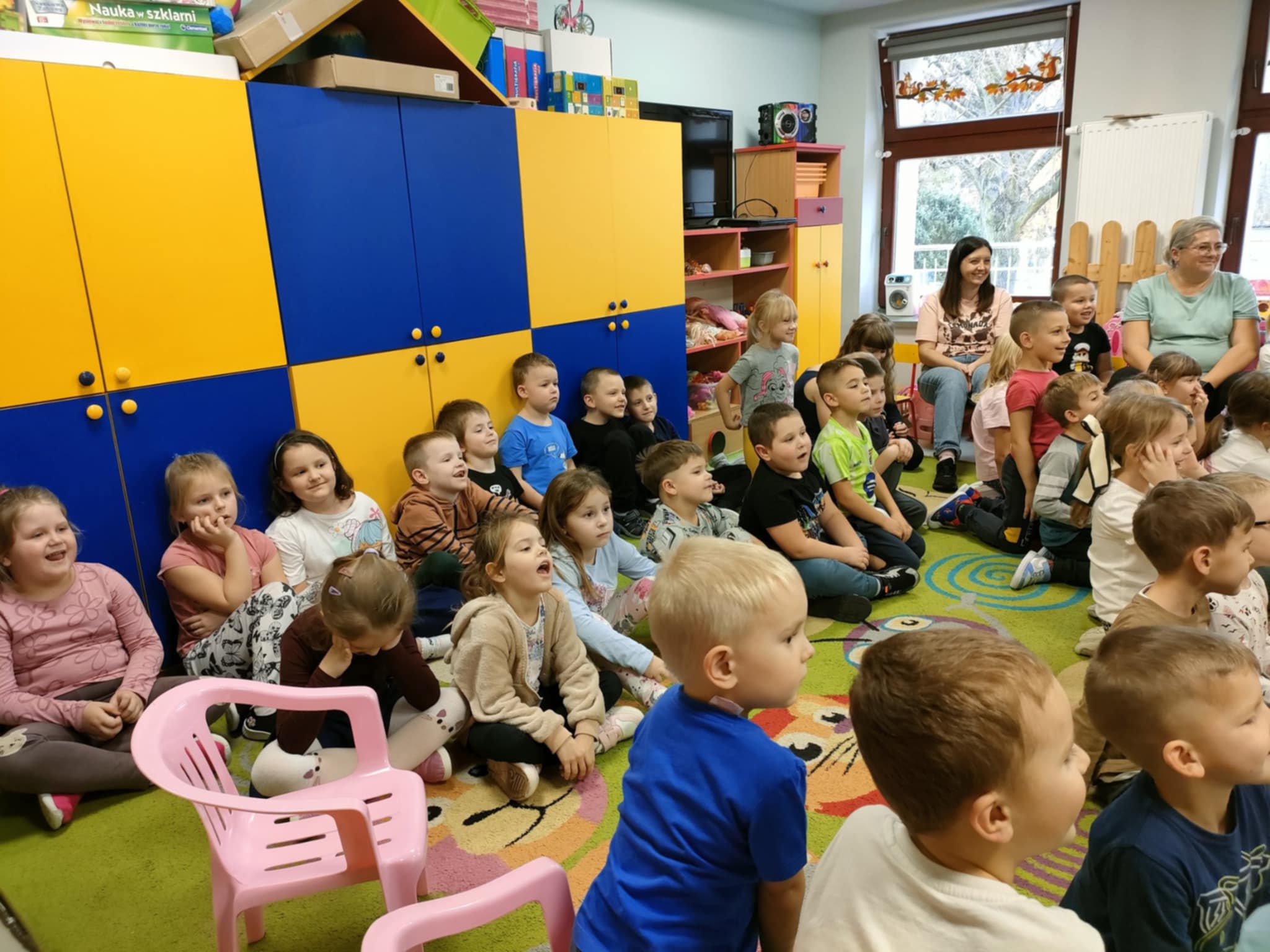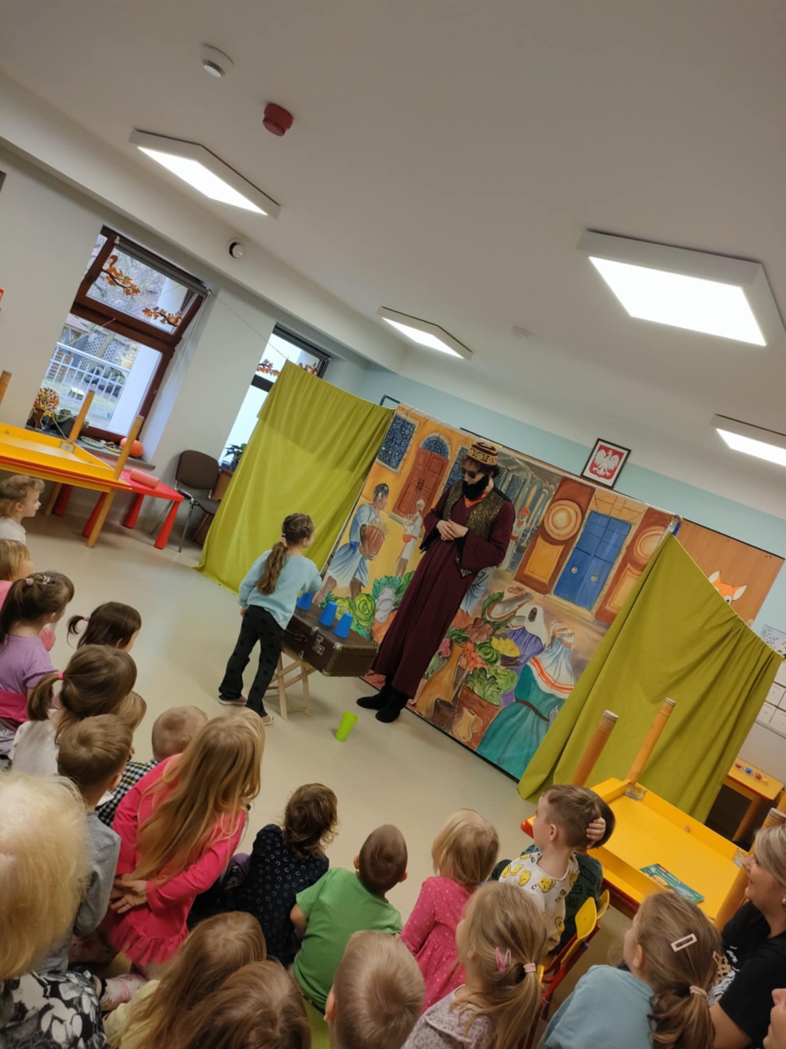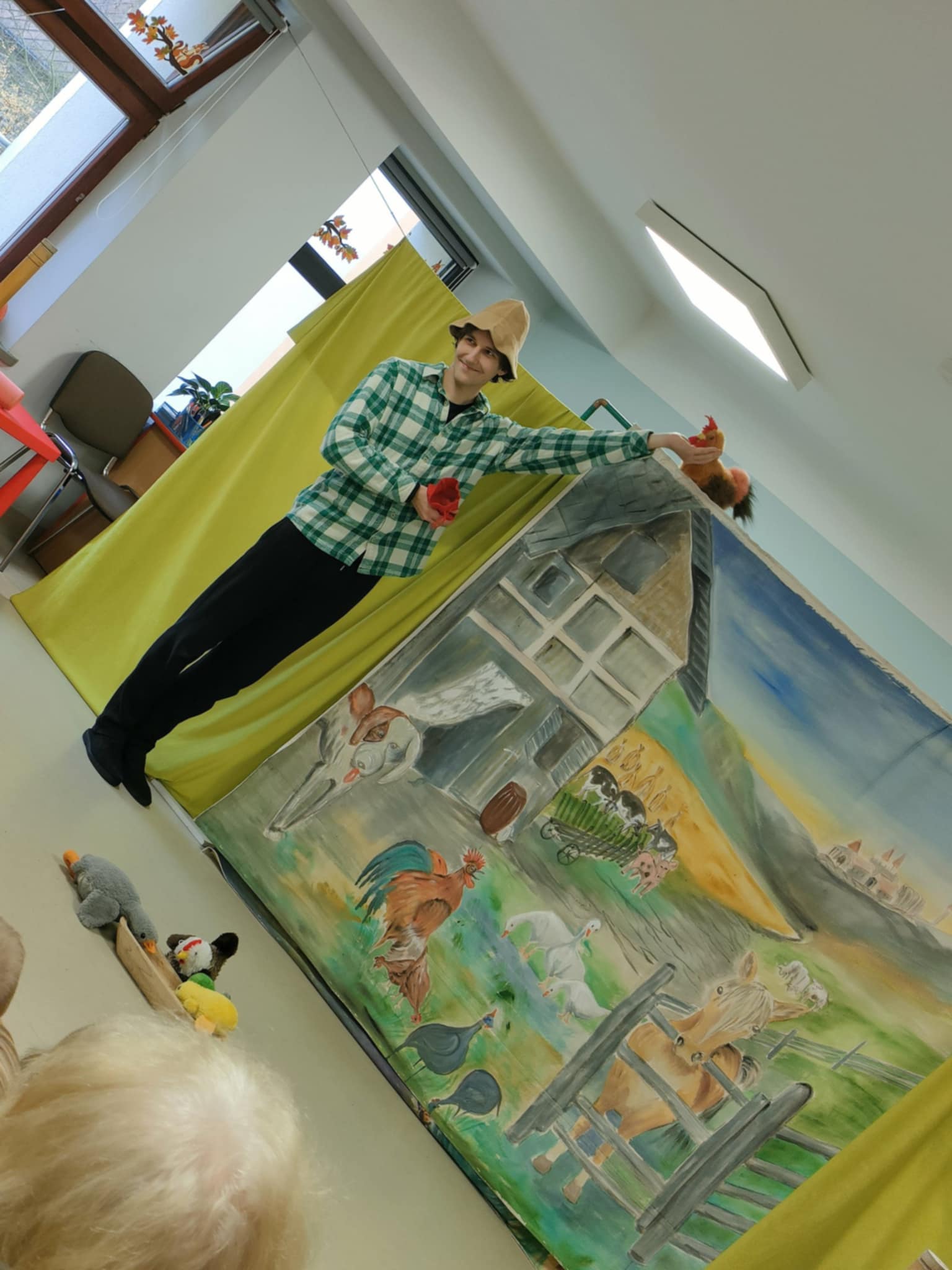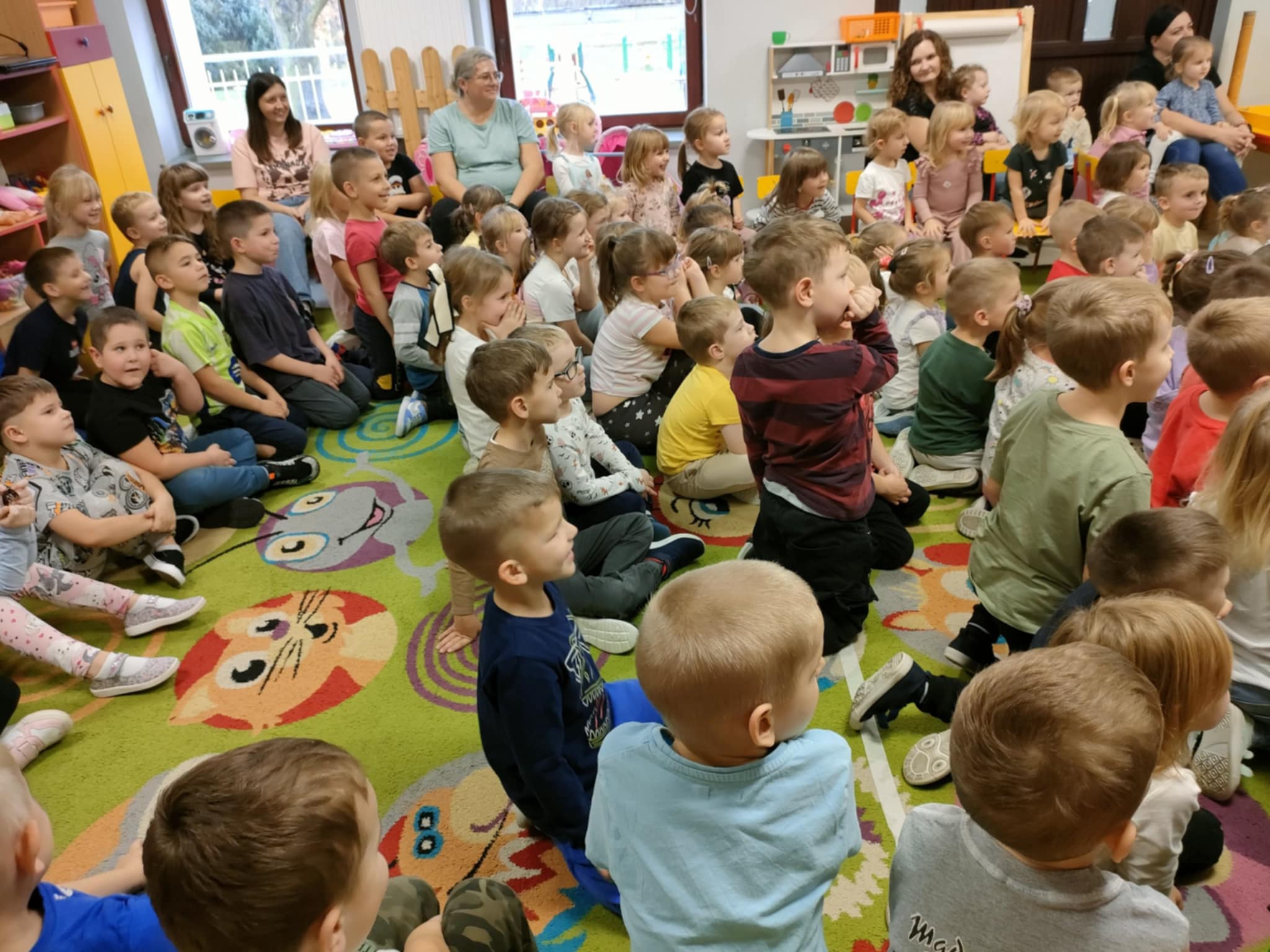 To była pełna emocji opowieść o Tomaszu, który pewnego dnia postanowił porzucić swoje, dotychczasowe życie i wyruszyć w pełną przygód, ale i niebezpieczną podróż do miasta, by odkryć prawdziwy skarb, a tym prawdziwym skarbem, jak się na koniec okazało było to, co nasz bohater Tomasz miał na farmie, czyli jego rodzina. Jednak główny bohater musiał opuścić rodzinny dom, by dowiedzieć się, co jest w życiu najważniejsze. To przedstawienie nauczyło nas posłuszeństwa wobec rodziców, i w atrakcyjny sposób wyjasniło, że nie szata zdobi człowieka, a dzieci zrozumiały, kim jest prawdziwy przyjaciel. Historia ta z pewnością na długo pozostanie w naszej pamięci. Przed dziećmi występowali: ojciec, synowie Tomasz i Szymon, kupiec, farmer Robert, a przepięknym dodatkiem była sceneria ze zwierzętami z gospodarstwa. Nie zabrakło aktywnego udziału przedszkolaków, wspólnych zabaw ruchowych oraz dużej ilości śmiechu, co przyczyniło się do tego, że z zapartym tchem oglądaliśmy to niezwykłe widowisko.