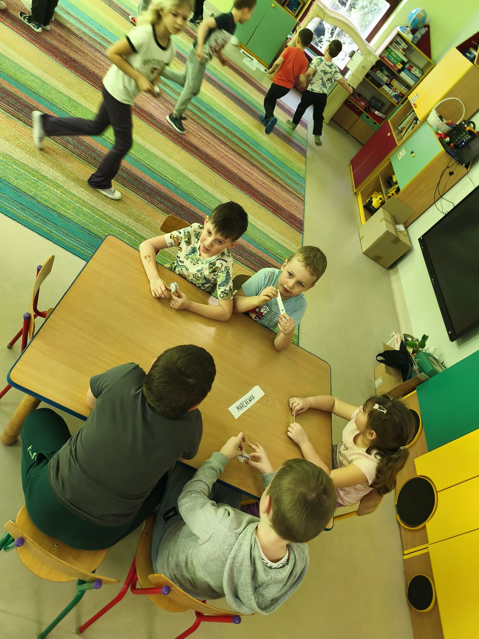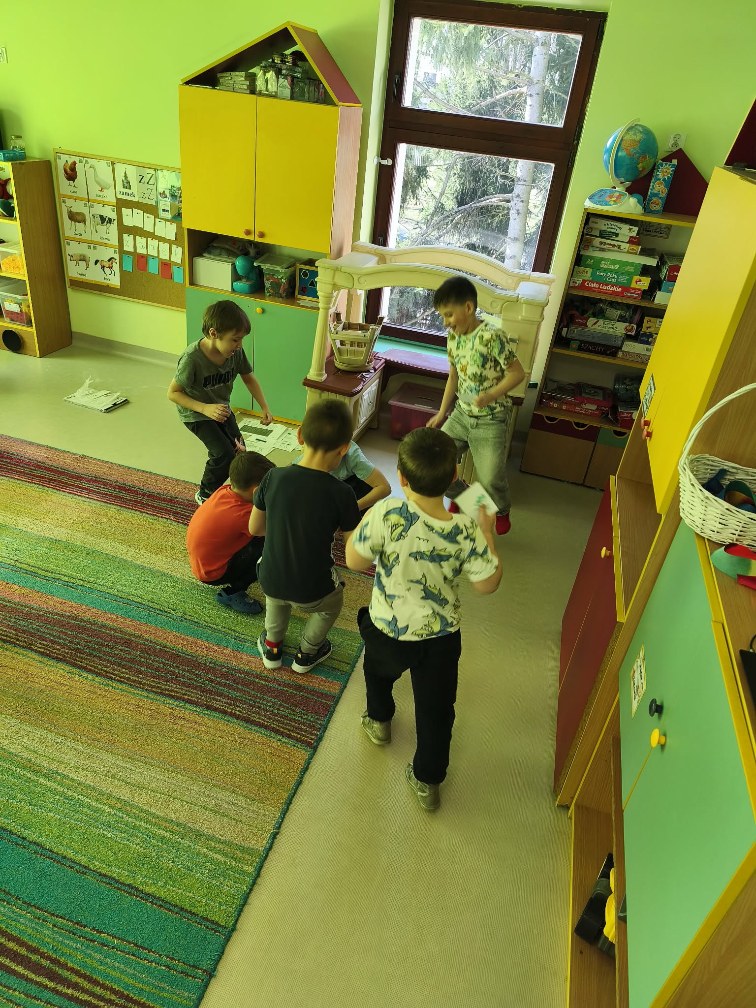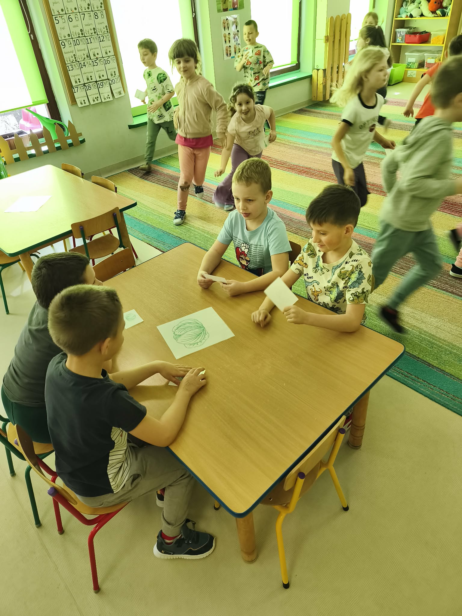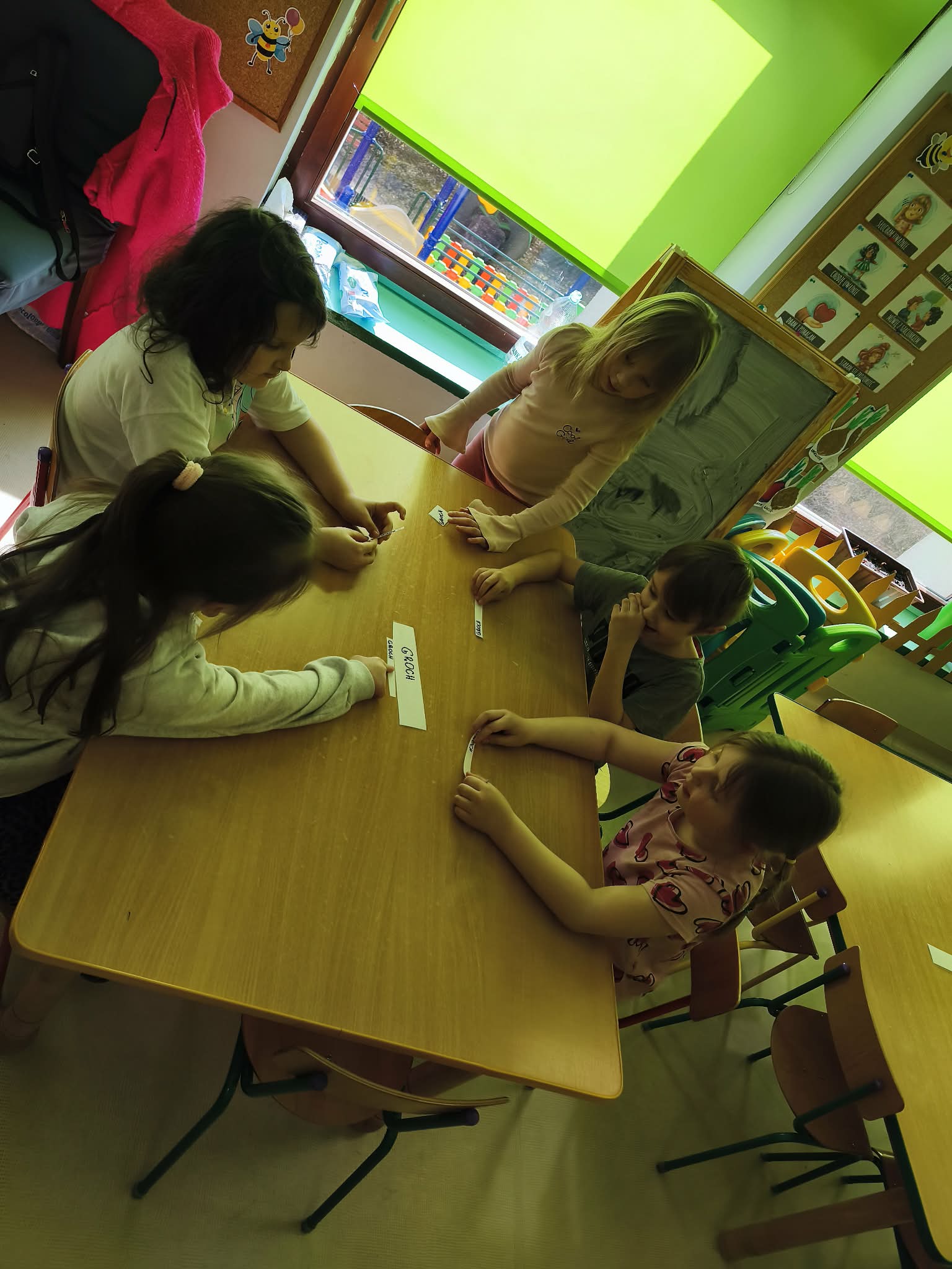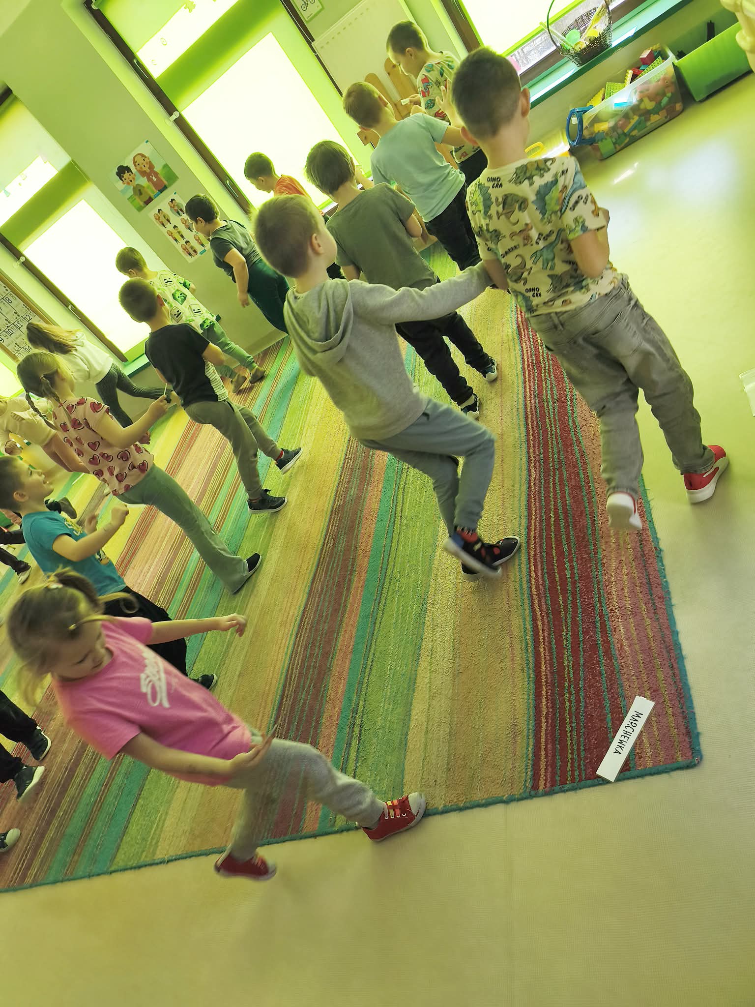 Dziś uczestniczyliśmy w pierwszych zajęciach pt. "Produkcja żywności", na początku których odpowiadaliśmy na pytanie, skąd się bierze jedzenie. Dzieci miały okazję pochwalić się swoją wiedzą w tym zakresie, a tym samym kształciły umiejętność budowania zdań. W następnym etapie nazywaliśmy źródła jedzenia w oparciu o ilustracje, a dzieci starsze dobierały właściwe podpisy. Chwilkę później losowaliśmy małe obrazki różnych produktów i przyporządkowaliśmy je do w/w źródeł, po czym chętne dzieci starsze dopasowały właściwe podpisy. Nie mogło zabraknąć zabawy ruchowej, podczas której sadziliśmy wskazane przez nauczycielkę warzywo/owoc na odpowiedniej grządce, korzystając najpierw z ilustracji, a następnie z napisów. Przy okazji, wspólnymi siłami przypomnielismy sobie, jak powstaje chleb, poprzez ułożenie historyjki obrazkowej we właściwej kolejności i wskazanie pasujących podpisów. Na zakończenie uczestniczyliśmy w zabawie relaksacyjnej przy dźwiękach natury, gdzie dzieci zamieniły się w ziarenko grochu i odgrywały ruchem to, co usłyszały.