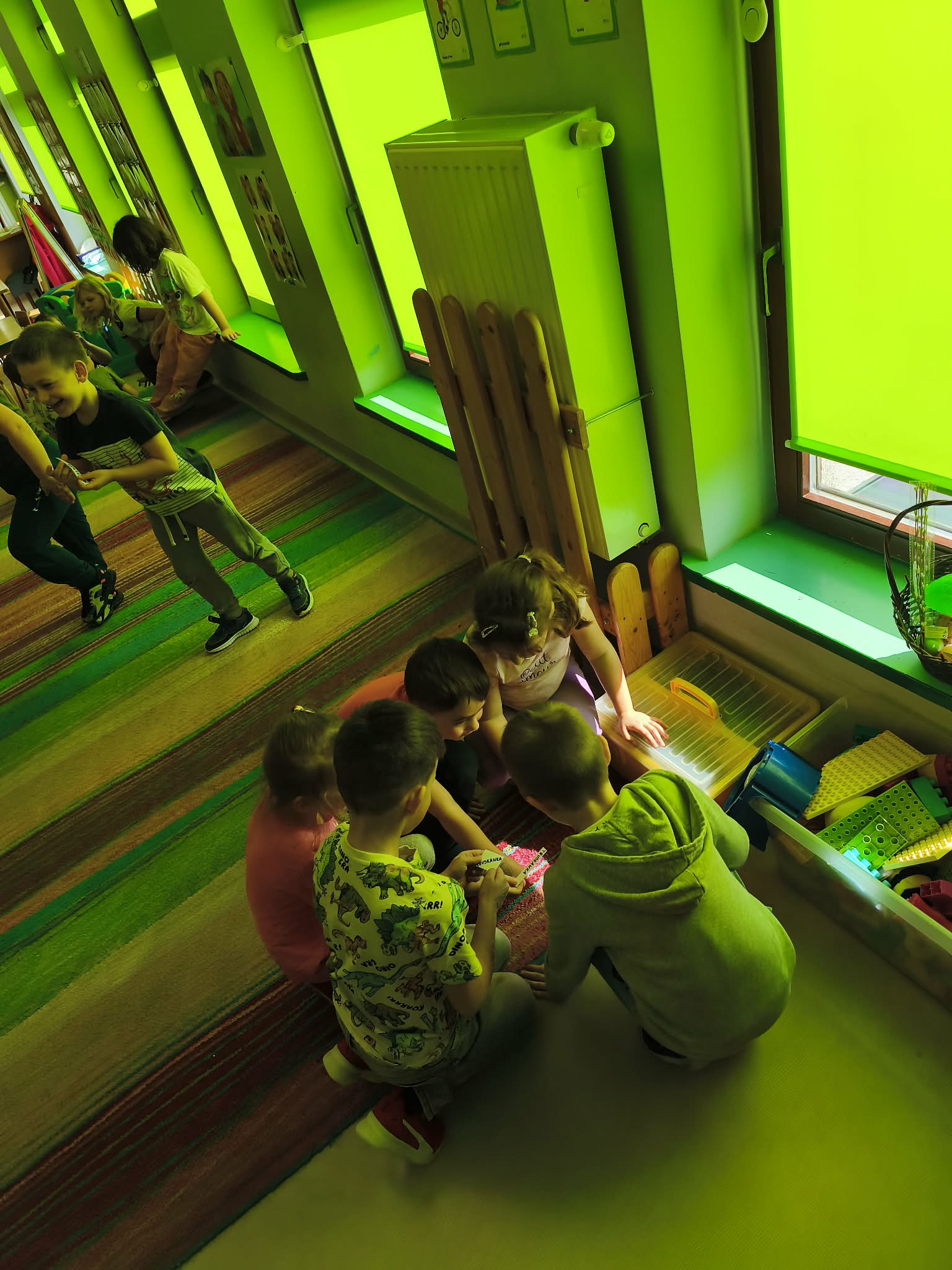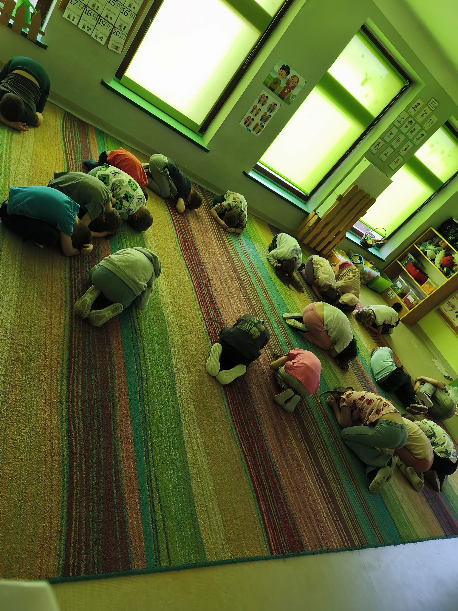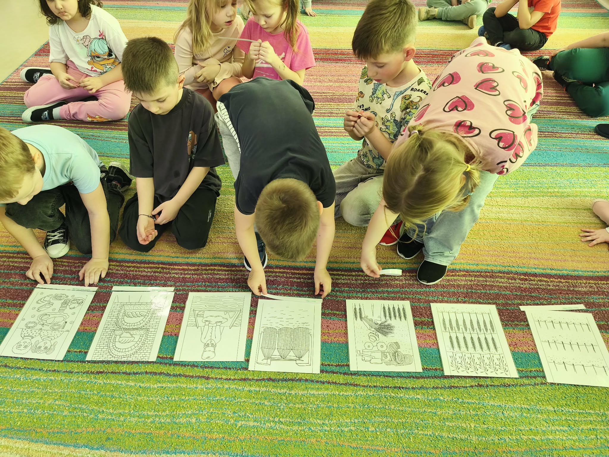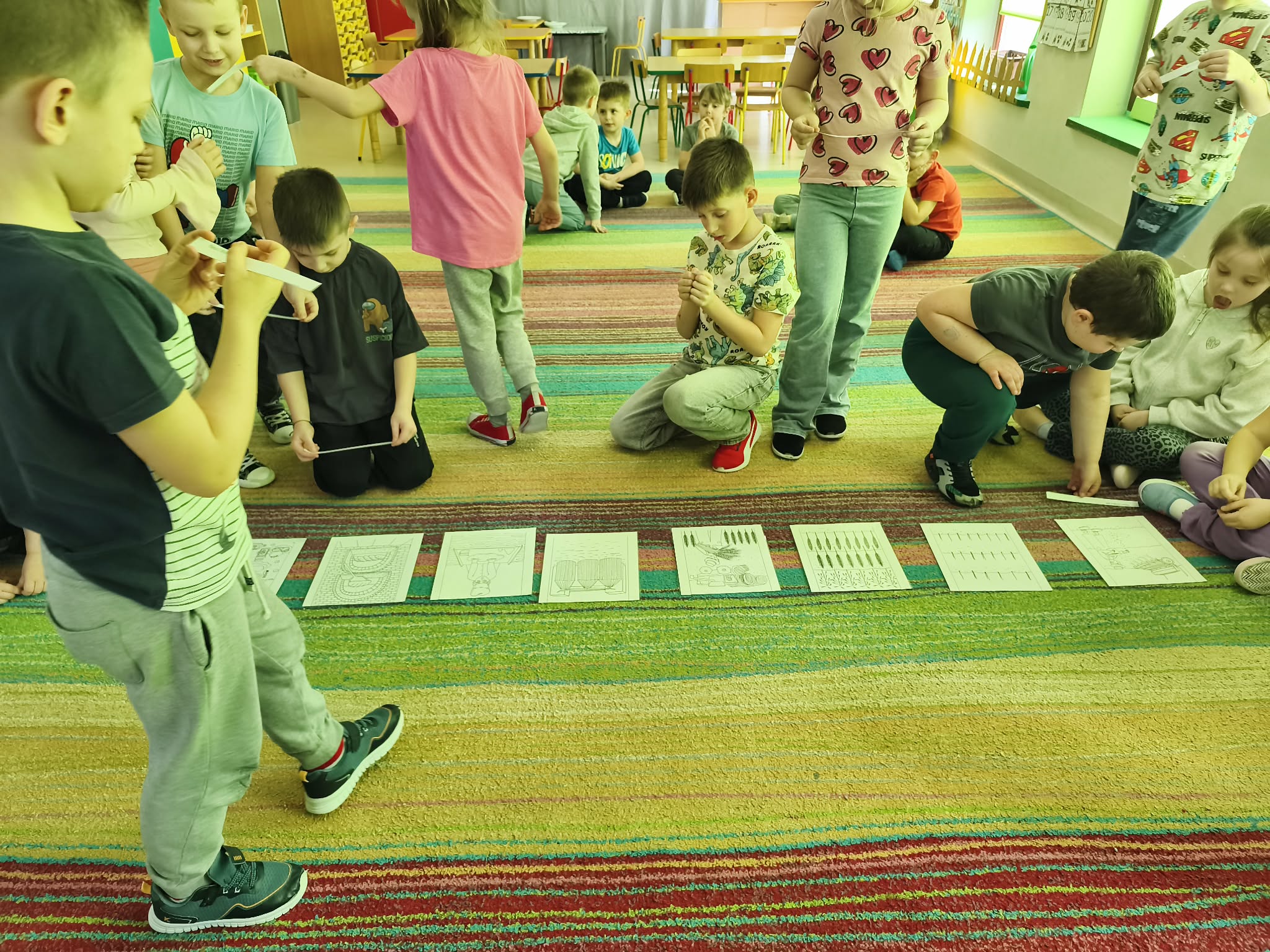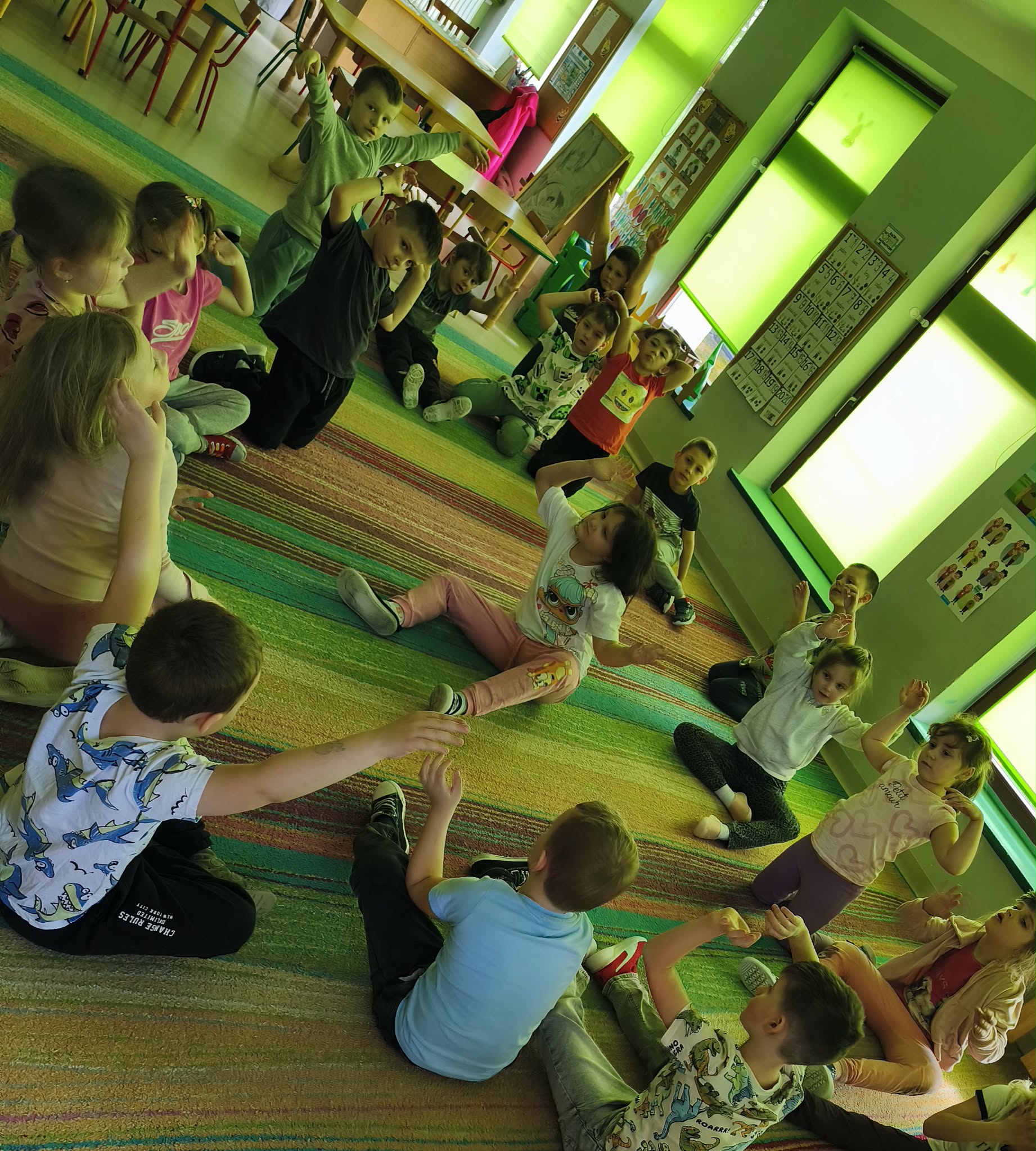 Dziś uczestniczyliśmy w pierwszych zajęciach pt. "Produkcja żywności", na początku których odpowiadaliśmy na pytanie, skąd się bierze jedzenie. Dzieci miały okazję pochwalić się swoją wiedzą w tym zakresie, a tym samym kształciły umiejętność budowania zdań. W następnym etapie nazywaliśmy źródła jedzenia w oparciu o ilustracje, a dzieci starsze dobierały właściwe podpisy. Chwilkę później losowaliśmy małe obrazki różnych produktów i przyporządkowaliśmy je do w/w źródeł, po czym chętne dzieci starsze dopasowały właściwe podpisy. Nie mogło zabraknąć zabawy ruchowej, podczas której sadziliśmy wskazane przez nauczycielkę warzywo/owoc na odpowiedniej grządce, korzystając najpierw z ilustracji, a następnie z napisów. Przy okazji, wspólnymi siłami przypomnielismy sobie, jak powstaje chleb, poprzez ułożenie historyjki obrazkowej we właściwej kolejności i wskazanie pasujących podpisów. Na zakończenie uczestniczyliśmy w zabawie relaksacyjnej przy dźwiękach natury, gdzie dzieci zamieniły się w ziarenko grochu i odgrywały ruchem to, co usłyszały.
