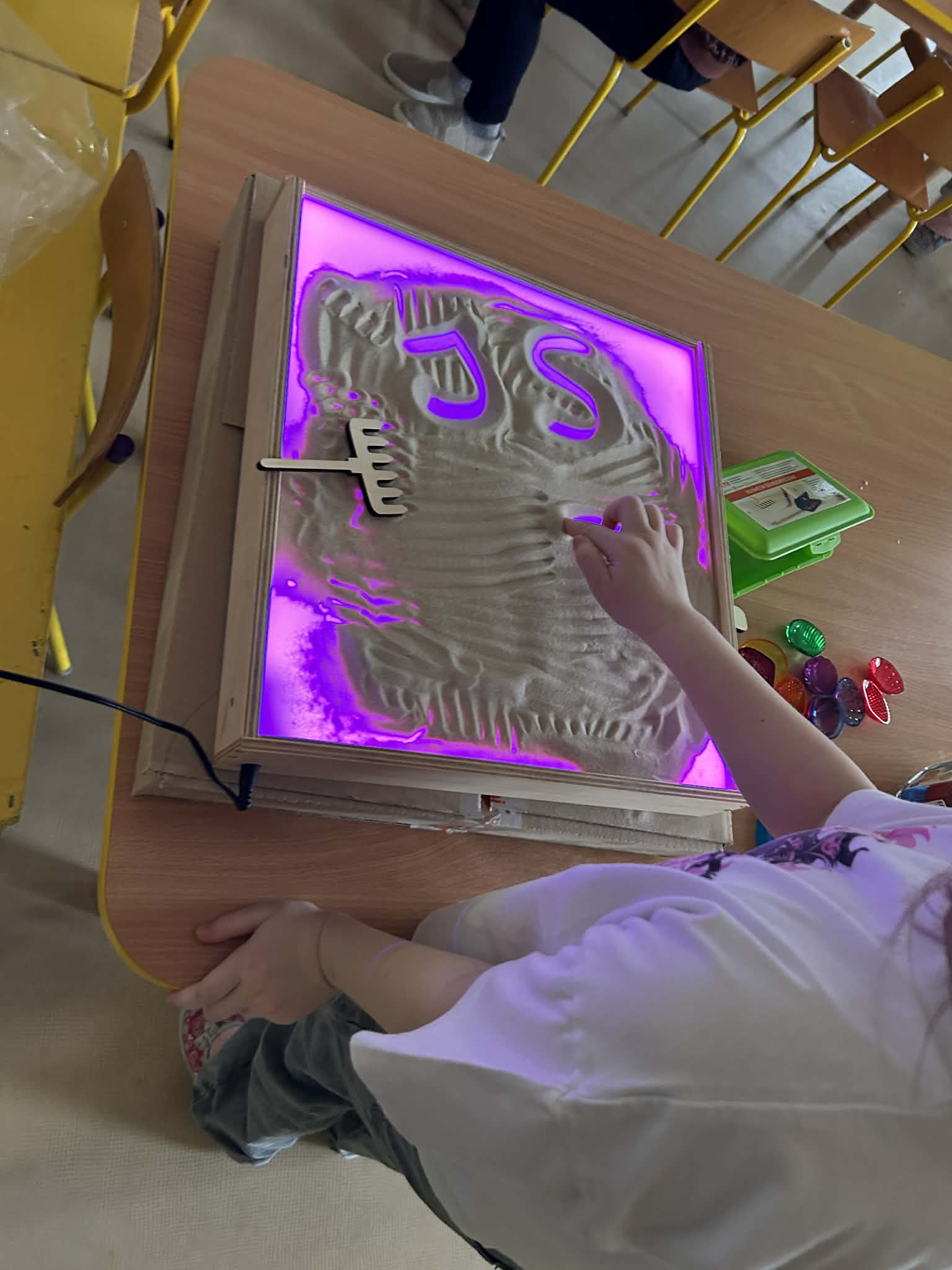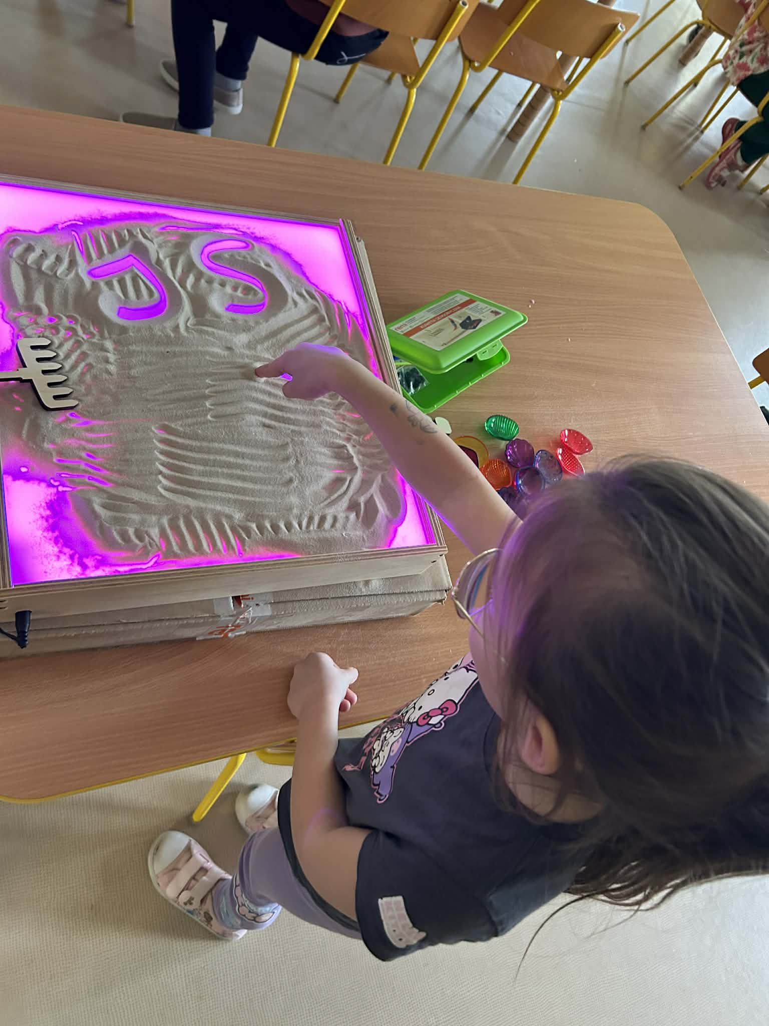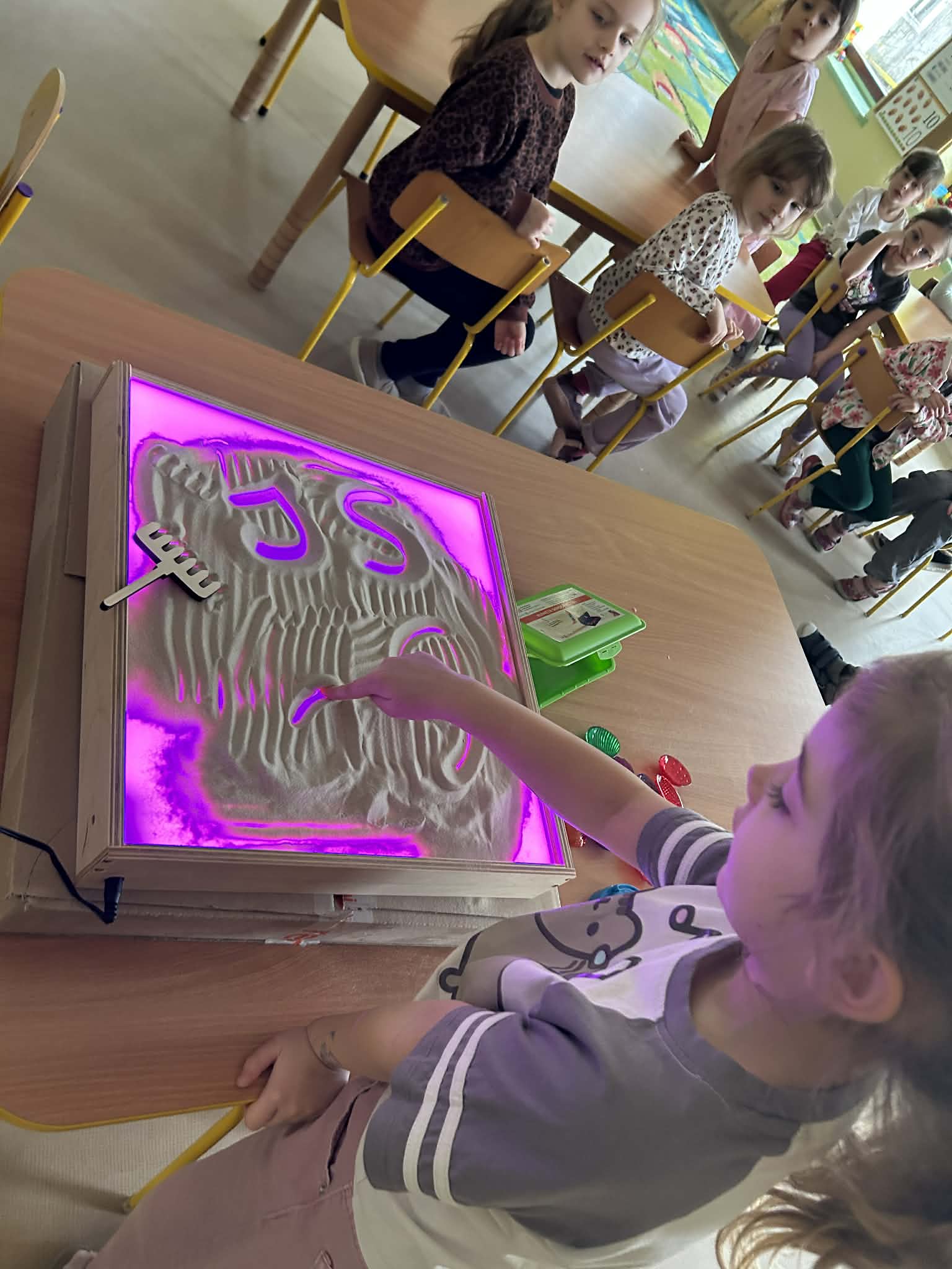 Tego dnia "Motylki" brały udział w fantastycznych zajęciach sensorycznych, rozwijających inwencję twórczą. Rzeźby z piasku tworzą zarówno amatorzy, jak i profesjonalni artyści np. Andoni Bastarrika, Wojciech Łukiański. "Motylki" stworzyły własne rzeźby wykorzystując piasek kinetyczny oraz foremki, a także rysowały piaskiem na edukacyjnej, podświetlanej tablicy. Takie działania bardzo angażują przedszkolaki i sprawiają im mnóstwo radości. A przy okazji są przykładem tego, że sztuką można się bawić w sposób niezwykle atrakcyjny. Zachęcajmy do takich działań również w środowisku domowym, puśćmy wodzę fantazji i ćwiczmy w ten sposób motorykę małą oraz rozwijajmy wyobraźnię dzieci.