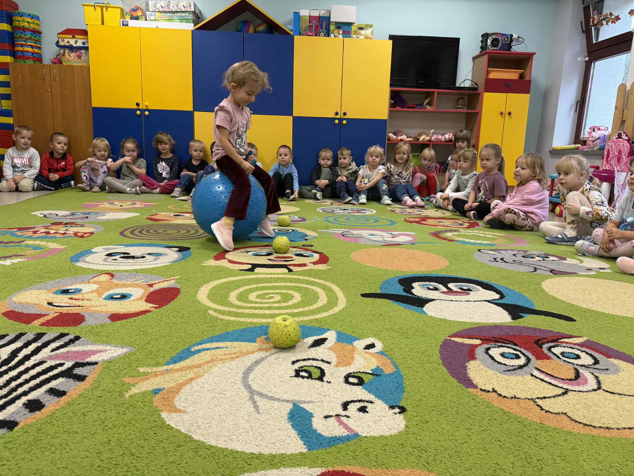 Dodatkową atrakcją był owocowy tor przeszkód, podczas którego dzieci mogły wykazać się zręcznością i sprytem, a ich koledzy i koleżanki gorąco im kibicowali.