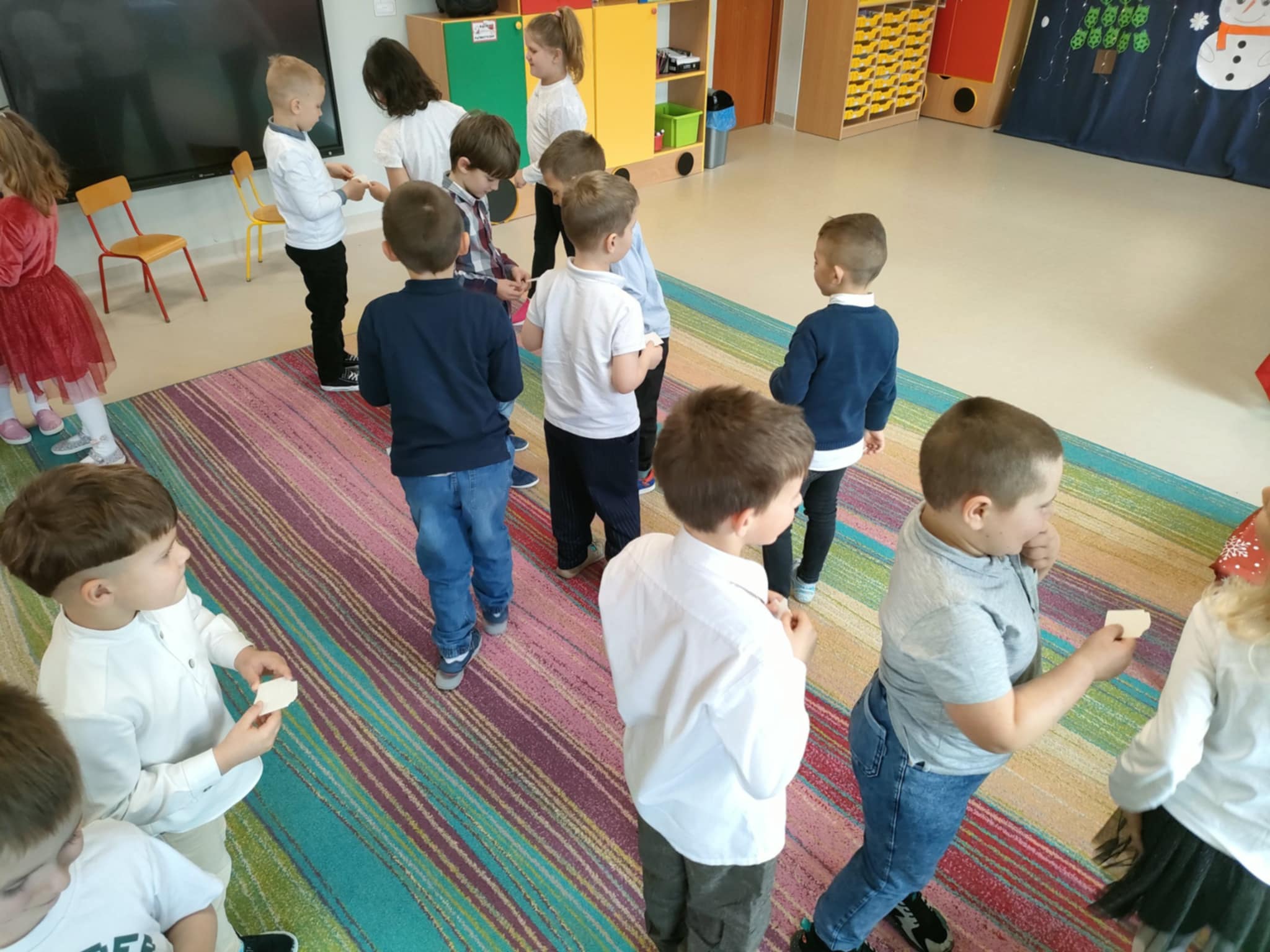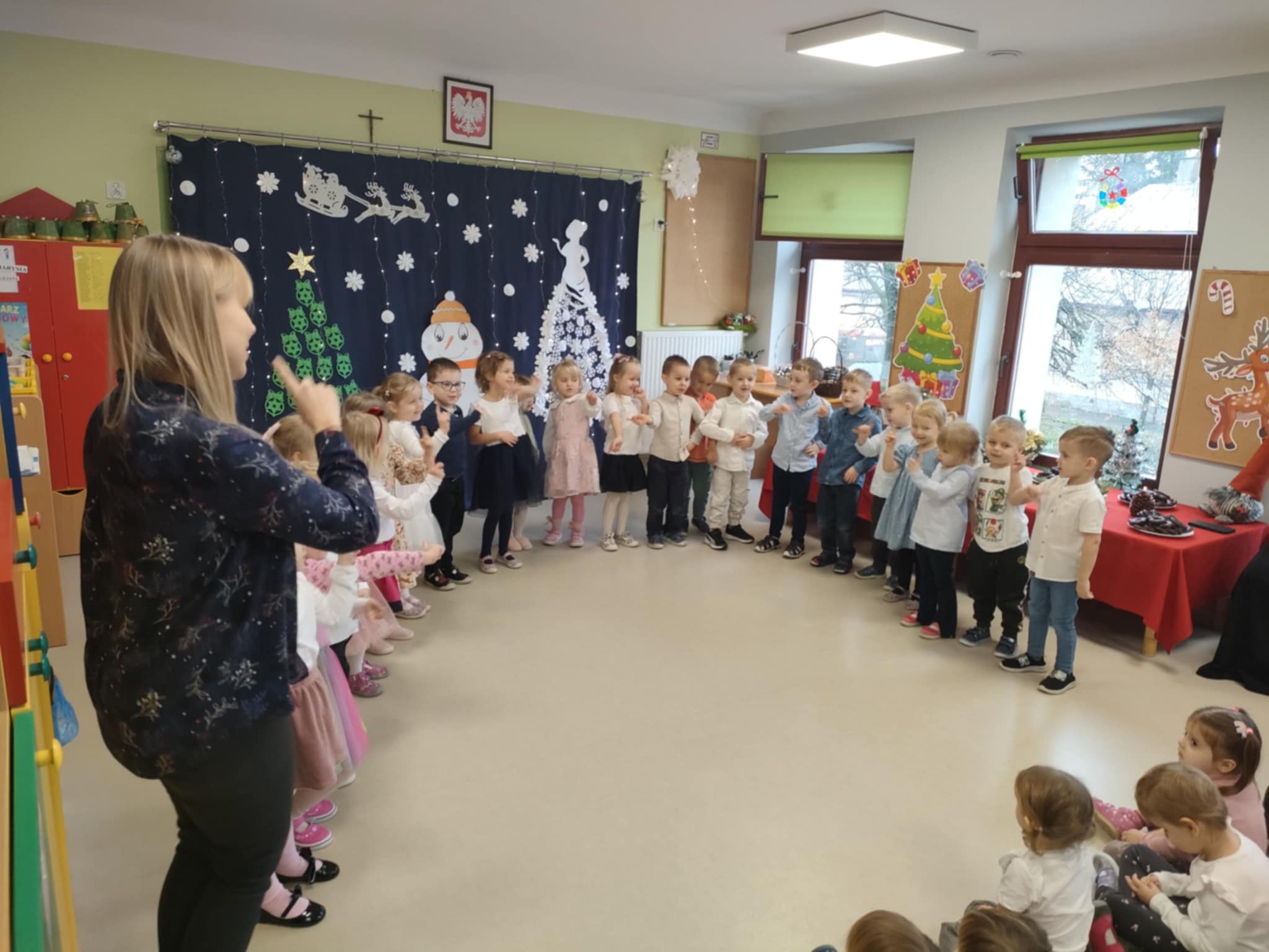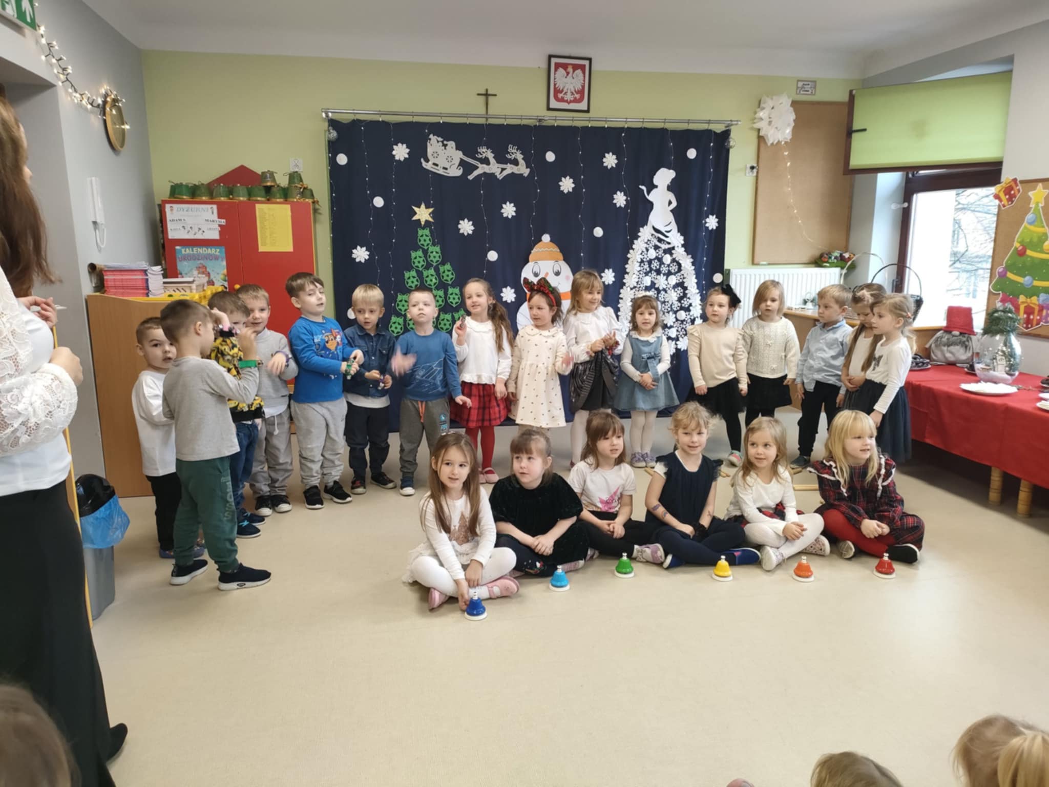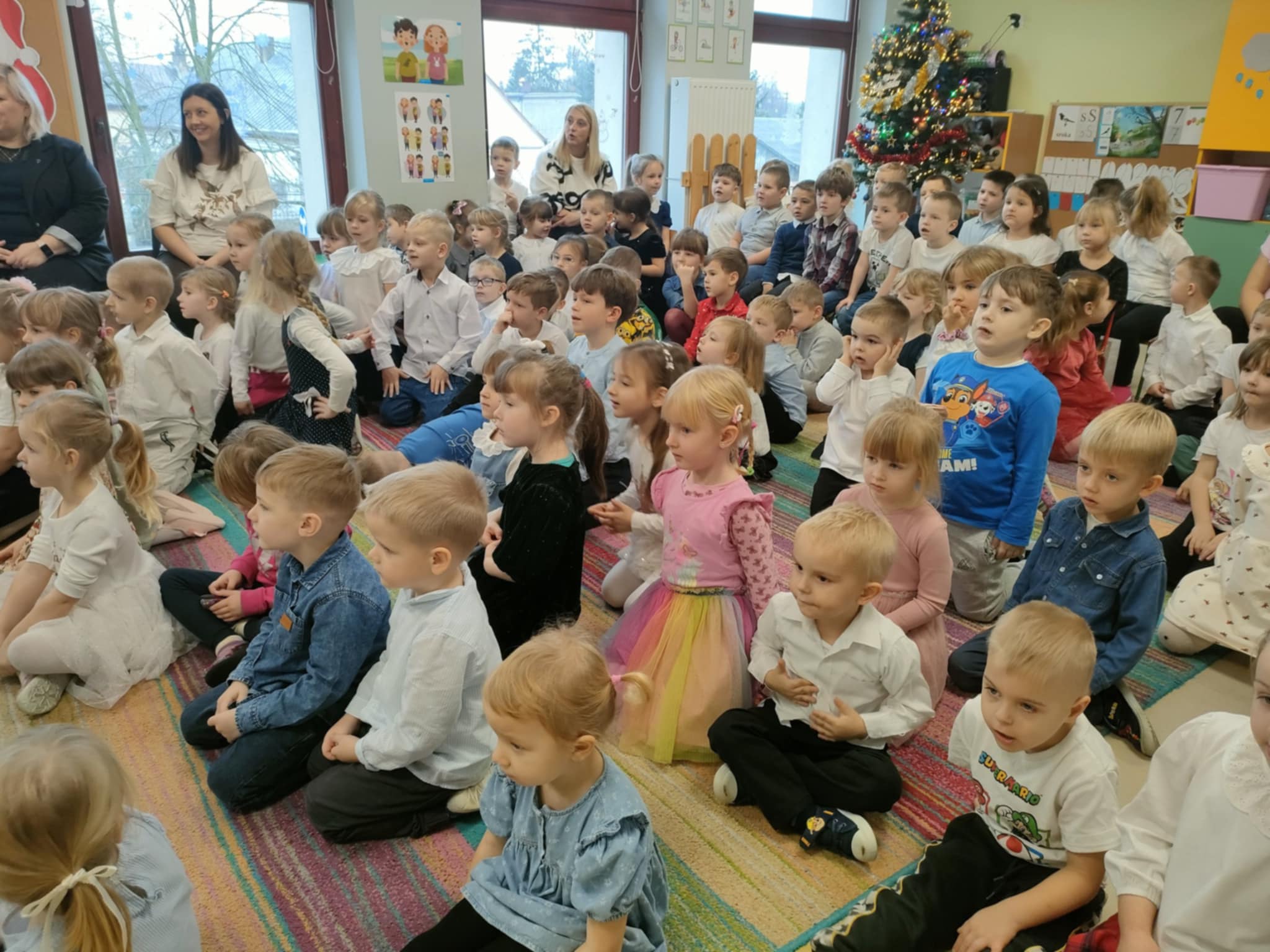 Spotkanie wigilijne z Księdzem to tradycja w naszym przedszkolu. Proboszcz przypomniał nam o prawdziwej istocie Świąt Bożego Narodzenia, a dzieci miały okazję wysłuchać Słowa Bożego i poznać najważniejsze tradycje związane z tymi świętami. Wszystkie grupy wiekowe zaprezentowały również przygotowane wcześniej, urocze piosenki o tematyce zimowej/świątecznej. Takie spotkania tworzą atmosferę jedności i są okazją do refleksji przed Bożym Narodzeniem. Na zakończenie wysłuchaliśmy życzeń od Księdza, p. Katechetki oraz p. Dyrektor, a wybrane przedszkolaki wręczyły naszym Gościom podziękowania. Po spotkaniu dzieci powróciły do swoich klas, w których symbolicznie dzieliły się opłatkiem, składając sobie życzenia i otrzymały słodki poczęstunek. Niech ten czas przygotowań świątecznych sprawi, że zatrzymamy się na chwilę i poczujemy prawdziwą magię świąt.