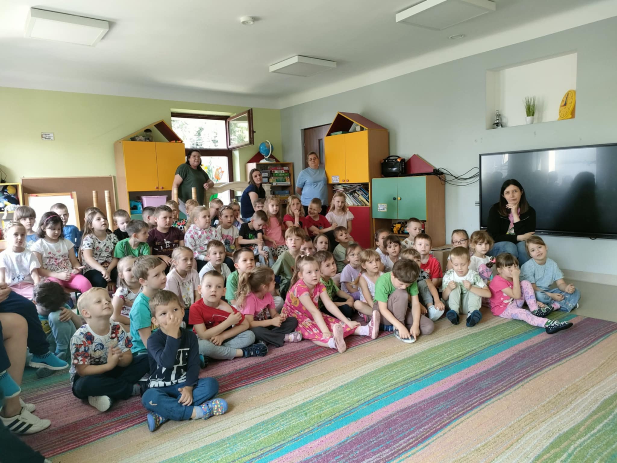 Podczas spotkania dzieci przypomniały sobie najważniejsze zasady bezpieczeństwa podczas wakacji i przechodzenia przez ulicę oraz omówiliśmy wszelkie sytuacje niebezpieczne. Przypomnieliśmy sobie również numery alarmowe oraz sytuacje, podczas których należy ich używać. Największą atrakcją była prezentacja radiowozu, do którego przedszkolaki mogły wsiąść a także usłyszeć głośną syrenę policyjną. Wybrane dzieci wręczyły Funkcjonariuszom podziękowania a wszystkie dzieci za aktywny udział w prelekcji o wakacyjnym bezpieczeństwie otrzymały opaski odlaskowe i słodkości. W imieniu całego przedszkola, ogromnie dziękujemy p. Szczepanowi Derulskiemu (tacie Zosi z naszego przedszkola) oraz p. Kai Goszczyńskiej (mamie Kajetana z naszej placówki) za przekazanie ogromnej wiedzy, poświęcony czas i zaangażowanie.
