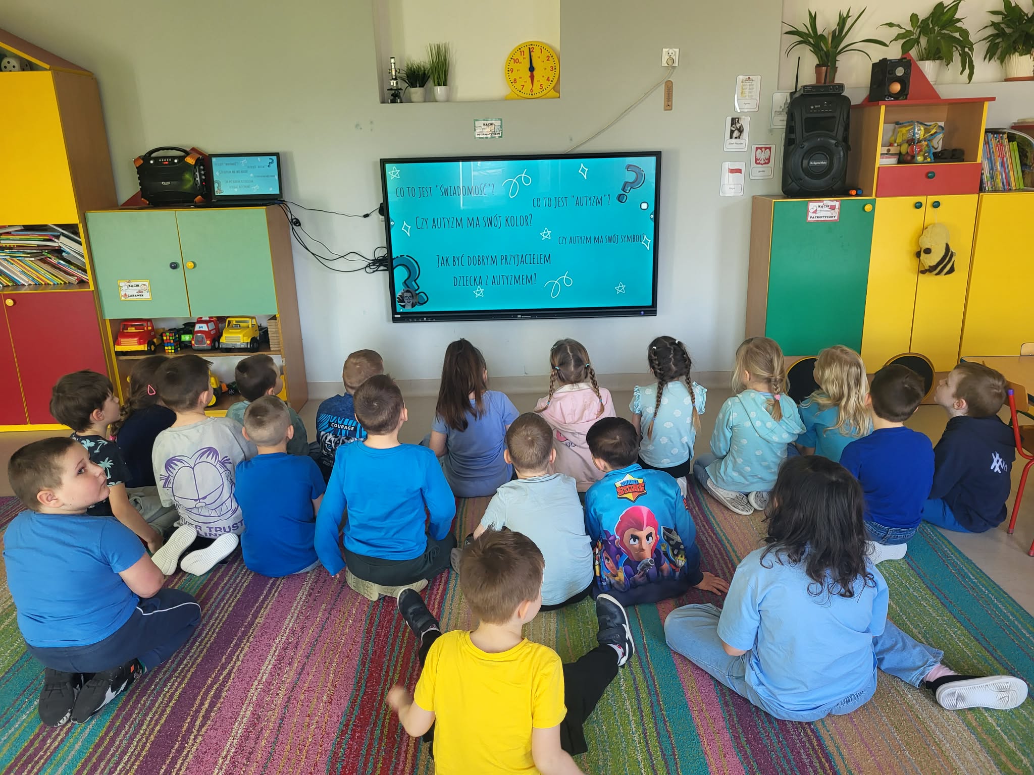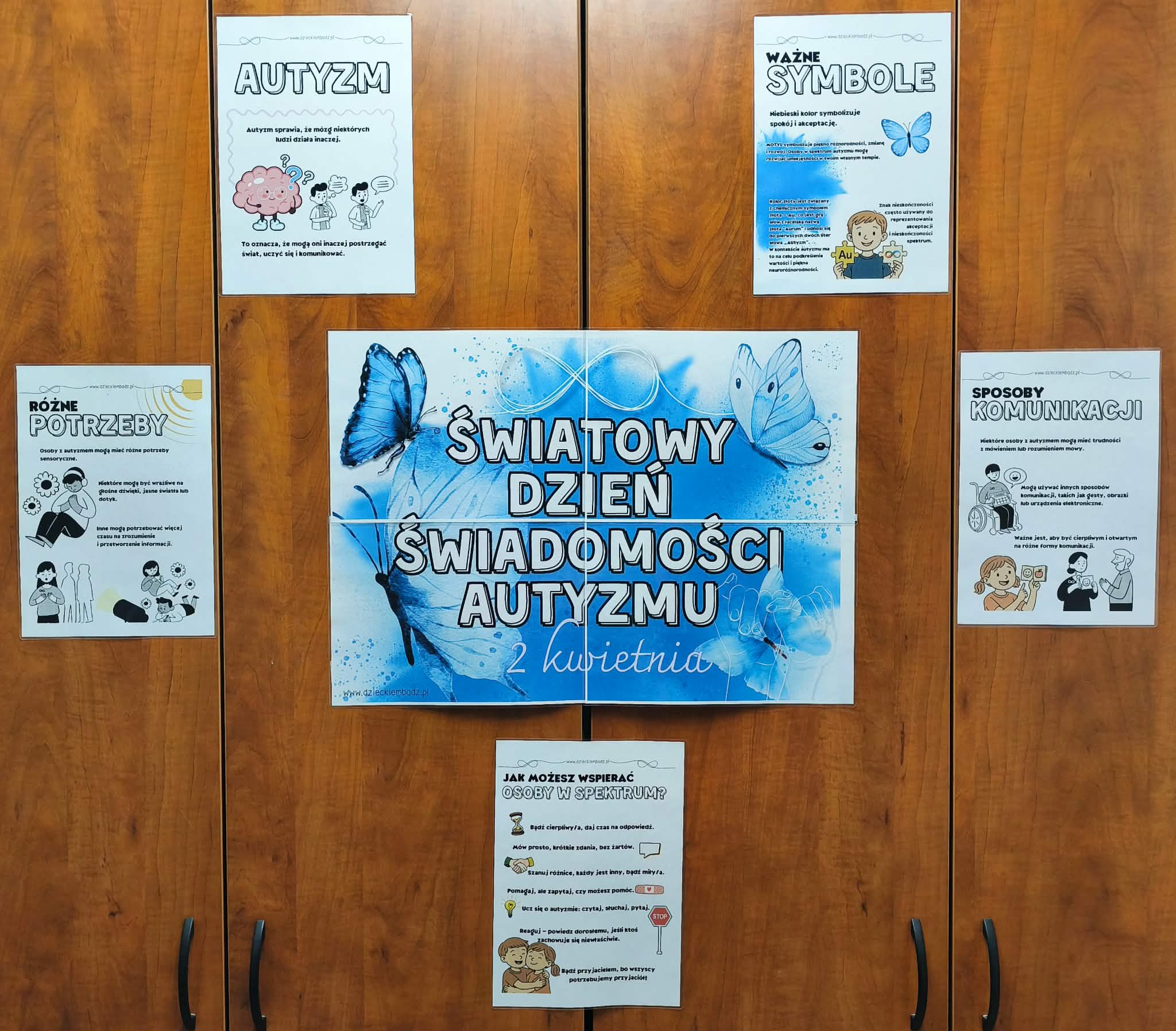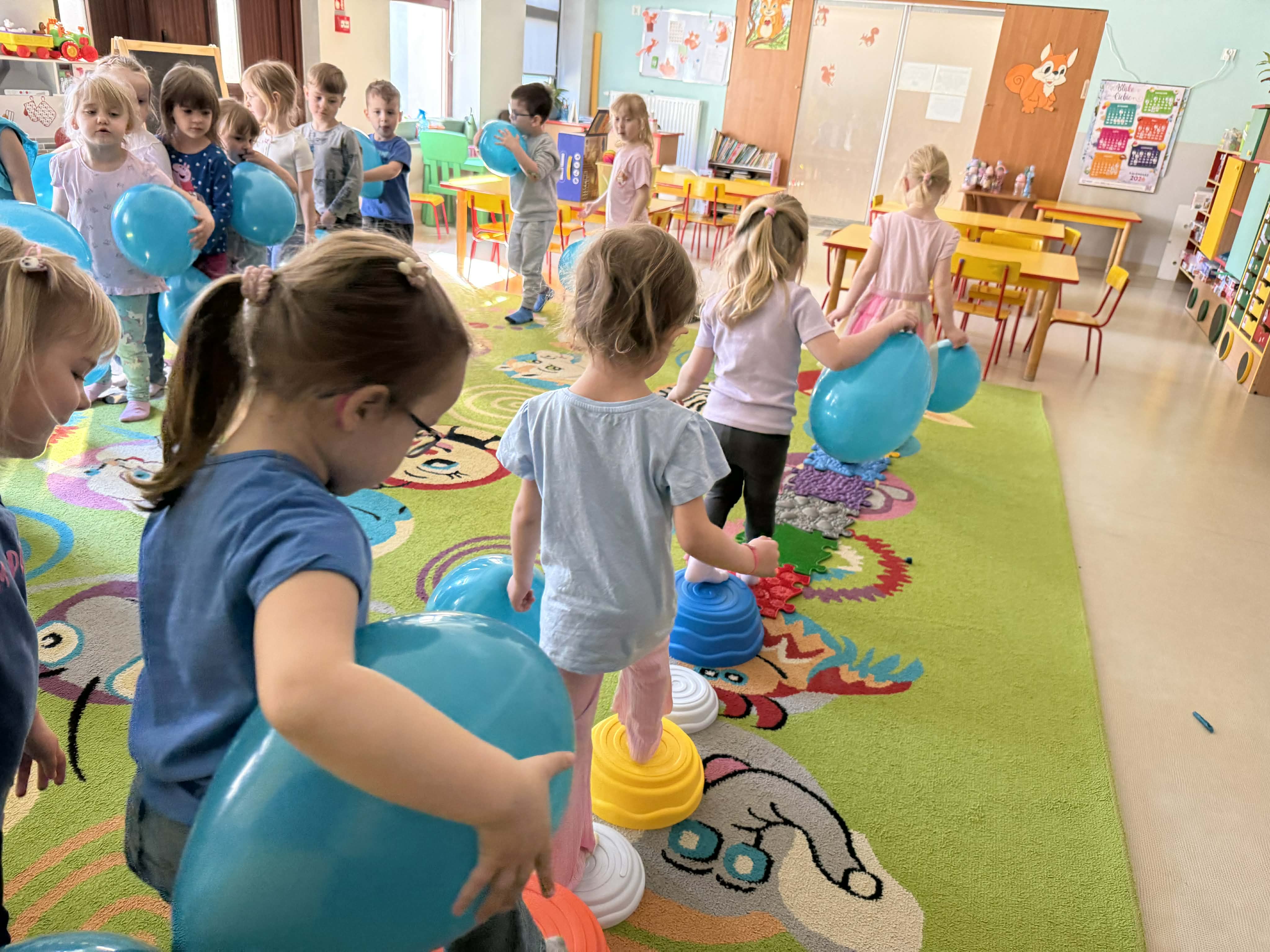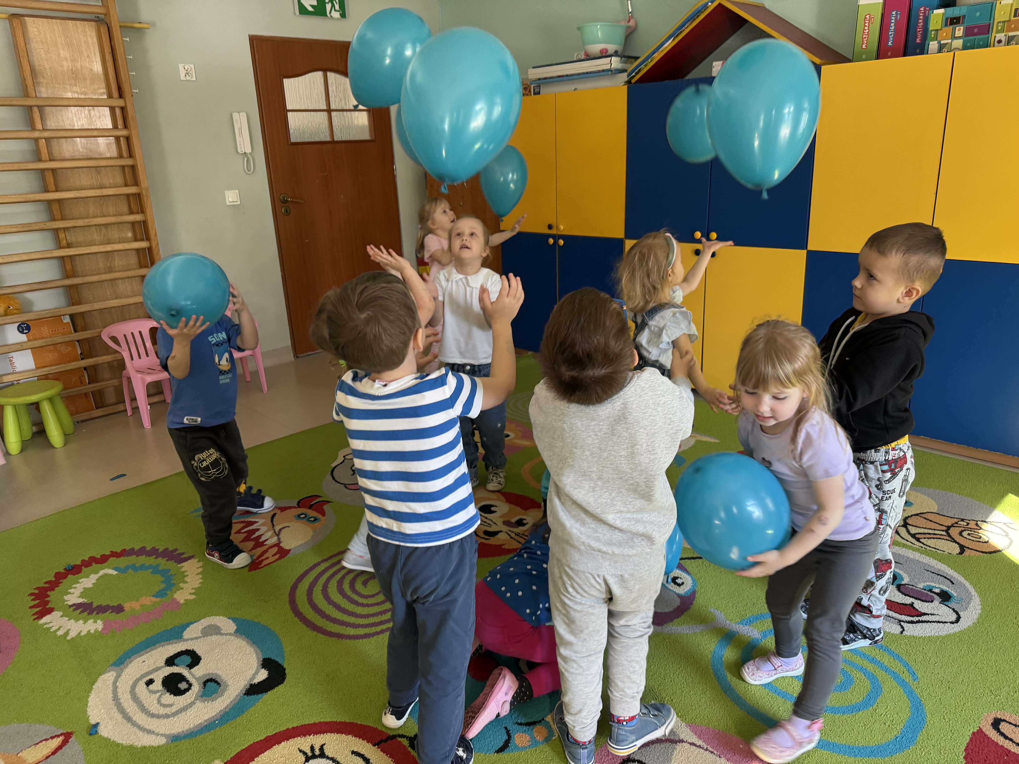 Najważniejszym celem tej, wyjątkowej inicjatywy było budowanie wrażliwości i zrozumienia już od najmłodszych lat. Tego dnia przedszkolaki za pomocą różnych, ciekawych aktywności(ruchowych, plastycznych czy słuchowych) dowiedziały się, czym jest autyzm. Poznały również ważne symbole, tj. niebieski kolor symbolizujący spokój i akceptację, złoty kolor podkreślający wartość i piękno neuroróżnorodności, a także znak nieskończoności i motyla. Zrozumiały, że niektóre osoby z autyzmem mogą mieć trudności z mówieniem i rozumieniem mowy, a co za tym idzie mogą używać innych sposobów komunikacji(gesty, obrazki), ale najważniejszym jest to, by w kontakcie z taką osobą być cierpliwym i otwartym na różne formy komunikacji. Dowiedziały się także, że osoby z autyzmem mogą mieć różne potrzeby sensoryczne - niektóre mogą być wrażliwe na głośne dźwięki/jasne światło/dotyk, a inne z kolei mogą potrzebować więcej czasu na zrozumienie i przetworzenie danej informacji. Przedszkolaki zrozumiały, że można, a nawet trzeba wspierać te osoby i być po prostu przyjacielem, bo wszyscy potrzebujemy przyjaciół, aby rozwijać swoje skrzydła. A to wszystko w ramach przeprowadzonych, angażujących zajęć, które specjalnie na tę okazję przygotowały nauczycielki, podczas których nie zabrakło niebieskich akcentów na ubrankach dzieci oraz balonów w tej kolorystyce. Warto również podkreślić fakt, że podczas zajęć kształtowaliśmy empatię i postawę akceptacji, oswajaliśmy podopiecznych z neuroróżnorodnością, rozwijaliśmy umiejętności społeczne, wprowadziliśmy elementarną wiedzę o autyzmie, a także budowaliśmy postawę włączającą. Dodatkowo na holu przyczepione zostały materiały edukacyjne w wersji papierowej dla zainteresowanych dzieci oraz Rodziców.