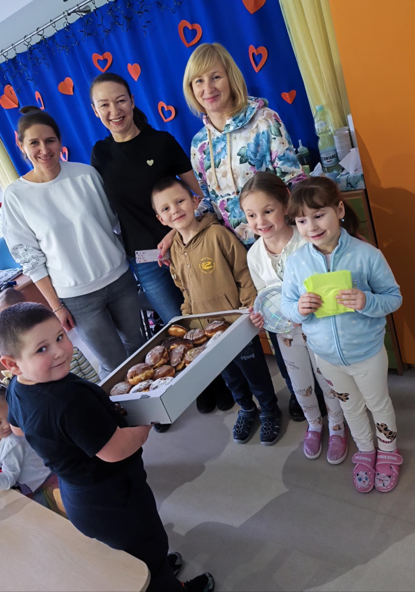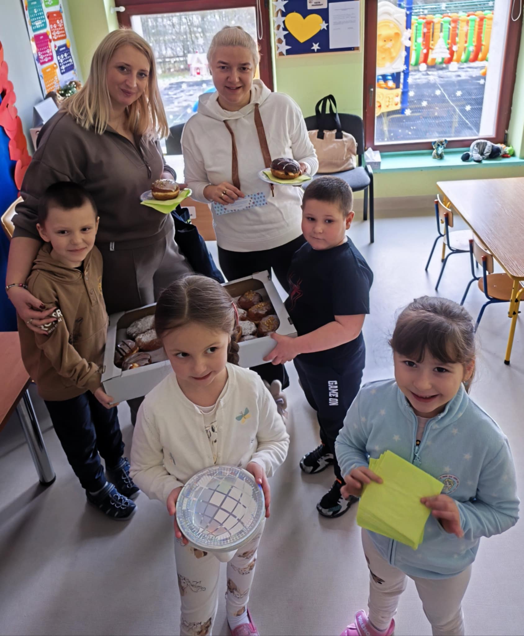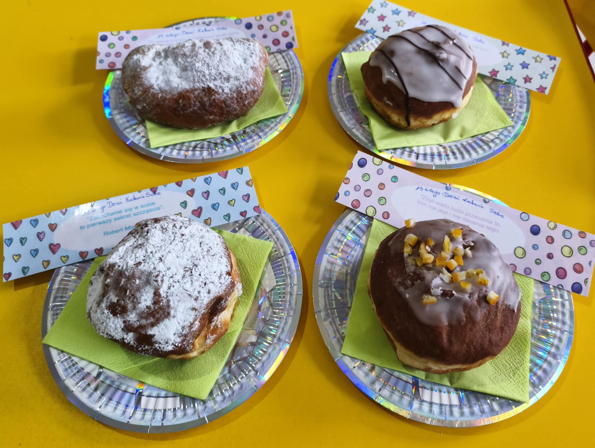 Tłusty Czwartek to ostatni czwartek przed Wielkim Postem (Środą Popielcową) rozpoczynający ostatni tydzień karnawału, a także jedna z najsłodszych tradycji, które są uwielbiane wśród małych i dużych, więc nie mogło zabraknąć pysznego, słodkiego poczęstunku. Tuż po śniadanku, wybrane dzieci z grupy "Pszczółek" powędrowały do wszystkich pracowników, by obdarować ich różnego rodzaju pączkami z zaprzyjaźnionej piekarni. Natomiast na podwieczorek każdy przedszkolak otrzymał swojego, puszystego, złocistego pączka pełnego słodkiego nadzienia.