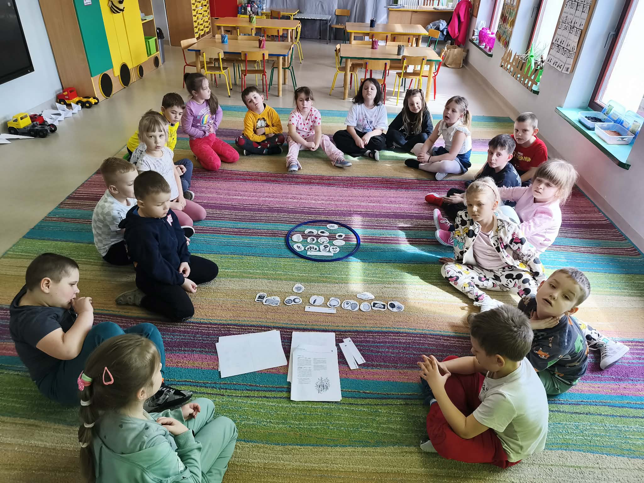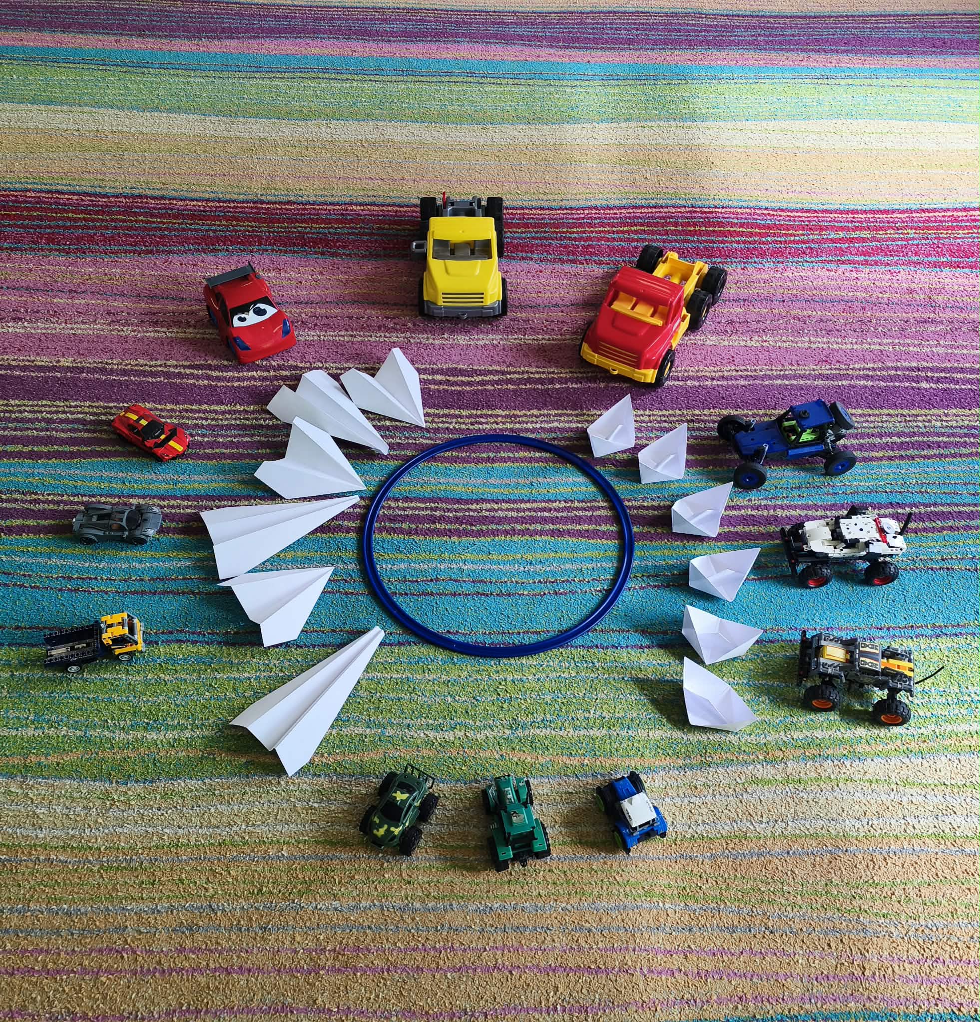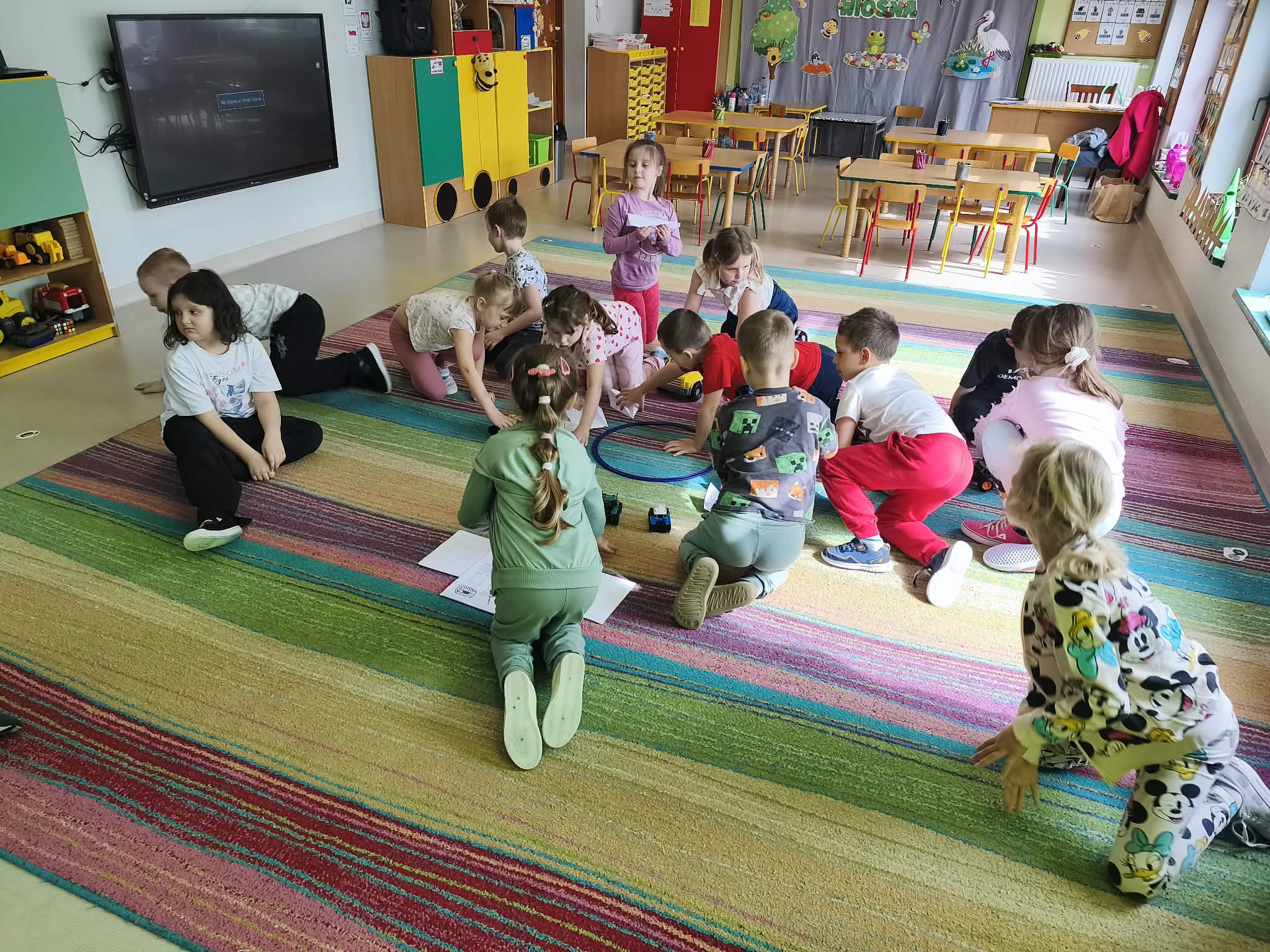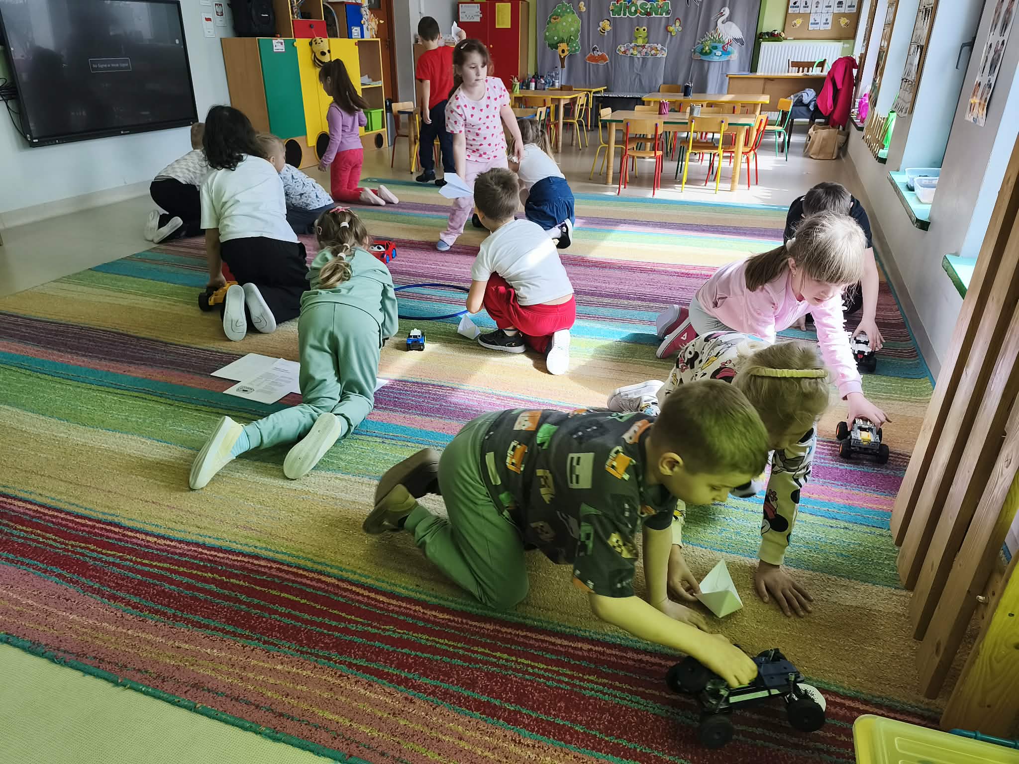 Przed spotkaniem, nauczycielka rozłożyła na dywanie różnorodne, zabawkowe pojazdy oraz papierowe statki i łódki, natomiast w całej sali ukryte zostały obrazki z różnymi produktami(lokalnymi i egzotycznymi). Na początku zajęć, dzieci odpowiadały na pytanie "W jaki sposób produkty z odległych miejsc trafiają na nasz talerz?". W tym momencie przypomnieliśmy sobie różne środki transportu, po czym przystąpiliśmy do zabawy ruchowej, podczas której "Pszczółki" korzystając z pojazdów przywiozły wszystkie produkty na środek kręgu. W następnym etapie wspólnymi siłami udało nam się posegregować te produkty na: krajowe i zagraniczne. Przy okazji rozmawialiśmy też o własnych uprawach i ich znaczeniu dla nas oraz dla naszej planety. Na zakończenie wykonaliśmy pracę techniczno-plastyczną, aby utrwalić zdobyte wiadomości. Podczas tych zajęć dowiedzieliśmy się, że uprawiając własne warzywa i owoce możemy cieszyć się świeżymi produktami, które znajdują się na wyciągnięcie ręki oraz skracamy drogę ich transportu, mając jednocześnie wpływ na sposób ich uprawy stosując rozwiązania przyjazne środowisku. Dodatkowo prace wykonywane w ogrodzie wpływają pozytywnie na nasze zdrowie i samopoczucie. Po zajęciach, chętne dzieci próbowały jeszcze swoich sił w tworzeniu własnych łódek i samolotów techniką origami. Zachęcamy, by kontynuować tą zabawę również w środowisku domowym, ponieważ jest to doskonały spoób na ćwiczenie motoryki małej, cierpliwość, skupienie uwagi oraz kształtowanie precyzji drobnych ruchów rąk.