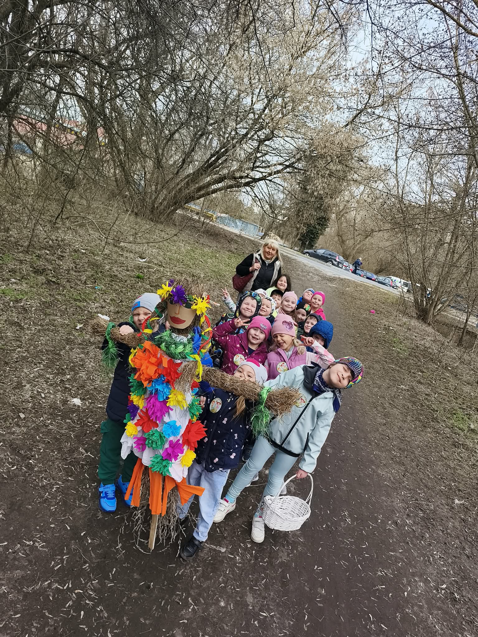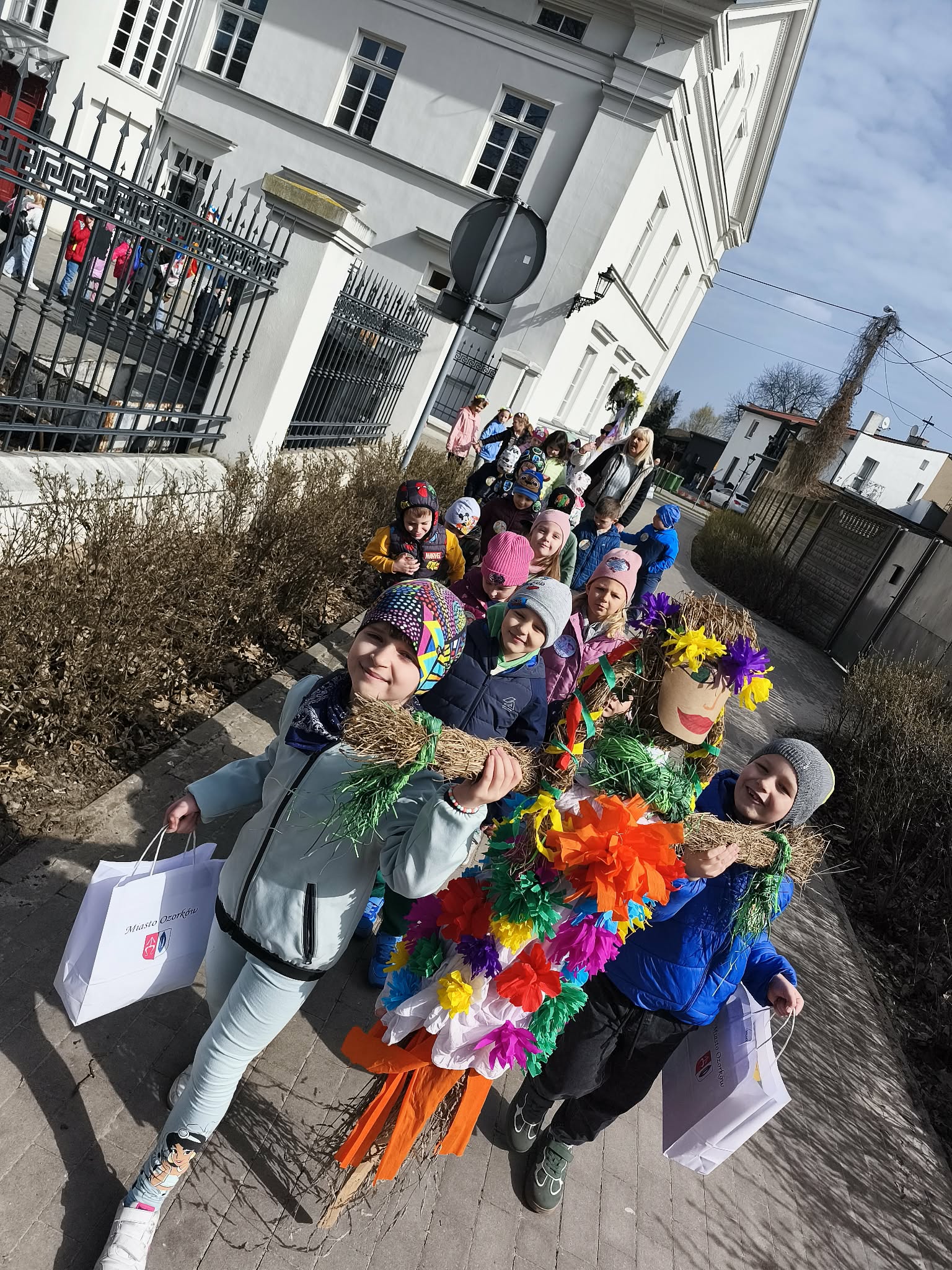 Powitanie wiosny to jedno z najbardziej radosnych i barwnych wydarzeń w kalendarzu przedszkolnym. Dla dzieci jest to nie tylko okazja do świętowania zmiany pory roku, ale także moment integracji, zabawy i nauki poprzez doświadczenie. Tego dnia "Pszczółki" wybrały się ze swoją, klasową "Marzanną" na spacer na dziedziniec MDK-u w Ozorkowie, by tam wziąć udział w poszukiwaniu wielkanocnych, czekoladowych jajeczek i zajączków, a także wziąć udział w konkursach z nagrodami. Do udziału w konkursie zgłosiła się Karolina Jaszczak, która recytowała wiersz "Przyjście wiosny" Jana Brzechwy oraz Filip Ochota, który zdobył I miejsce w kategorii wiosenno-wielkanocnych zagadek. Serdecznie gratulujemy i życzymy dalszych sukcesów! Po zakończeniu części konkursowej wybraliśmy się do Parku Miejskiego, by tam zgodnie z tradycją wrzucić naszą Marzannę do rzeki Bzury(wszystkie wrzucone do rzeki kukiełki zostały wyłowione przez pracowników gospodarczych MDK-u), po czym spacerkiem, wesoło śpiewając wiosenno-wielkanocną piosenkę, wróciliśmy do przedszkola. Na miejscu, korzystając z pięknej pogody, spędziliśmy jeszcze czas na placu zabaw. Powitanie wiosny to wyjątkowe wydarzenie, które wzbudza wśród dzieci ogromne emocje i entuzjazm. To dzień pełen kolorów, śmiechu i wspólnej zabawy, podczas którego najmłodsi mogą poczuć, że przyroda naprawdę budzi się do życia.