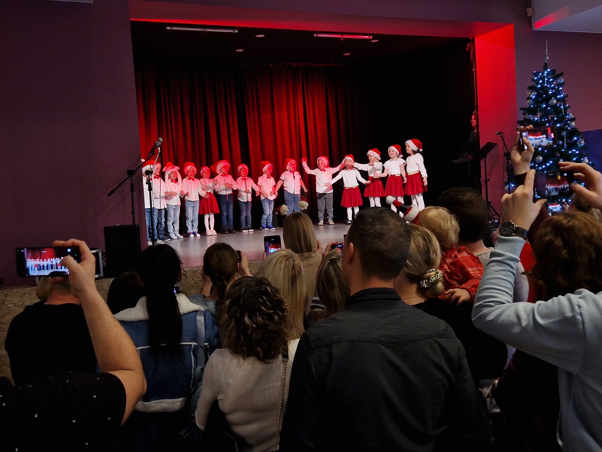 Tego dnia, "Pszczółki" wraz ze swoimi Rodzinami przybyły na Kiermasz Świąteczny w MOK-u, gdzie w mikołajkowej stylizacji zaprezentowały nam piosenki dla Mikołaja. Po występach otrzymały małe słodkości i wraz z bliskimi udały się na wystawę przepięknych, rękodzielniczych ozdób, dekoracji i gadżetów bożonarodzeniowych od lokalnych twórców. Takie występy są niezwykle ważne, ponieważ uczą dzieci pokonywania tremy przed publicznością, a Rodzicom sprawiają mnóstwo radości. Dodatkowo to okazja do zatrzymania się w tym świątecznym pośpiechu i bardzo atrakcyjna forma spędzania czasu razem. Z pewnością wszyscy poczuliśmy magię nadchodzących świąt. Przedszkolaki wykazały się ogromnym zaangażowaniem oraz skupieniem i poradziły sobie fantastycznie. Dziękujemy za liczną obecność i zapraszamy do udziału w kolejnym Kiermaszu, tym razem w edycji wielkanocnej, natomiast Organizatorom pięknie dziękujemy za zaproszenie!