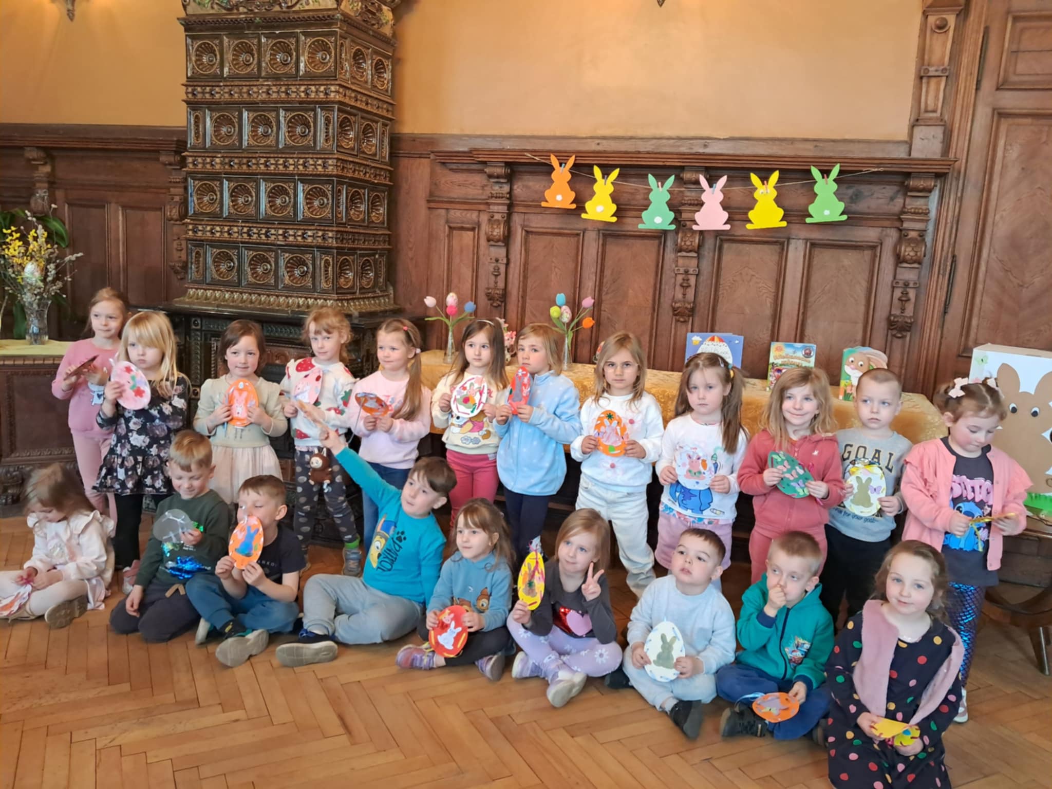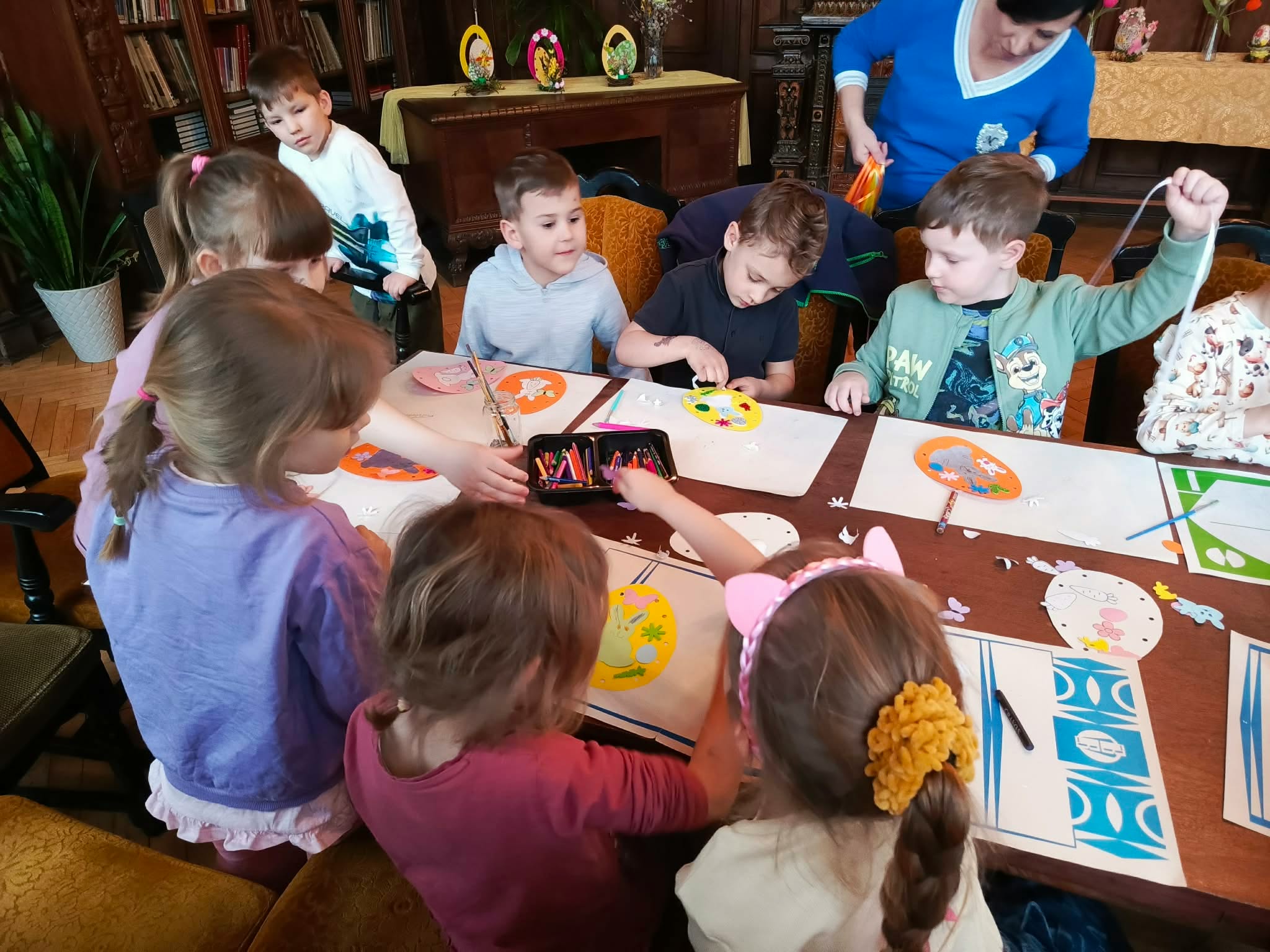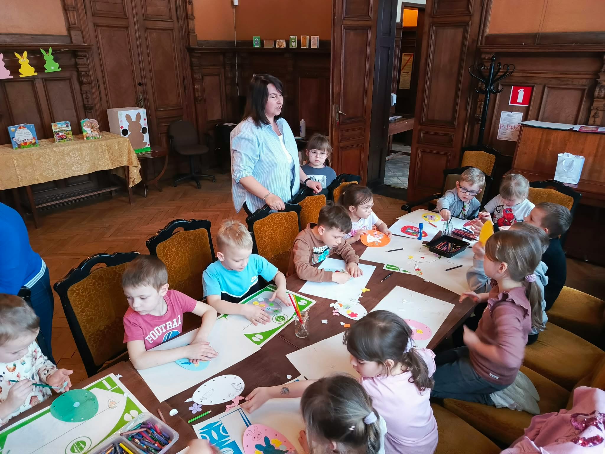 Udział "Żabek" i "Motylków" w wielkanocnych zajęciach w Miejskiej Bibliotece Publicznej.