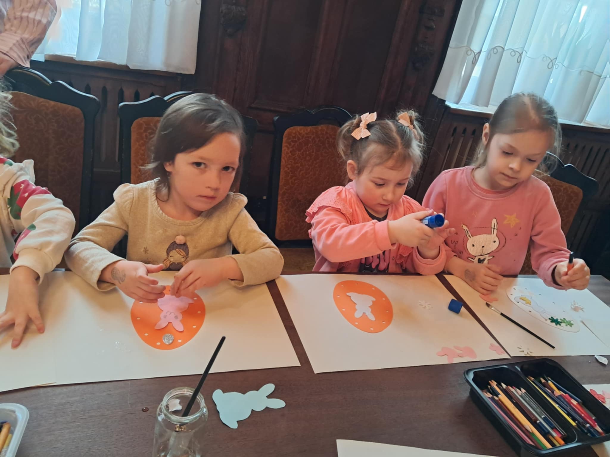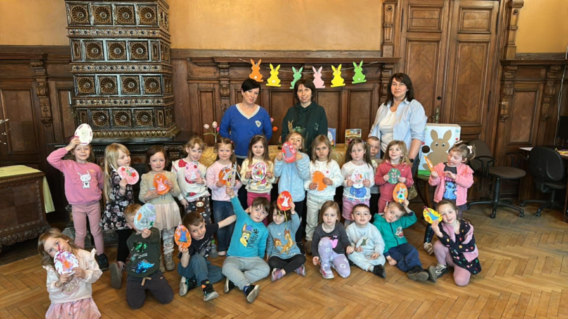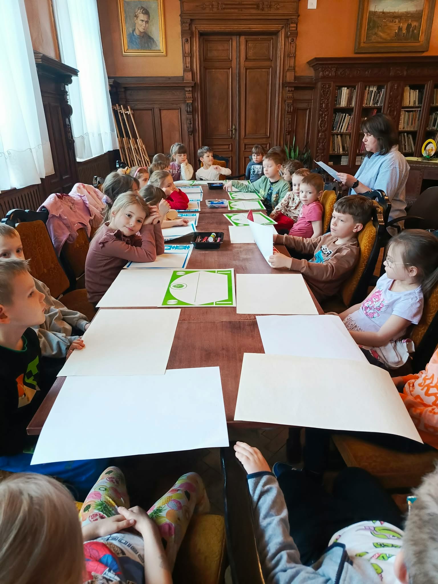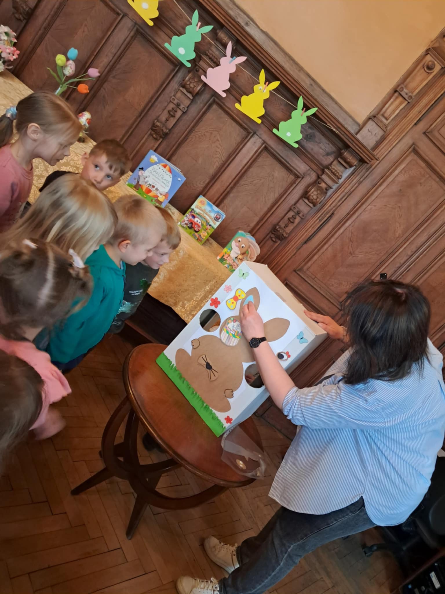 Udział "Żabek" i "Motylków" w wielkanocnych zajęciach w Miejskiej Bibliotece Publicznej.