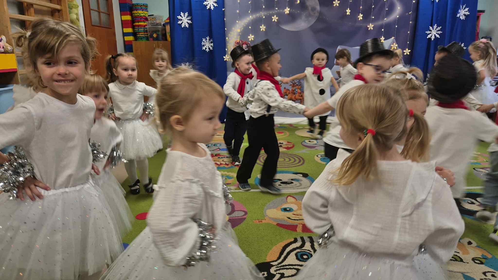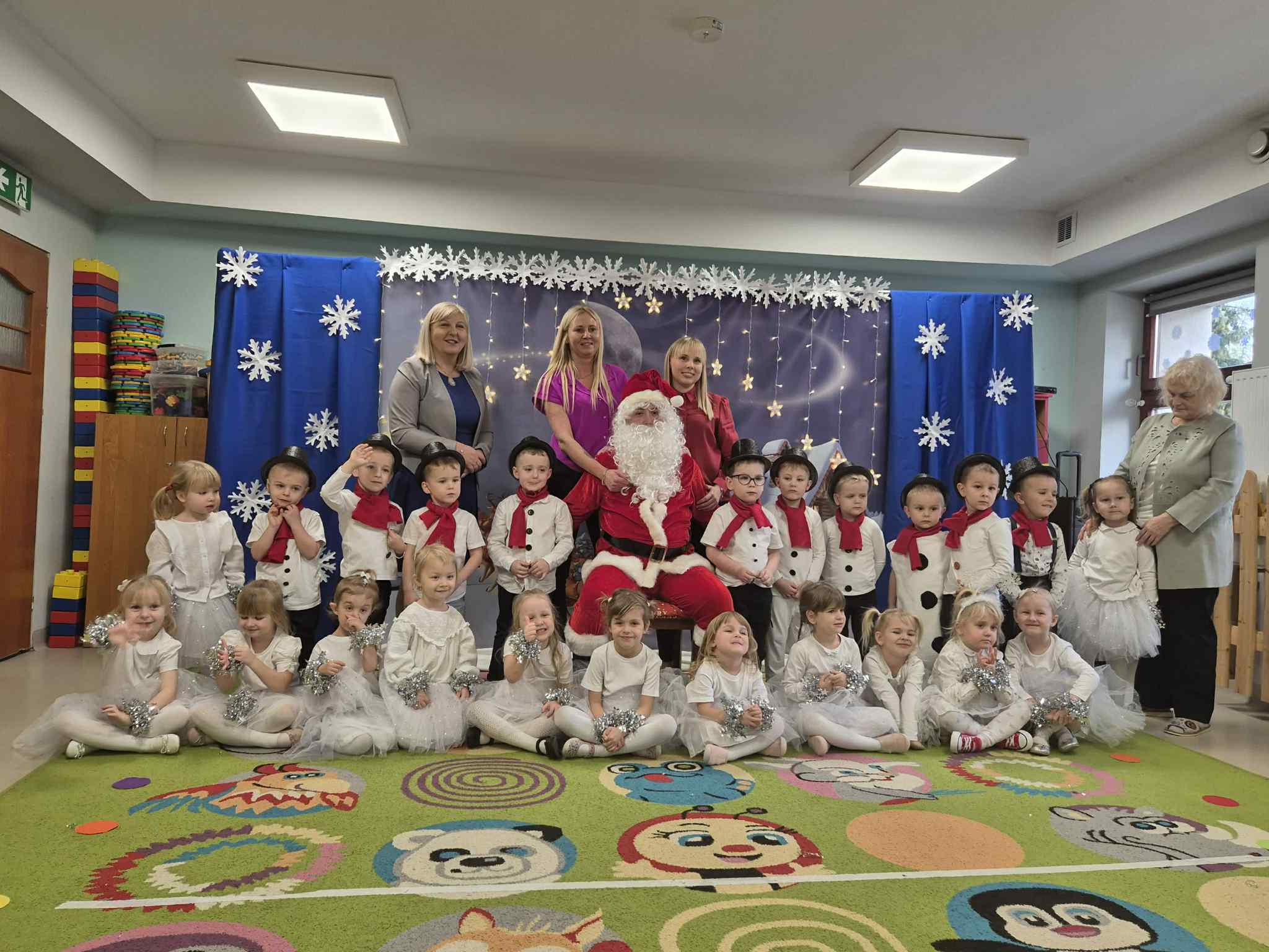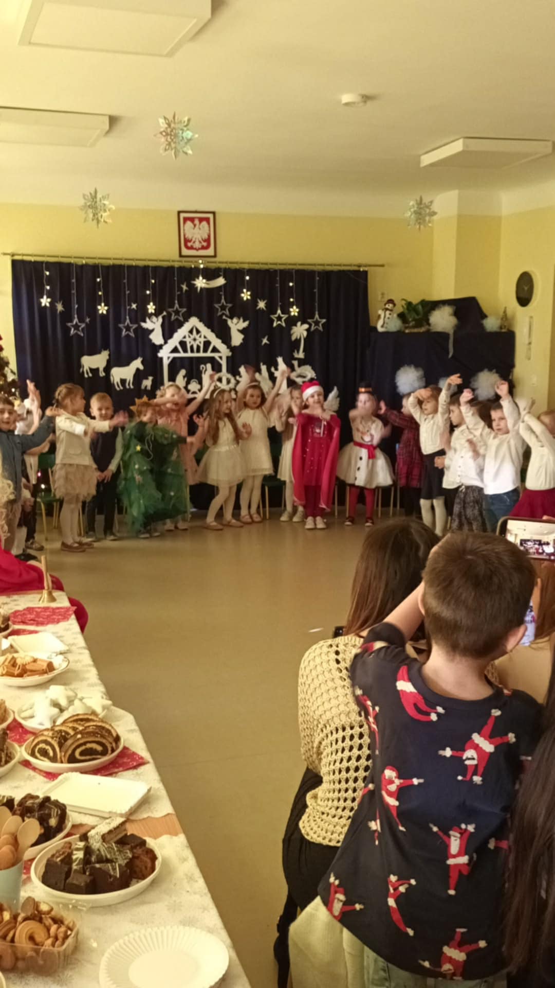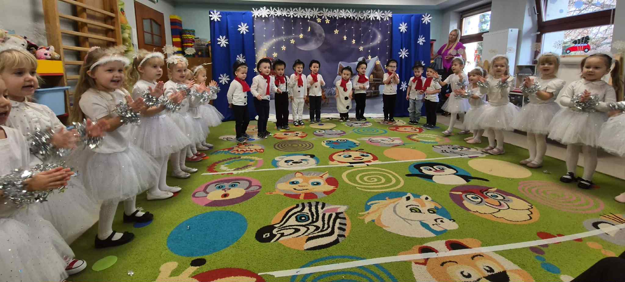 Najważniejszym celem takich wydarzeń jest integracja grupy i rodziny, nauka zwyczajów bożonarodzeniowych, kształtowanie zdolności artystycznych i twórczości dzieci, a także ukazanie atmosfery radości, wspólnoty i wzmocnienie więzi przez wspólne przeżywanie świąt. To wspaniała okazja do prezentacji umiejętności przedszkolaków, budowania ich pewności siebie i przekazywania wartości kulturowych i rodzinnych, podkreślając jednocześnie ogromną rolę tradycji, tj.: ozdabianie choinki, kolędowanie czy wręczanie prezentów. W tym tygodniu każda sala zamieniła się w cudowną, świąteczną krainę, a dzieci były wyjątkowo ubrane. Nie zabrakło recytacji wierszy, śpiewania piosenek, prezentacji układów tanecznych, czy gry na instrumentach muzycznych w świątecznej odsłonie. Tego wszystkiego dzieci uczyły się przez cały grudzień, a każda grupa zrobiła to na swój, wyjątkowy sposób. Dzięki temu, przedszkolaki poznają prawdziwą istotę świąt i rozumieją, co jest w świętach najważniejsze. Po występach odwiedził nas Mikołaj, który wręczył cudowne prezenty. Jednak to nie wszystko, bowiem w grudniu, w ramach warsztatów świątecznych, prowadzonych przez nauczycielkę p. Annę Kowalczyk, dzieci przygotowały rękodzielnicze dzwoneczki świąteczne, którymi obdarowały swoich Rodziców. Na zakończenie, życzenia złożyła wszystkim p. Dyrektor naszego przedszkola - p. Anna Kasprowicz. Bijemy brawa dla przedszkolaków za ich trud i zaangażowanie w przygotowania uroczystości, natomiast Rodzicom pięknie dziękujemy za ogromne wsparcie w ich organizacji. Dziękujemy również p. Marcie Bołdowskiej - naszej rytmiczce, która również brała udział w przygotowaniu dzieci do występów. Na uznanie zasługują również nauczycielki grup i ich pomysły, gdyż od pomysłu wszystko się zaczyna. W ten o to sposób przygotowaliśmy się do świąt i pragniemy wszystkim Rodzicom oraz Ich dzieciom złożyć serdeczne życzenia zdrowych, wesołych, ale przede wszystkim rodzinnych Świąt Bożego Narodzenia i Szczęśliwego Nowego Roku!