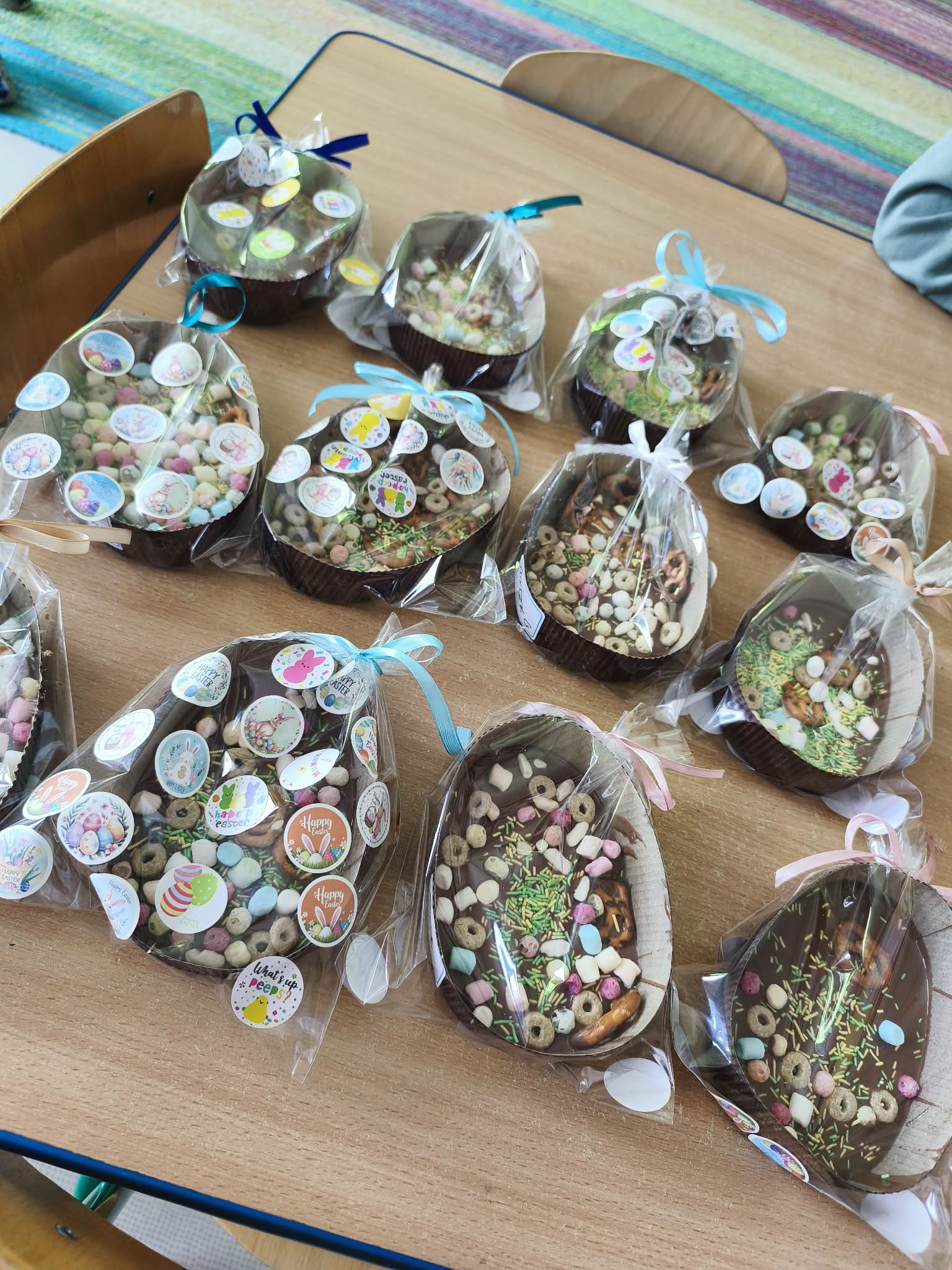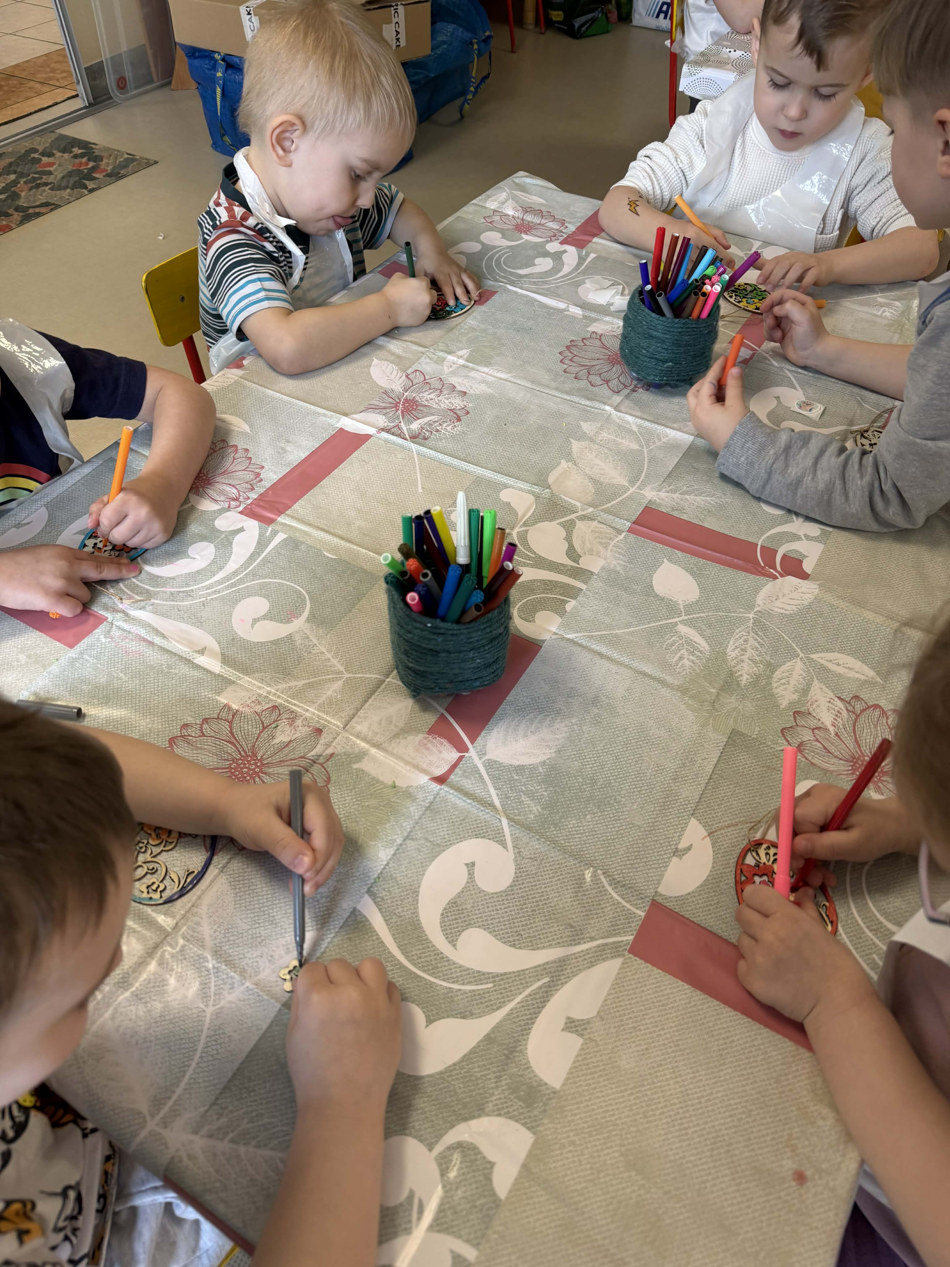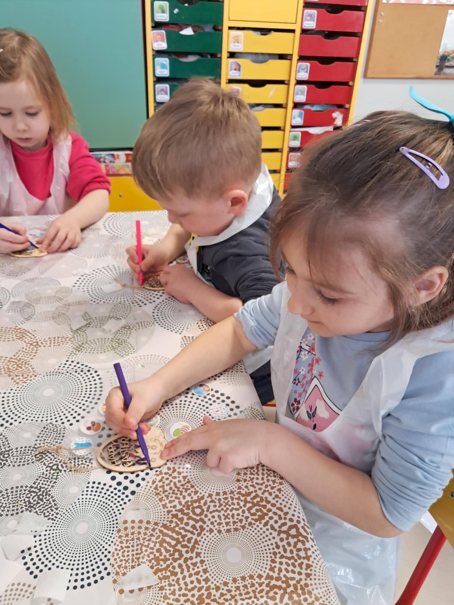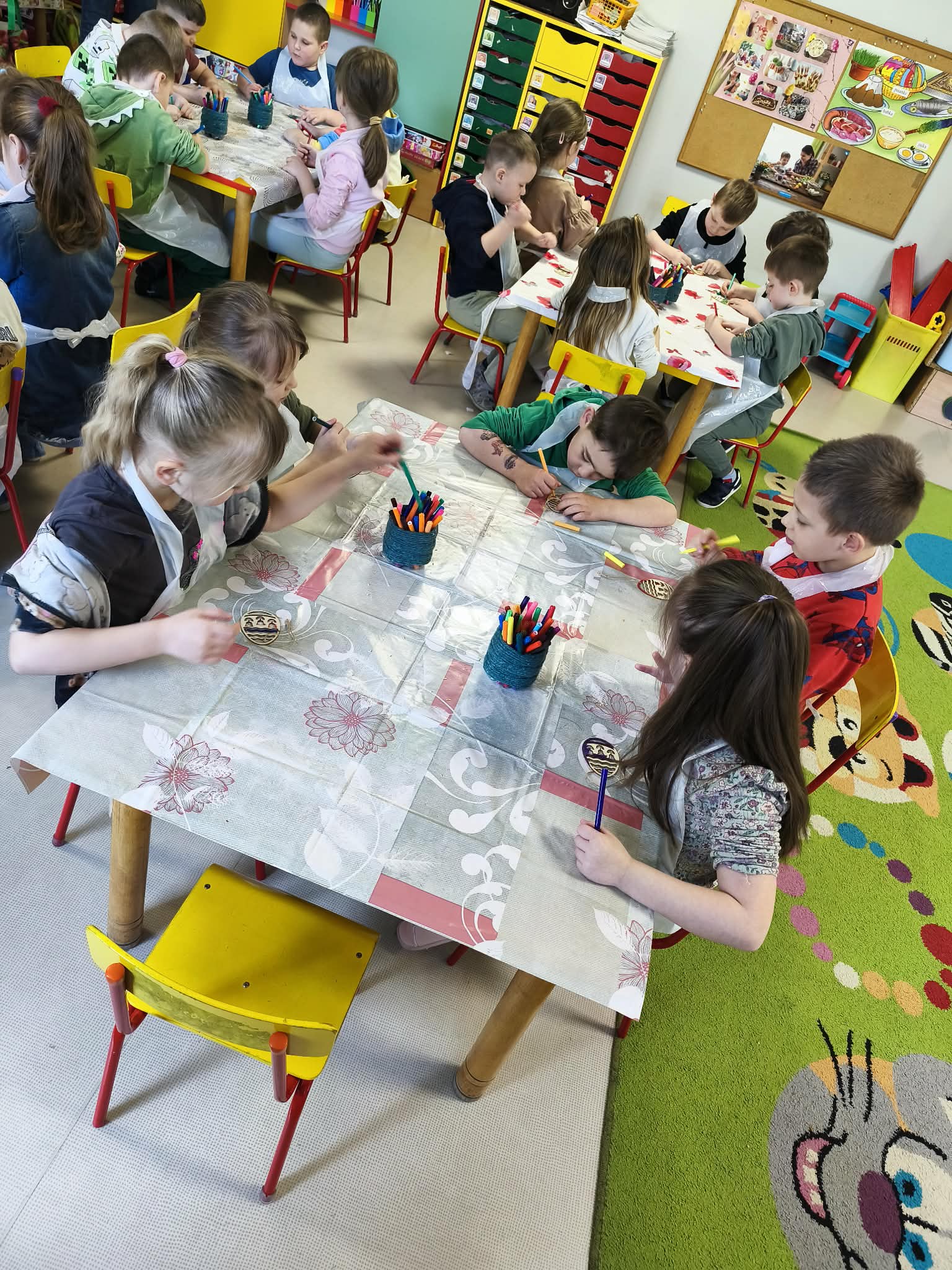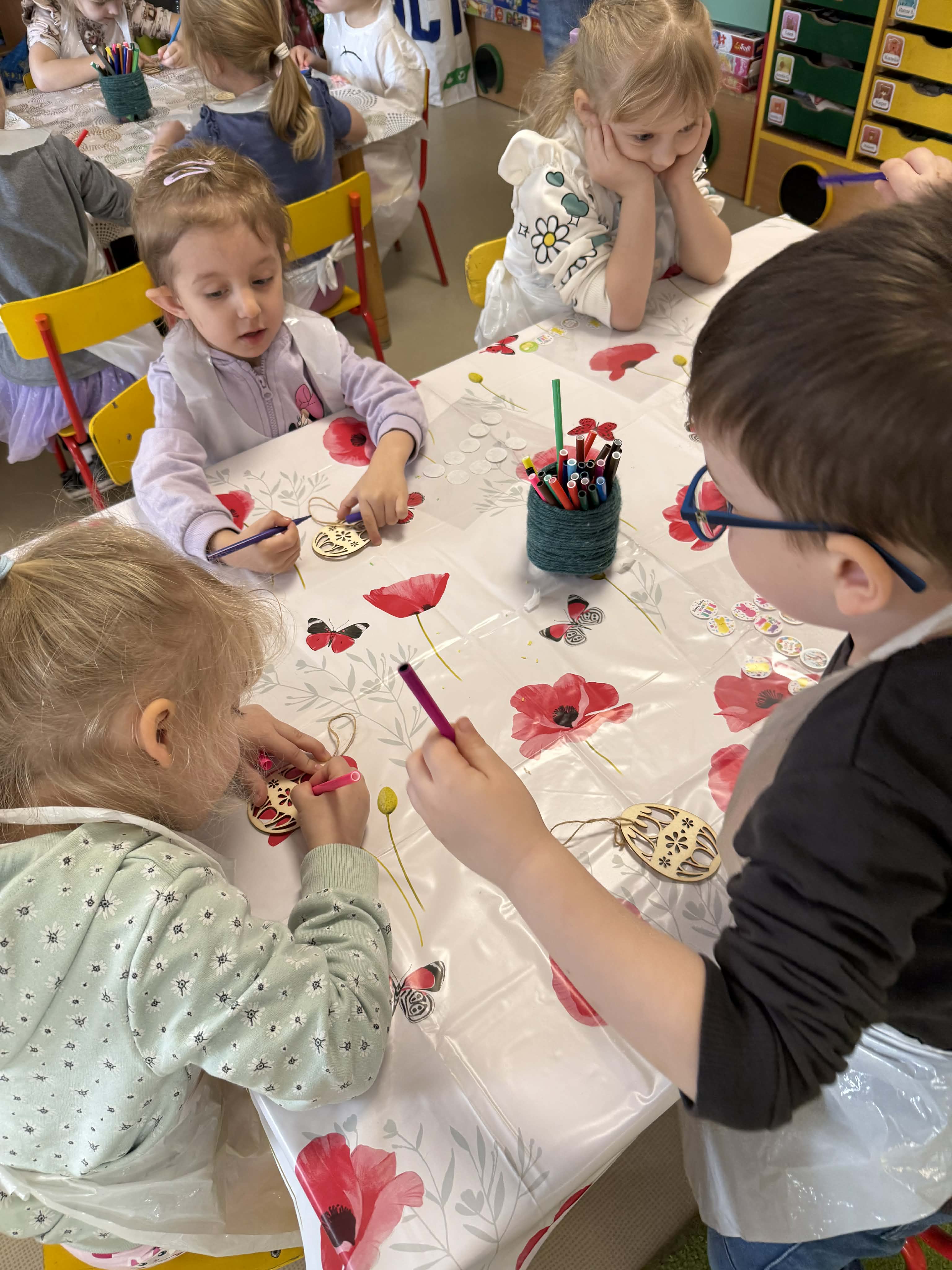 Warsztaty czekoladowe w przedszkolu okazały się niezwykłym wydarzeniem, które połączyło naukę z doskonałą zabawą. Dzieci miały okazję samodzielnie stworzyć wyjątkowe, słodkie dzieła – czekoladowe pisanki, dekorując je kolorowymi posypkami i jadalnymi ozdobami. Radość i zaangażowanie były widoczne na twarzach wszystkich uczestników, a każda pisanka była inna i wyjątkowa. Warsztaty nie tylko rozwijały zdolności manualne, ale także uczyły cierpliwości i współpracy. Każde dziecko mogło zabrać swoje czekoladowe dzieło do domu, by podzielić się nim z bliskimi. Na zakończenie przedszkolaki otrzymały także pamiątkowe, drewniane pisanki, które mogły ozdobić kolorowymi mazakami. To słodkie wydarzenie na długo pozostanie w naszej pamięci, wprowadzając nas w radosny, świąteczny nastrój.
