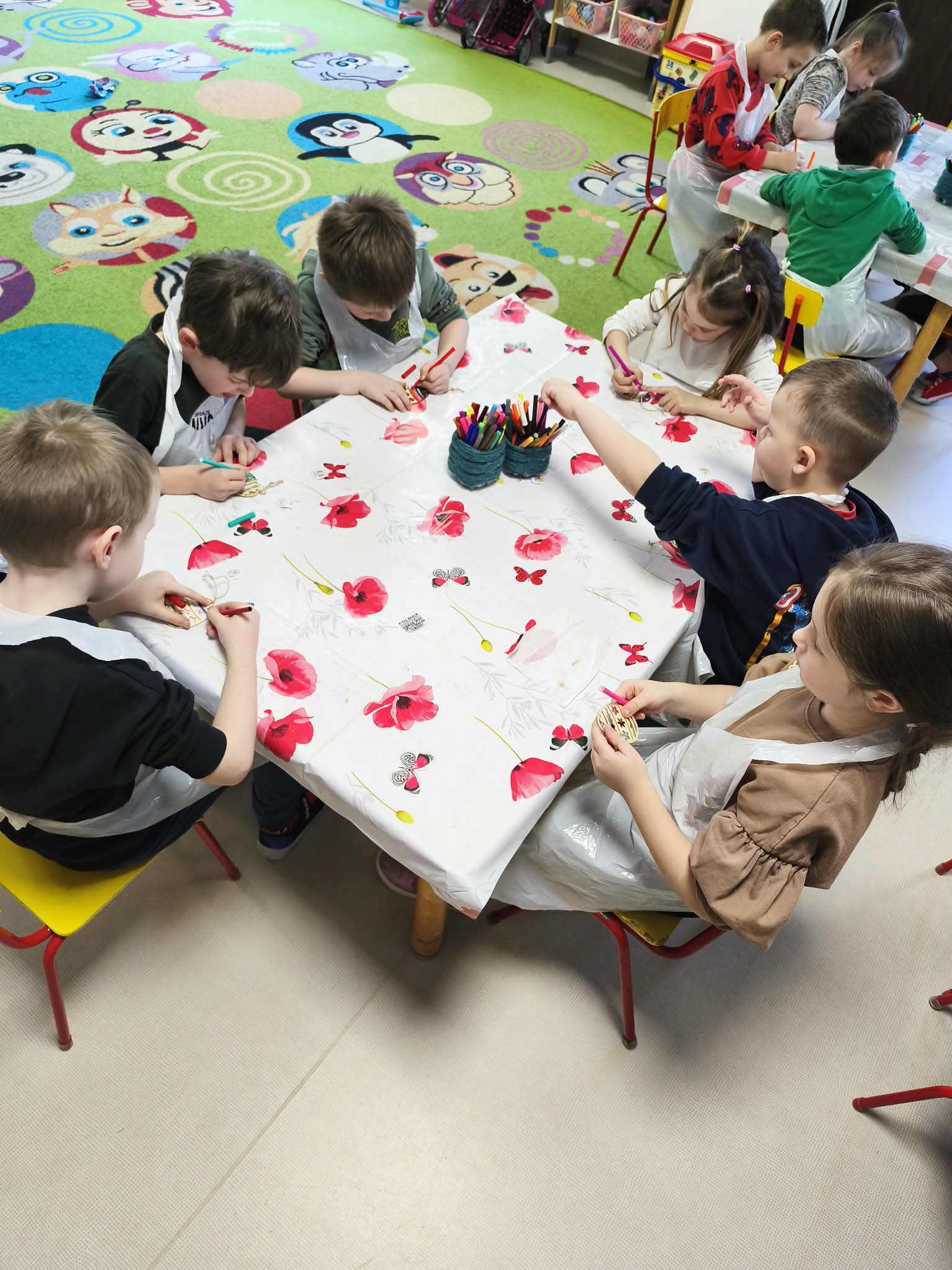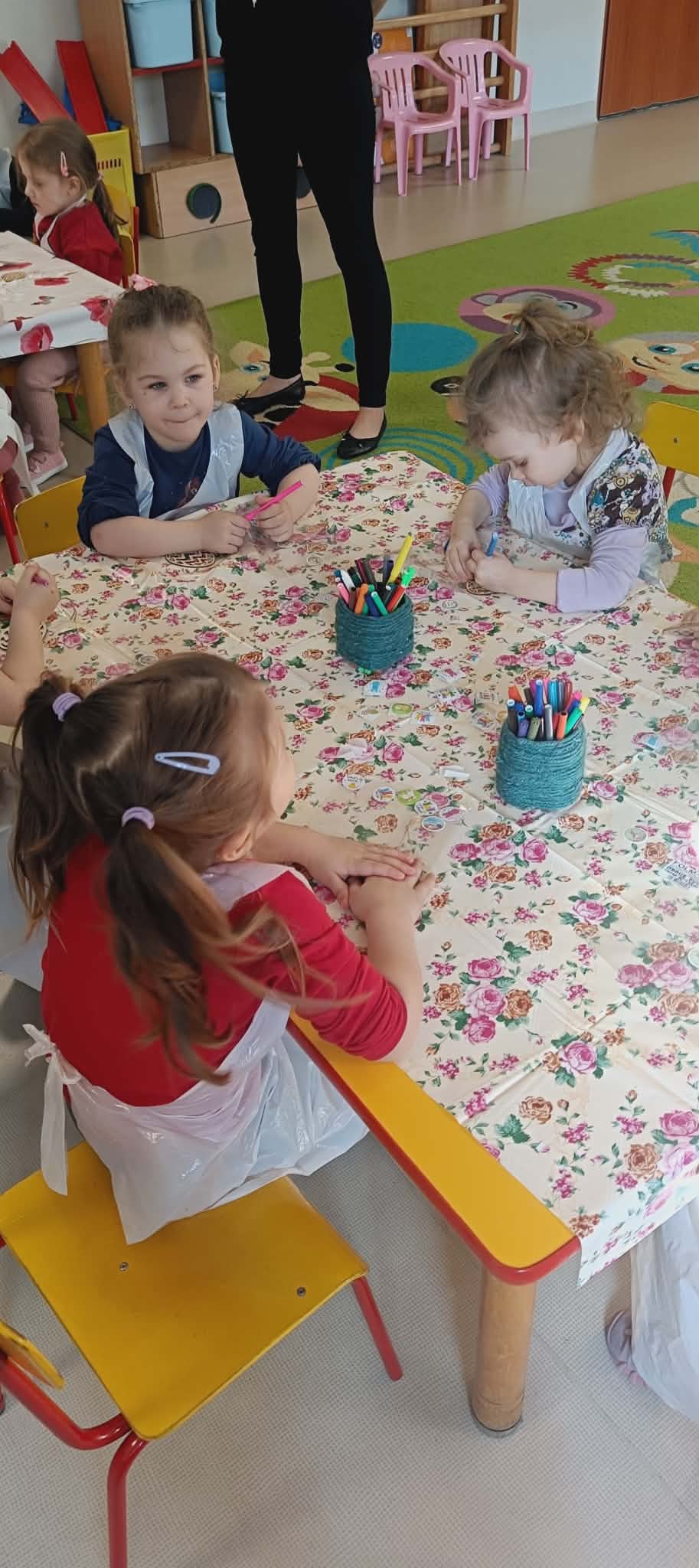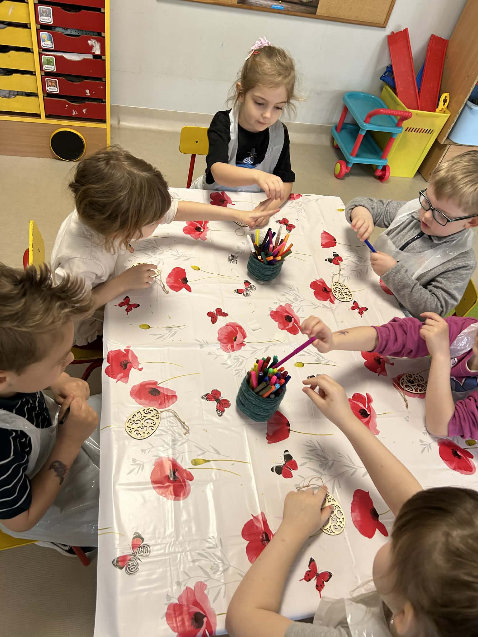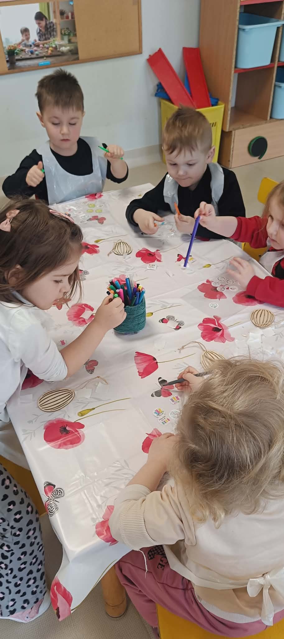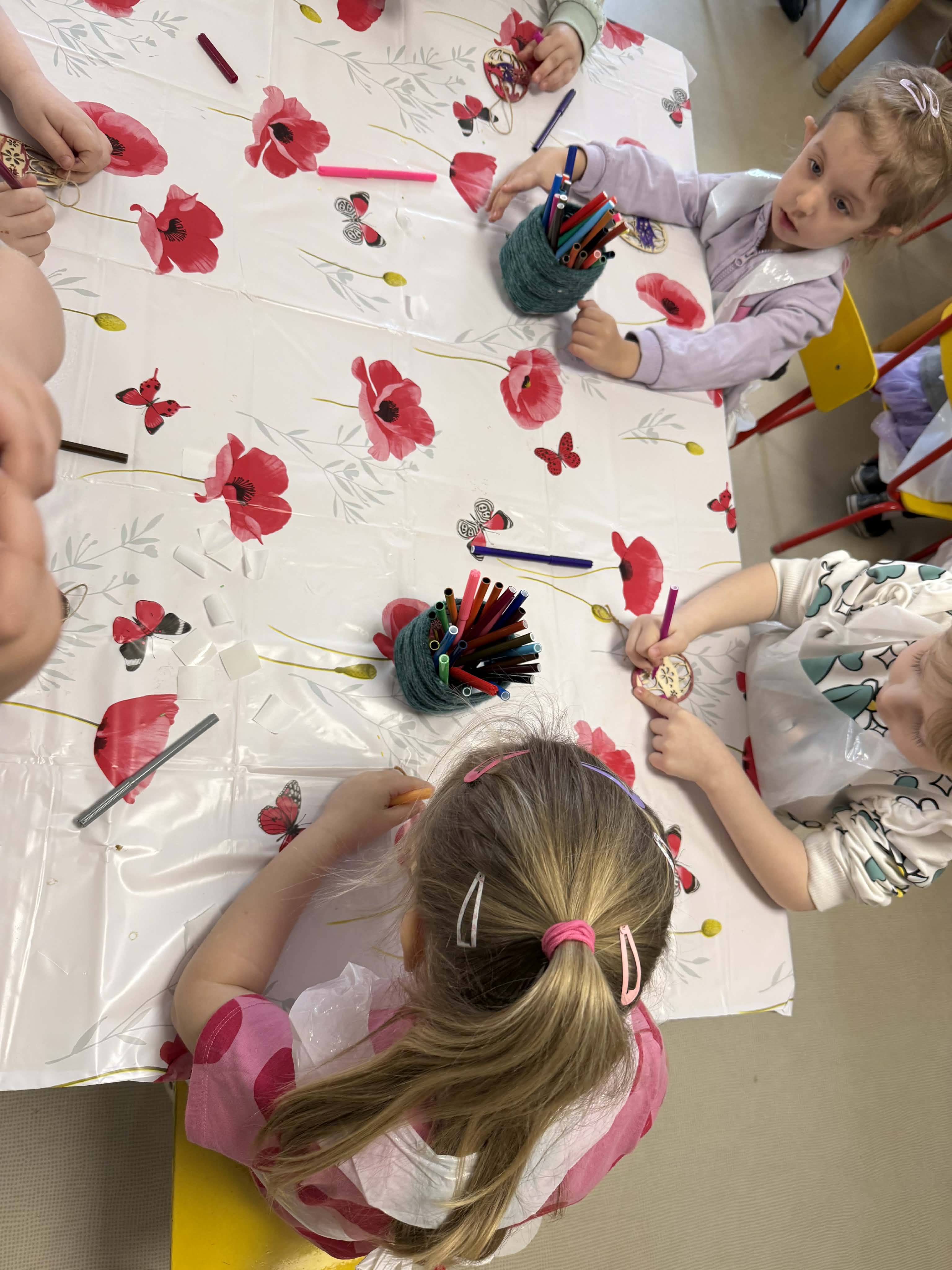 Warsztaty czekoladowe w przedszkolu okazały się niezwykłym wydarzeniem, które połączyło naukę z doskonałą zabawą. Dzieci miały okazję samodzielnie stworzyć wyjątkowe, słodkie dzieła – czekoladowe pisanki, dekorując je kolorowymi posypkami i jadalnymi ozdobami. Radość i zaangażowanie były widoczne na twarzach wszystkich uczestników, a każda pisanka była inna i wyjątkowa. Warsztaty nie tylko rozwijały zdolności manualne, ale także uczyły cierpliwości i współpracy. Każde dziecko mogło zabrać swoje czekoladowe dzieło do domu, by podzielić się nim z bliskimi. Na zakończenie przedszkolaki otrzymały także pamiątkowe, drewniane pisanki, które mogły ozdobić kolorowymi mazakami. To słodkie wydarzenie na długo pozostanie w naszej pamięci, wprowadzając nas w radosny, świąteczny nastrój.