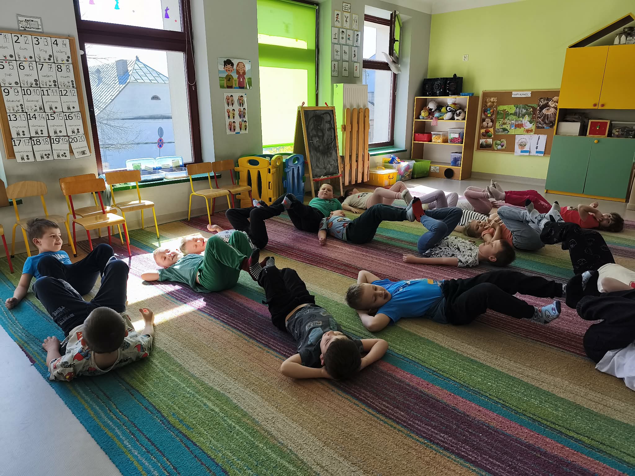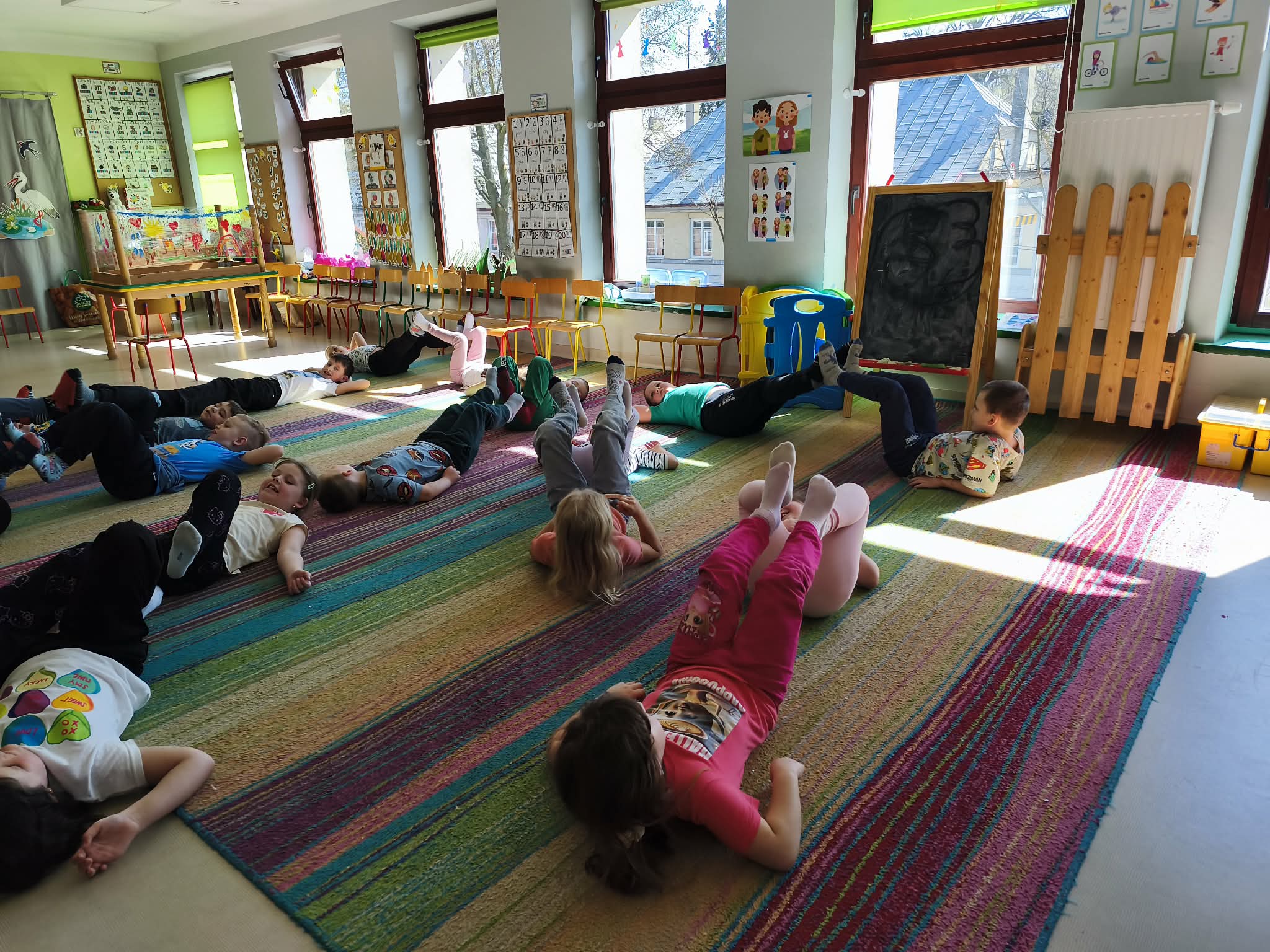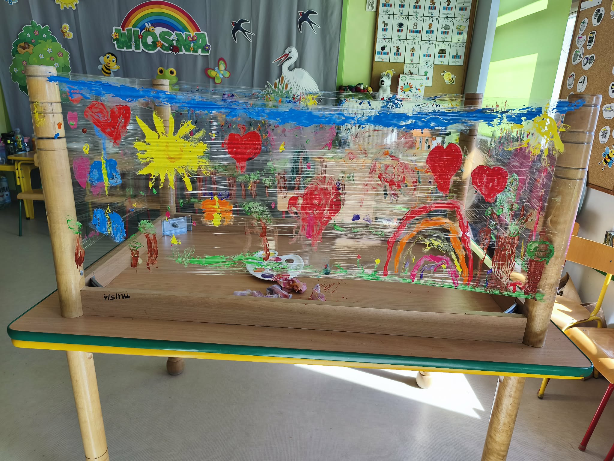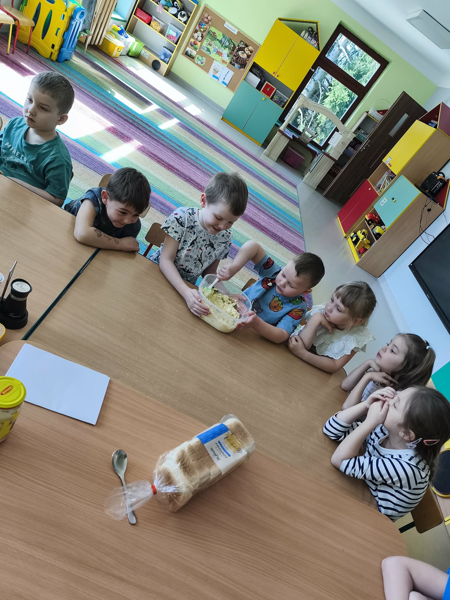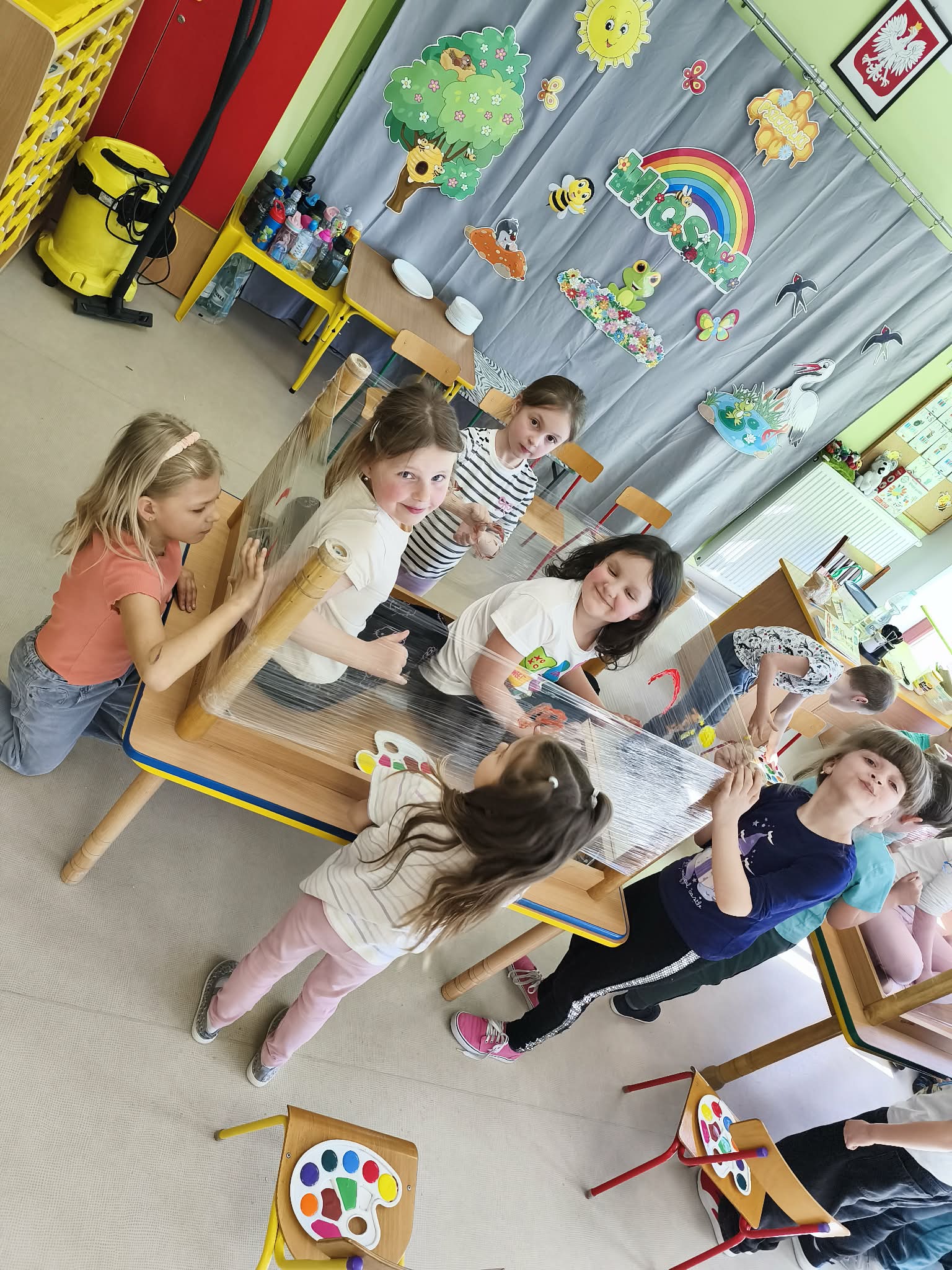 Tego dnia to "Pszczółki" poprowadziły zajęcia, a nauczycielka tylko czuwała nad ich przebiegiem. Na dzieci czekało kilka, fantastycznych aktywności, a wśród nich: wykonanie wielkanocnej pasty jajecznej zgodnie z odczytanym przepisem i jej degustacja przez chętne osoby oraz wiosenne malowanie na folii stretch z podziałem na grupy. Nie mogło zabraknąć wiosennych aktywności ruchowych, tj. jazda na rowerku w parach przy muzyce a także taniec zumby z wykorzystaniem ekranu multimedialnego. Warto podkreślić, iż najważniejszym celem dzisiejszych zajęć było zachęcenie do zdrowego stylu życia, a także pobudzanie wyobraźni. Ale nie można pominąć również tego, że dzieci ćwiczyły motorykę małą i dużą oraz uczyły się współpracować w zespole. Zajęcia bardzo podobały się "Pszczółkom", ponieważ miały one swój czynny udział i były niezwykle zaangażowane, a efektem zaproponowanych aktywności było budowanie wśród przedszkolaków poczucia sprawczości. Sprawczość to inaczej zdolność osoby do inicjowania działań, dokonywania wyborów i wywierania realnego wpływu na to, co jest. To też bardzo cenne przekonanie, że dziecko może, potrafi i ma wpływ. Warto podkreślić, iż dzieci samodzielnie przygotowały salę zarówno do zajęć kulinarnych, jak i plastycznych, a także po nich posprzątały, po czym wybrały się na przedszkolny ogród, by pobawić się swobodnie na świeżym powietrzu. Korzystając z okazji zachęcamy Rodziców do włączania swoich pociech w takie zajęcia również w środowisku domowym, ponieważ wspomniane zabawy są fantastycznym sposobem na spędzanie czasu wolnego, a przy okazji mają wiele walorów edukacyjnych.