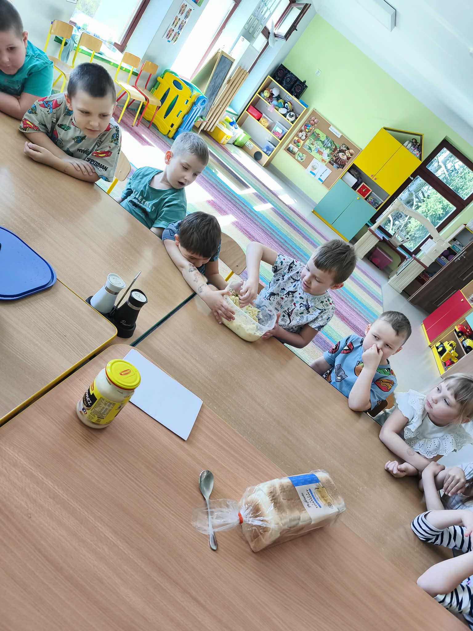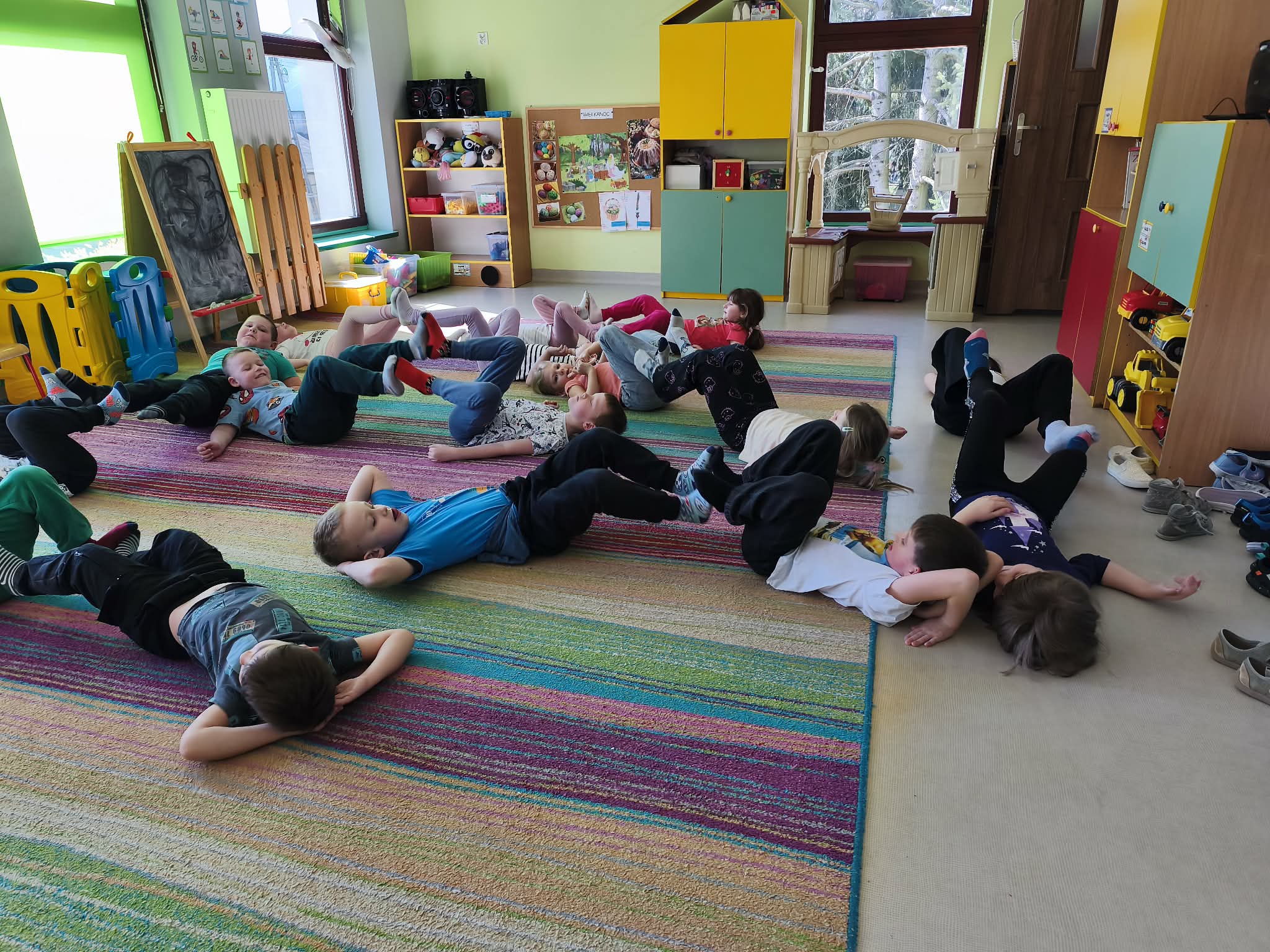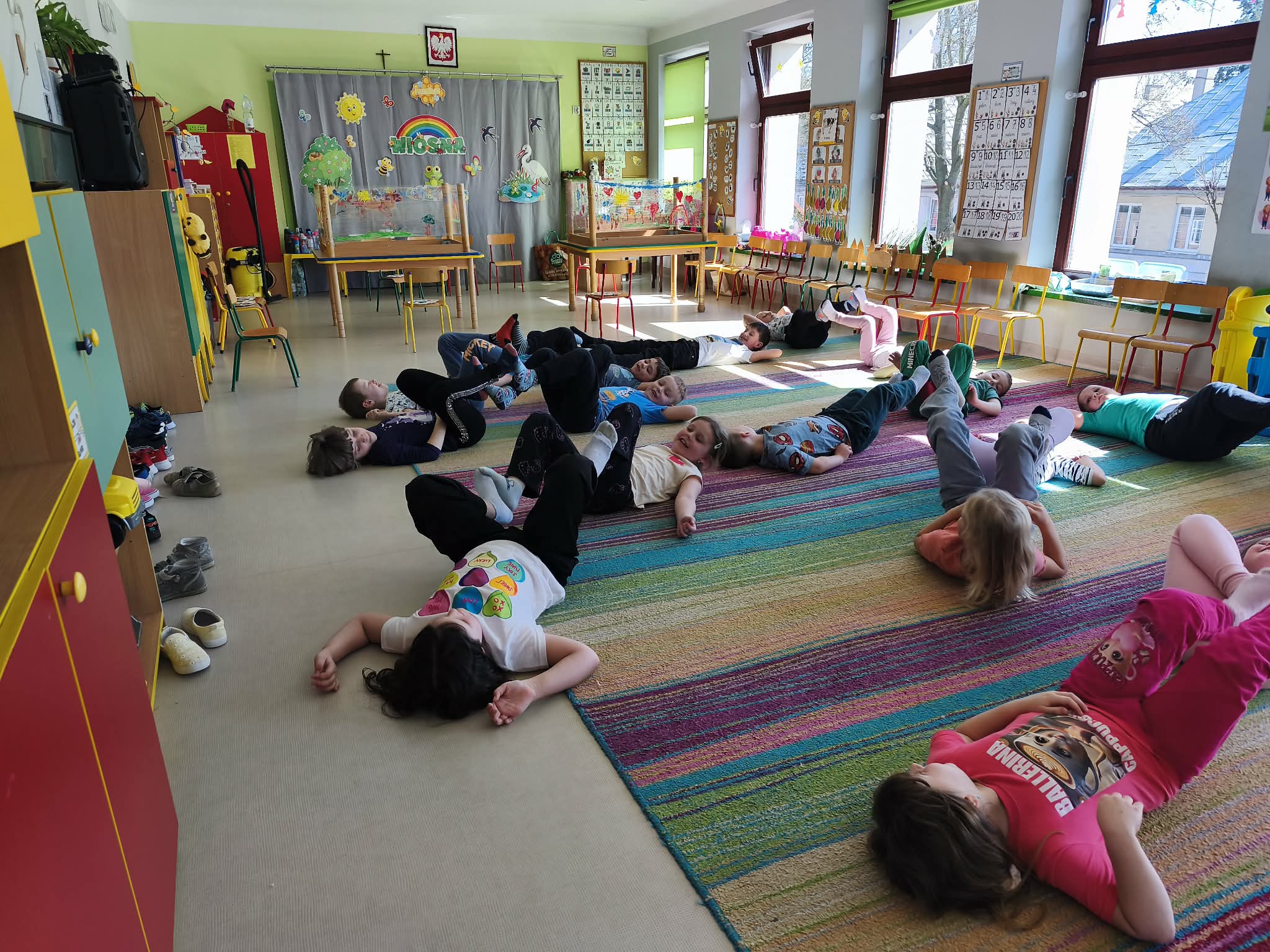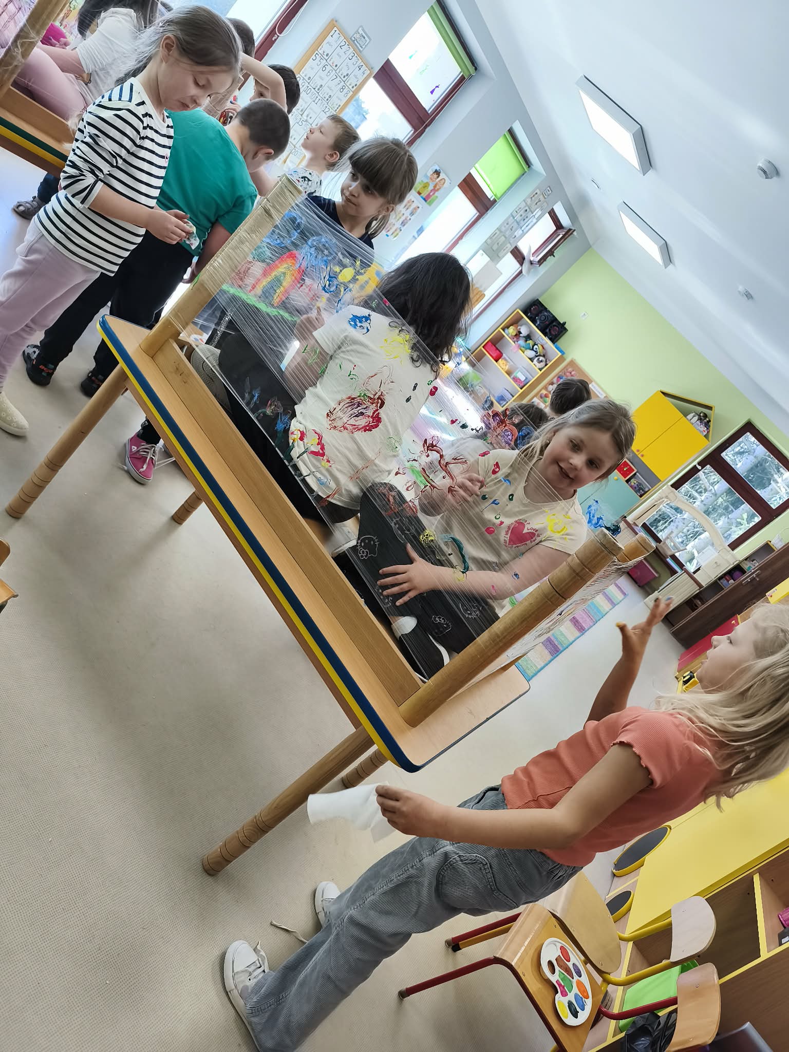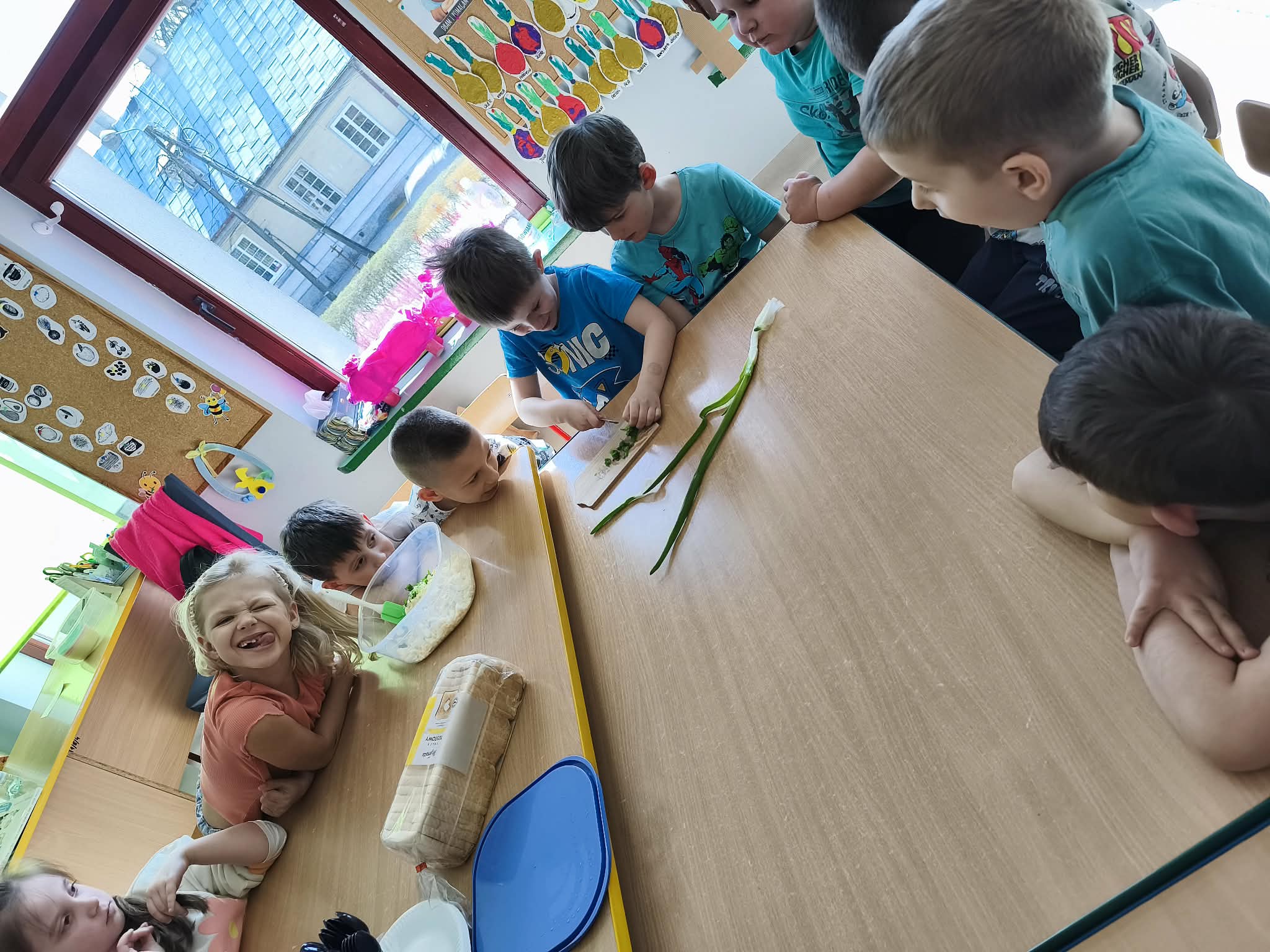 Tego dnia to "Pszczółki" poprowadziły zajęcia, a nauczycielka tylko czuwała nad ich przebiegiem. Na dzieci czekało kilka, fantastycznych aktywności, a wśród nich: wykonanie wielkanocnej pasty jajecznej zgodnie z odczytanym przepisem i jej degustacja przez chętne osoby oraz wiosenne malowanie na folii stretch z podziałem na grupy. Nie mogło zabraknąć wiosennych aktywności ruchowych, tj. jazda na rowerku w parach przy muzyce a także taniec zumby z wykorzystaniem ekranu multimedialnego. Warto podkreślić, iż najważniejszym celem dzisiejszych zajęć było zachęcenie do zdrowego stylu życia, a także pobudzanie wyobraźni. Ale nie można pominąć również tego, że dzieci ćwiczyły motorykę małą i dużą oraz uczyły się współpracować w zespole. Zajęcia bardzo podobały się "Pszczółkom", ponieważ miały one swój czynny udział i były niezwykle zaangażowane, a efektem zaproponowanych aktywności było budowanie wśród przedszkolaków poczucia sprawczości. Sprawczość to inaczej zdolność osoby do inicjowania działań, dokonywania wyborów i wywierania realnego wpływu na to, co jest. To też bardzo cenne przekonanie, że dziecko może, potrafi i ma wpływ. Warto podkreślić, iż dzieci samodzielnie przygotowały salę zarówno do zajęć kulinarnych, jak i plastycznych, a także po nich posprzątały, po czym wybrały się na przedszkolny ogród, by pobawić się swobodnie na świeżym powietrzu. Korzystając z okazji zachęcamy Rodziców do włączania swoich pociech w takie zajęcia również w środowisku domowym, ponieważ wspomniane zabawy są fantastycznym sposobem na spędzanie czasu wolnego, a przy okazji mają wiele walorów edukacyjnych.