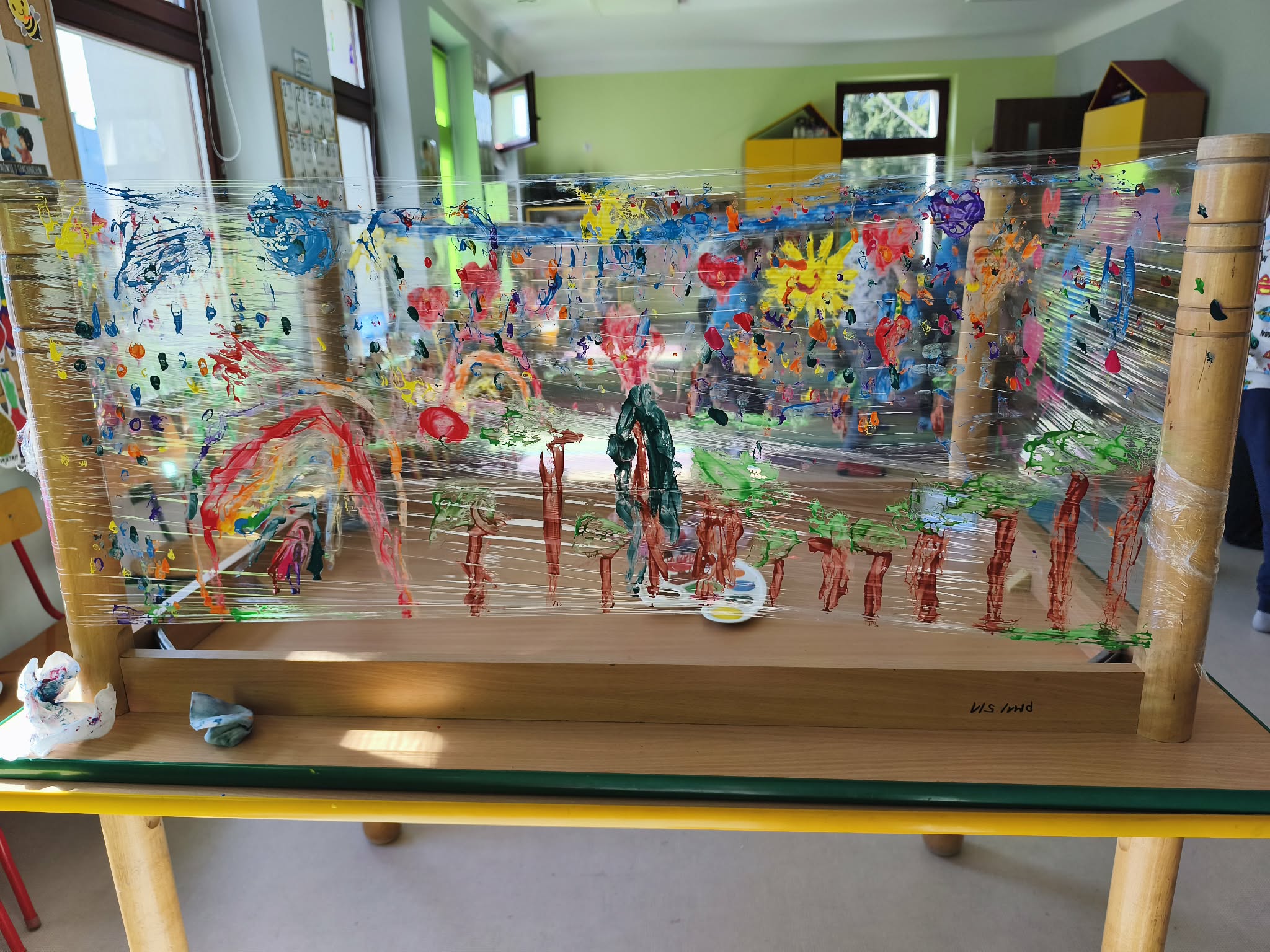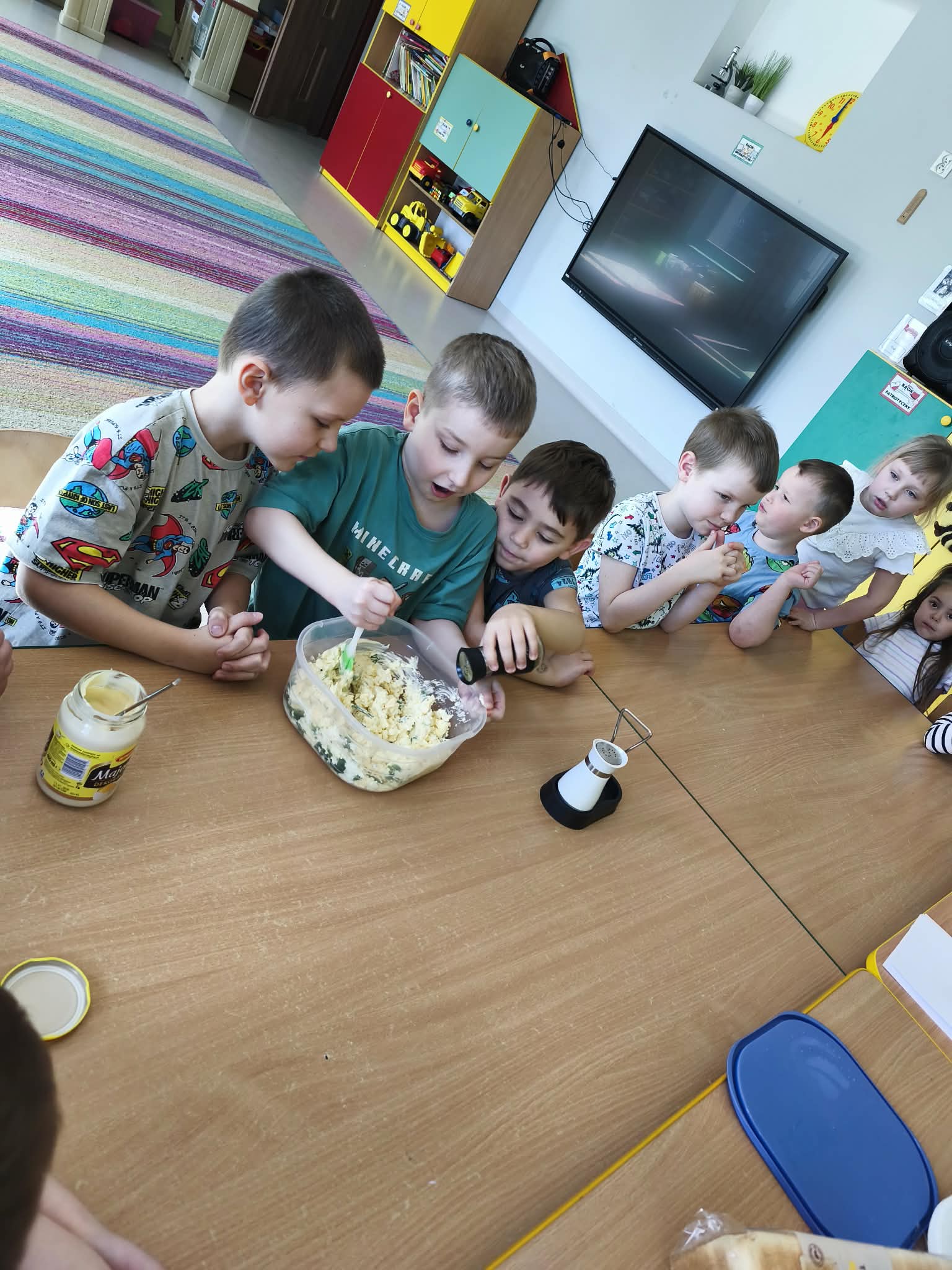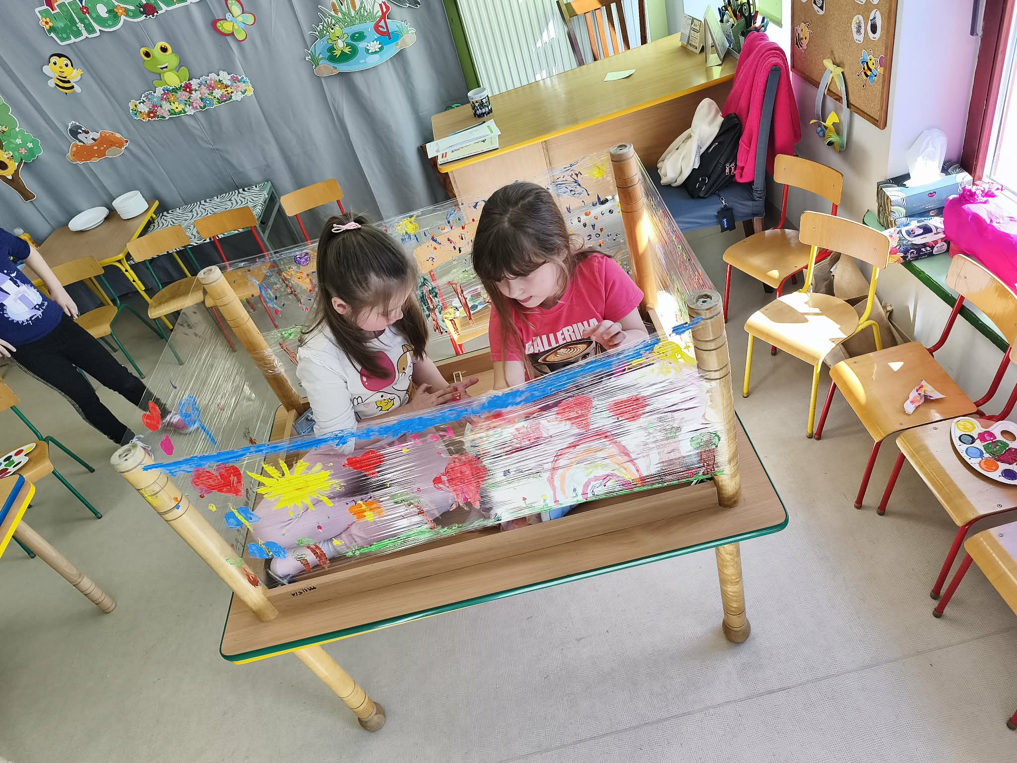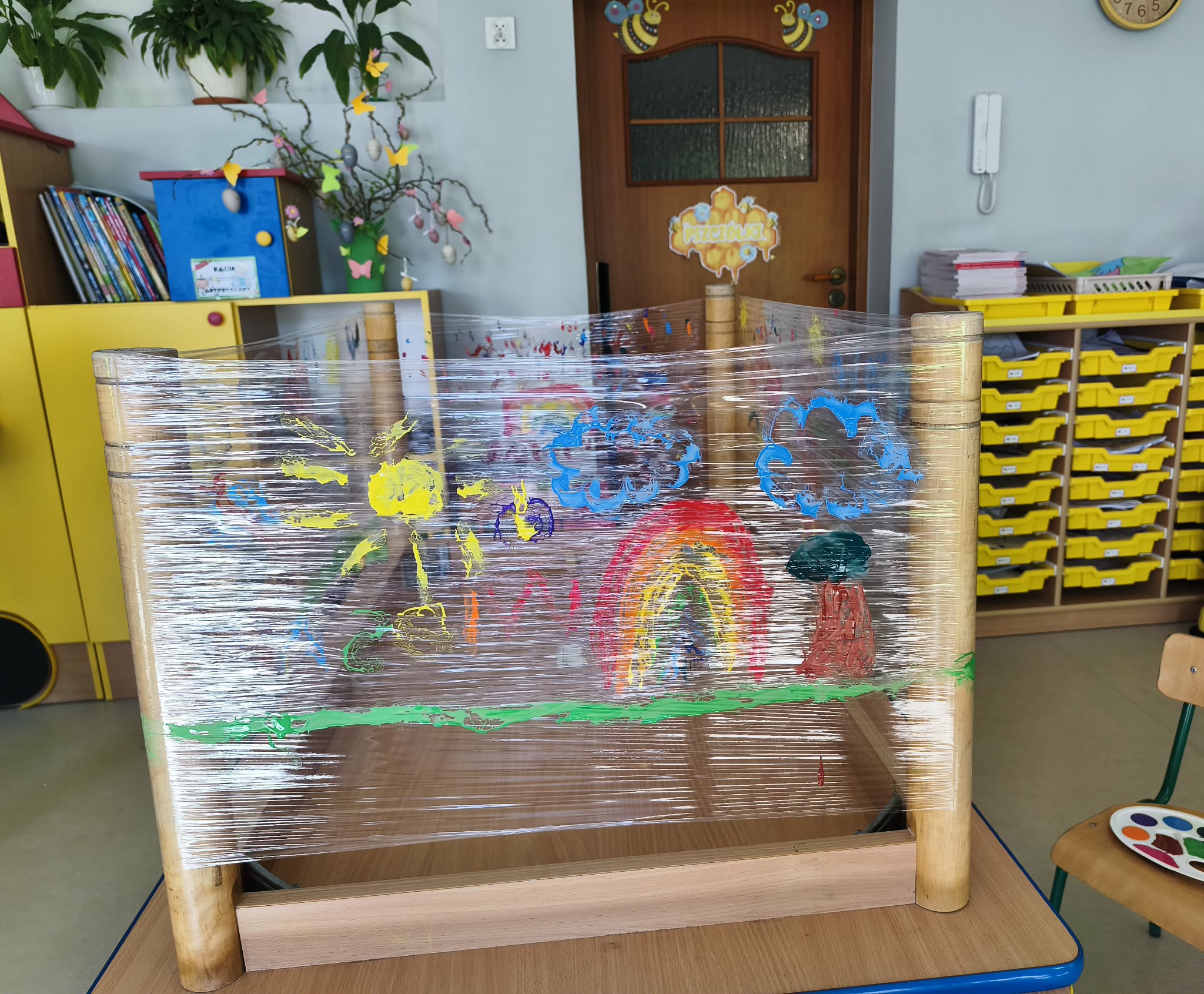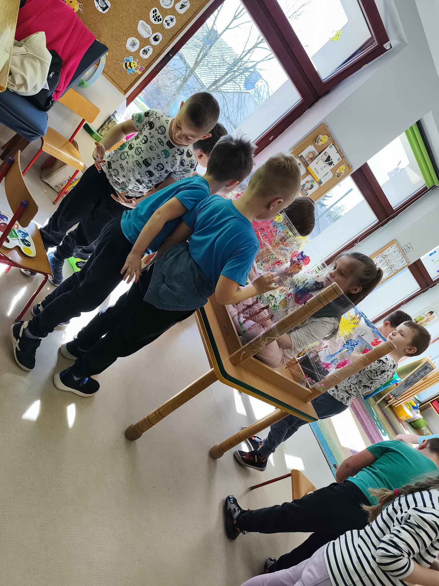Tego dnia to "Pszczółki" poprowadziły zajęcia, a nauczycielka tylko czuwała nad ich przebiegiem. Na dzieci czekało kilka, fantastycznych aktywności, a wśród nich: wykonanie wielkanocnej pasty jajecznej zgodnie z odczytanym przepisem i jej degustacja przez chętne osoby oraz wiosenne malowanie na folii stretch z podziałem na grupy. Nie mogło zabraknąć wiosennych aktywności ruchowych, tj. jazda na rowerku w parach przy muzyce a także taniec zumby z wykorzystaniem ekranu multimedialnego. Warto podkreślić, iż najważniejszym celem dzisiejszych zajęć było zachęcenie do zdrowego stylu życia, a także pobudzanie wyobraźni. Ale nie można pominąć również tego, że dzieci ćwiczyły motorykę małą i dużą oraz uczyły się współpracować w zespole. Zajęcia bardzo podobały się "Pszczółkom", ponieważ miały one swój czynny udział i były niezwykle zaangażowane, a efektem zaproponowanych aktywności było budowanie wśród przedszkolaków poczucia sprawczości. Sprawczość to inaczej zdolność osoby do inicjowania działań, dokonywania wyborów i wywierania realnego wpływu na to, co jest. To też bardzo cenne przekonanie, że dziecko może, potrafi i ma wpływ. Warto podkreślić, iż dzieci samodzielnie przygotowały salę zarówno do zajęć kulinarnych, jak i plastycznych, a także po nich posprzątały, po czym wybrały się na przedszkolny ogród, by pobawić się swobodnie na świeżym powietrzu. Korzystając z okazji zachęcamy Rodziców do włączania swoich pociech w takie zajęcia również w środowisku domowym, ponieważ wspomniane zabawy są fantastycznym sposobem na spędzanie czasu wolnego, a przy okazji mają wiele walorów edukacyjnych.