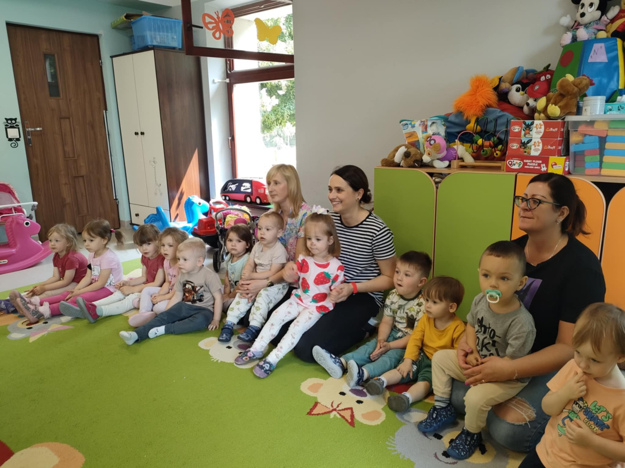 Wspólne zajęcia były niespodzianką dla obu grup, a głównym ich celem była integracja dzieci, zorganizowanie czasu maluszkom w bardzo atrakcyjny sposób oraz kształtowanie u starszaków umiejętności pomagania młodszym i słabszym. Na początku dzieci brały udział w znanych i lubianych zabawach muzyczno-ruchowych, dostosowanych do wieku maluszków. W ten sposób starsze dzieci miały okazję zobaczyć, jak wyglądają codzienne zajęcia u "Niedźwiadków". Następnie nauczyliśmy się od siebie piosenek grupowych: "Ja jestem Niedźwiadek" oraz "Taniec Mai". Obie grupy poradziły sobie doskonale! Dzieci z grupy "Pszczółek" zaprezentowały młodszym rówieśnikom swoje układy taneczne: "Chocolate", "Makarena" oraz zaśpiewały fantastyczną piosenkę Zozi "Na zakończenie". Nie mogło obyć się bez wspólnej zabawy tanecznej, połączonej z puszczaniem baniek mydlanych. W międzyczasie wybrane dzieci starsze częstowały wszystkich chrupkami kukurydzianymi oraz małymi słodkościami. Całe spotkanie było fantastyczną formą spędzenia czasu wolnego a przy okazji dużo nas nauczyło. Zarówno "Niedźwiadki", jak i "Pszczółki" świetnie się bawiły oraz miło i aktywnie spędziły czas. Na zakończenie niedźwiadkowo-pszczółkowych zajęć wykonaliśmy wspólne zdjęcie pamiątkowe! Zabawy zorganizowała i poprowadziła nauczycielka grupy "Pszczółek" - Justyna Skonieczka przy wsparciu pań z Klubu Dziecięcego.