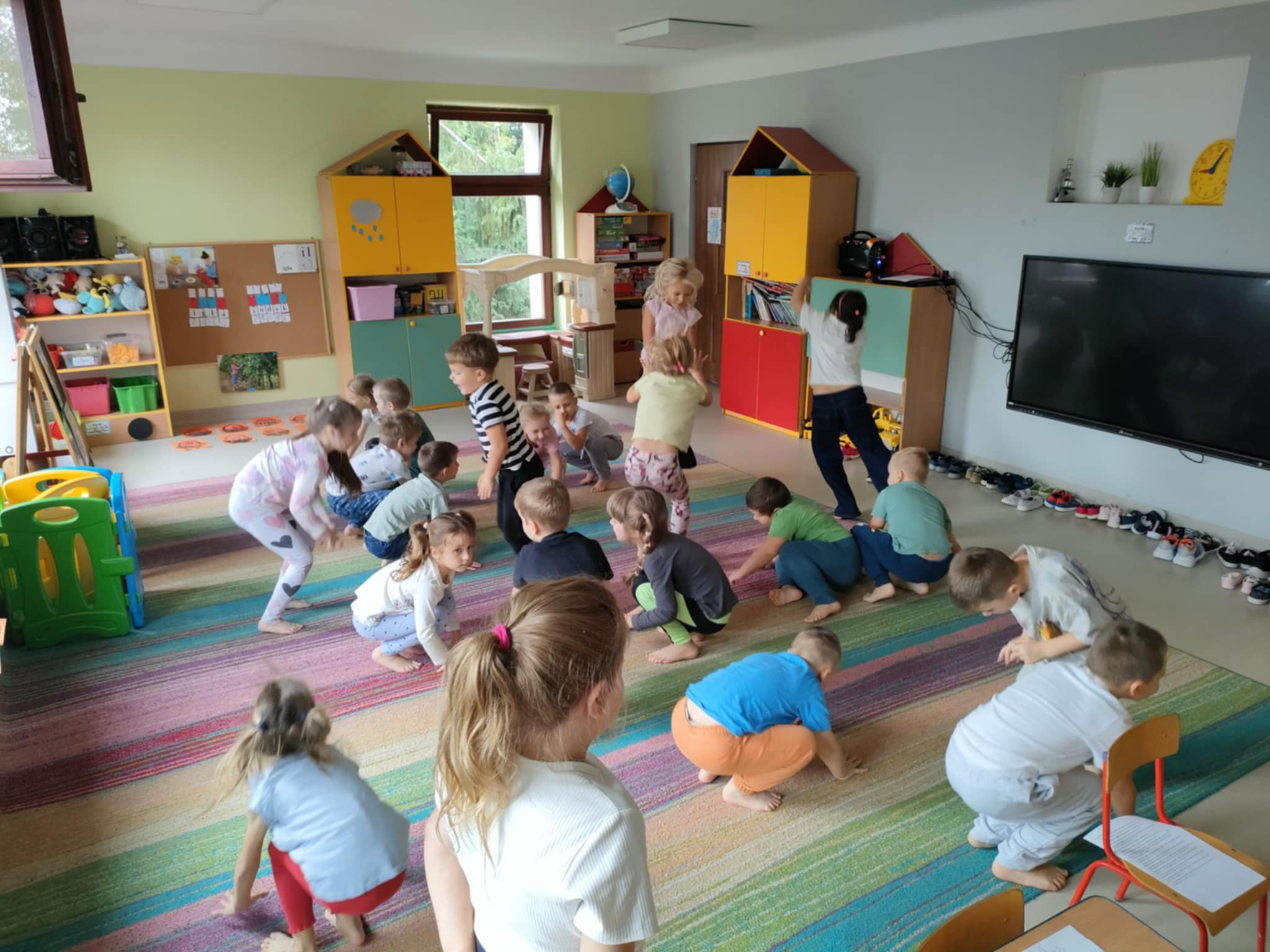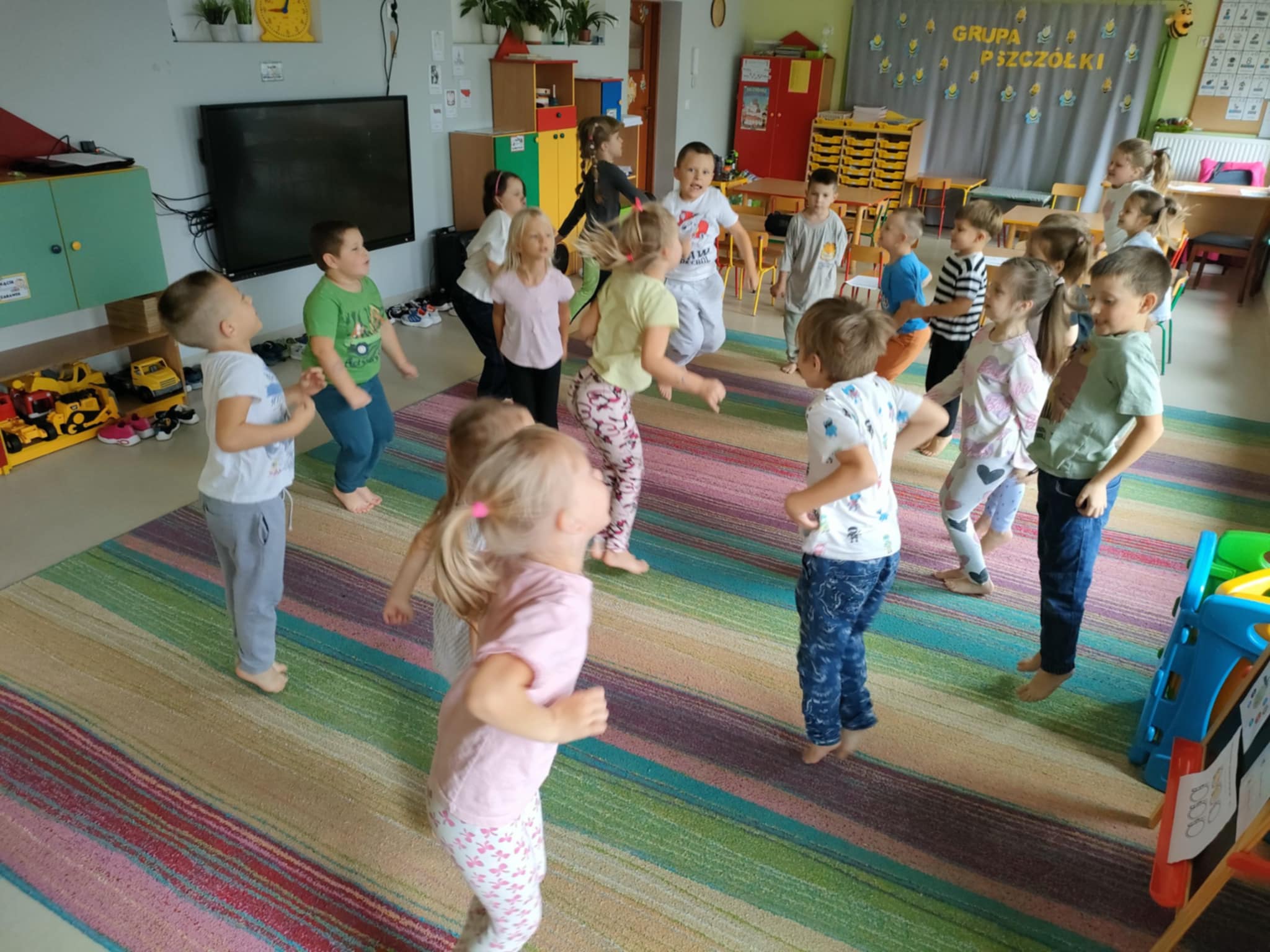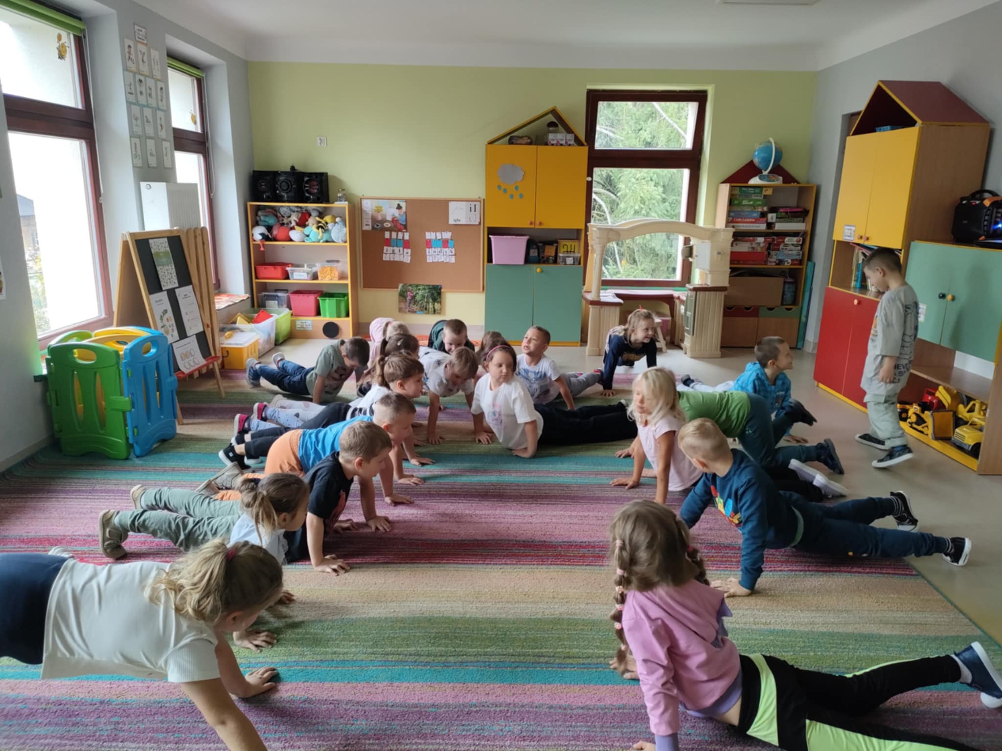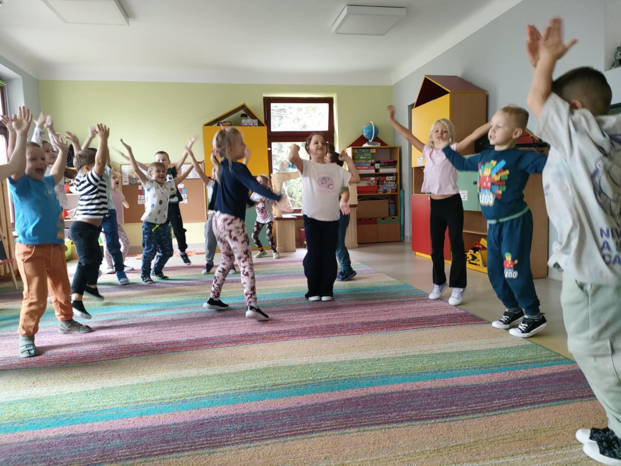 Zdrojek to bohater wspomnianego programu, dzieci go dobrze znają i po wodę często sięgają. Podczas zajęć "Pszczółki" rozwiązywały wodne zagadki słuchowe. Przy udzieleniu poprawnej odpowiedzi, wcielały się w rolę Zdrojka i wymyślały dla rówieśników ciekawe ćwiczenia na dywanie. Po wspólnych zabawach ruchowych, starszaki przystąpiły do pracy stolikowej i zgodnie z losowaniem, wypełniały szablon kropelki daną techniką: wyklejanie kuleczkami z plasteliny bądź bibuły lub wydzieranką z kolorowego papieru. W ten sposób rozwijaliśmy motorykę dużą i małą, a po zajęciach wraz ze Zdrojkiem poczęstowaliśmy się wodą. Takie zajęcia bardzo integrują i angażują przedszkolaki i są świetnym sposobem na naukę w ruchu.