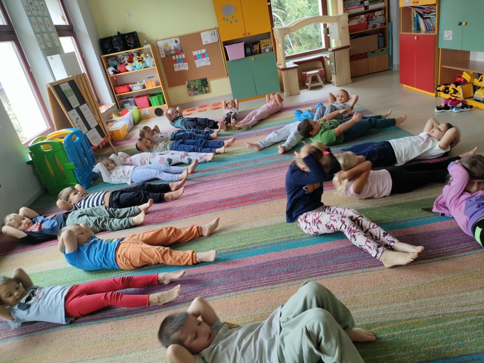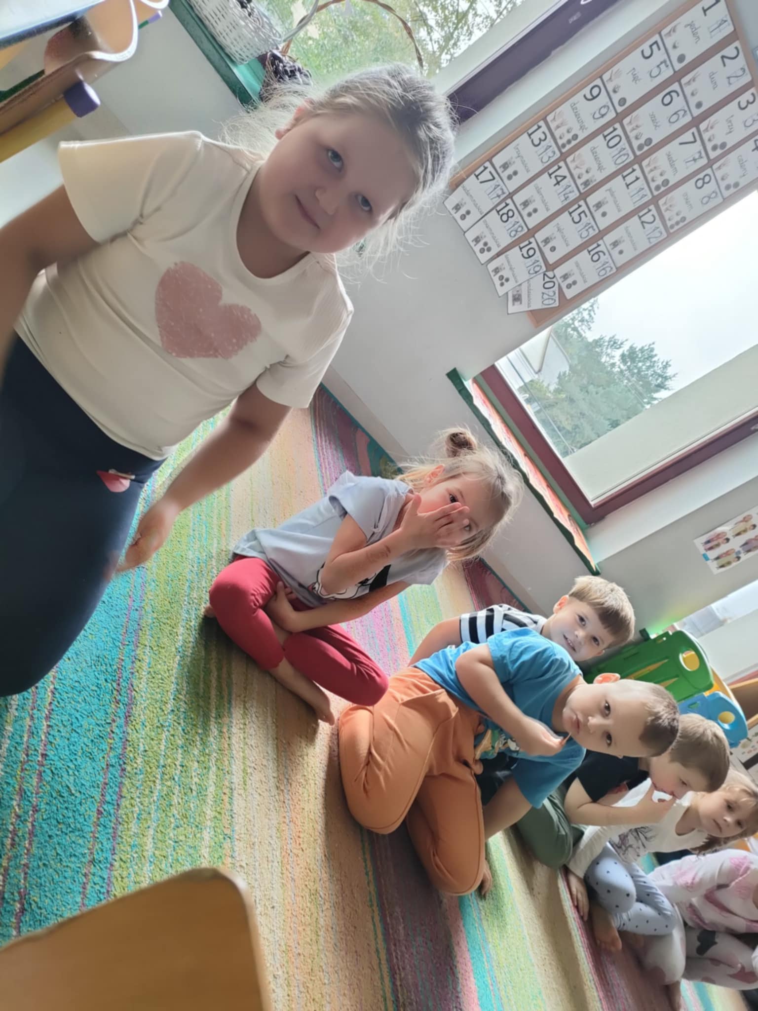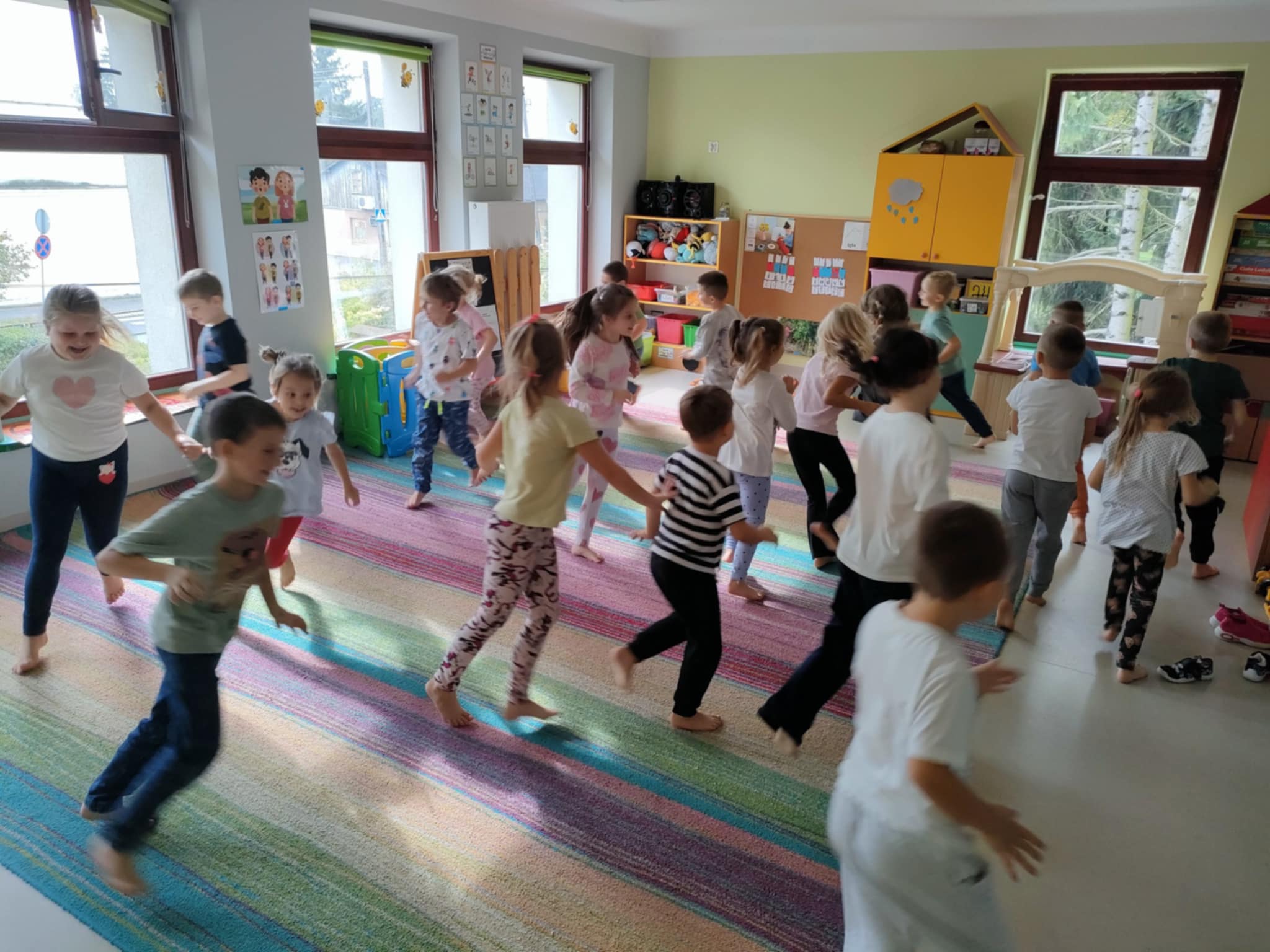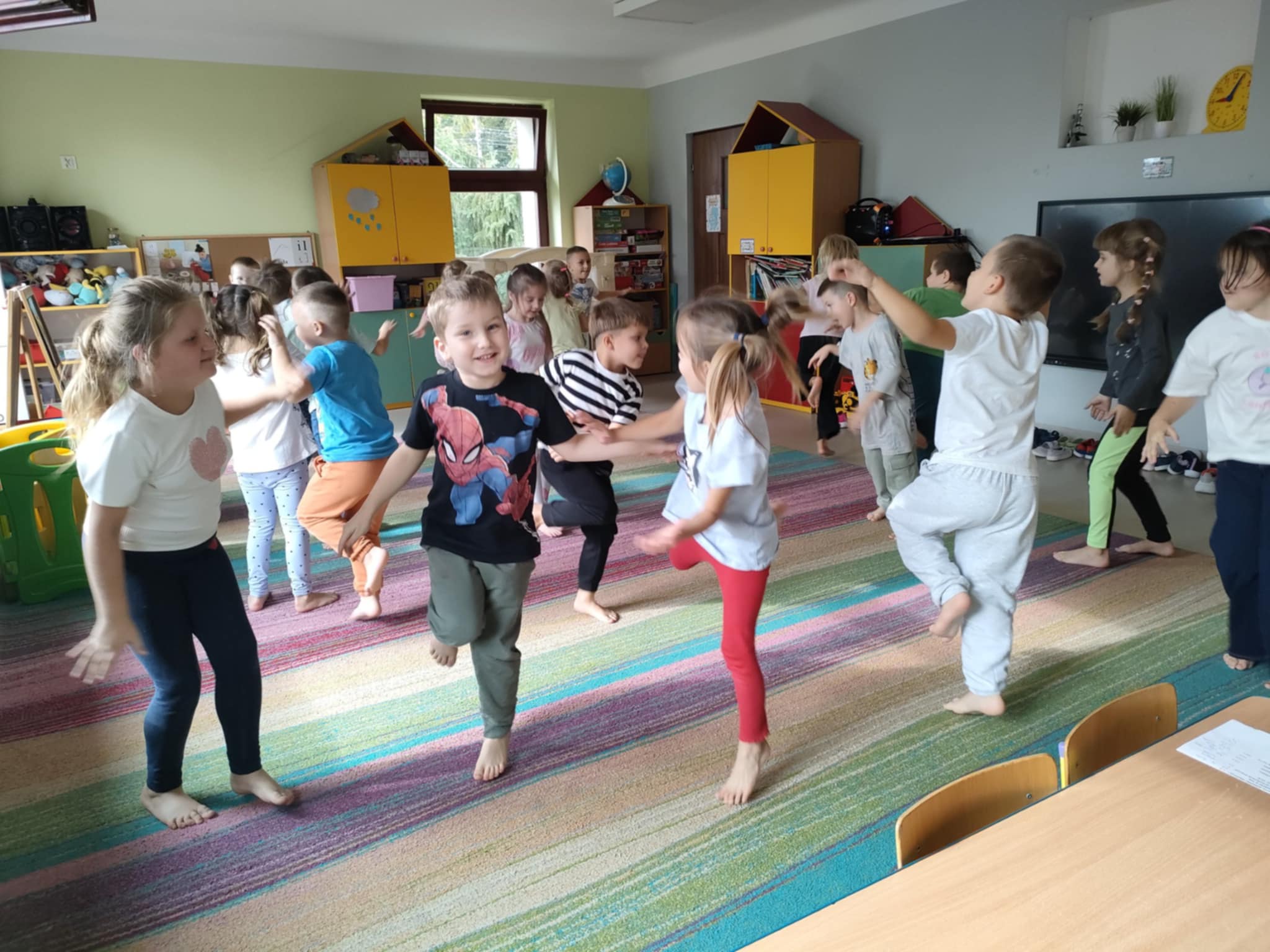 Zdrojek to bohater wspomnianego programu, dzieci go dobrze znają i po wodę często sięgają. Podczas zajęć "Pszczółki" rozwiązywały wodne zagadki słuchowe. Przy udzieleniu poprawnej odpowiedzi, wcielały się w rolę Zdrojka i wymyślały dla rówieśników ciekawe ćwiczenia na dywanie. Po wspólnych zabawach ruchowych, starszaki przystąpiły do pracy stolikowej i zgodnie z losowaniem, wypełniały szablon kropelki daną techniką: wyklejanie kuleczkami z plasteliny bądź bibuły lub wydzieranką z kolorowego papieru. W ten sposób rozwijaliśmy motorykę dużą i małą, a po zajęciach wraz ze Zdrojkiem poczęstowaliśmy się wodą. Takie zajęcia bardzo integrują i angażują przedszkolaki i są świetnym sposobem na naukę w ruchu.
