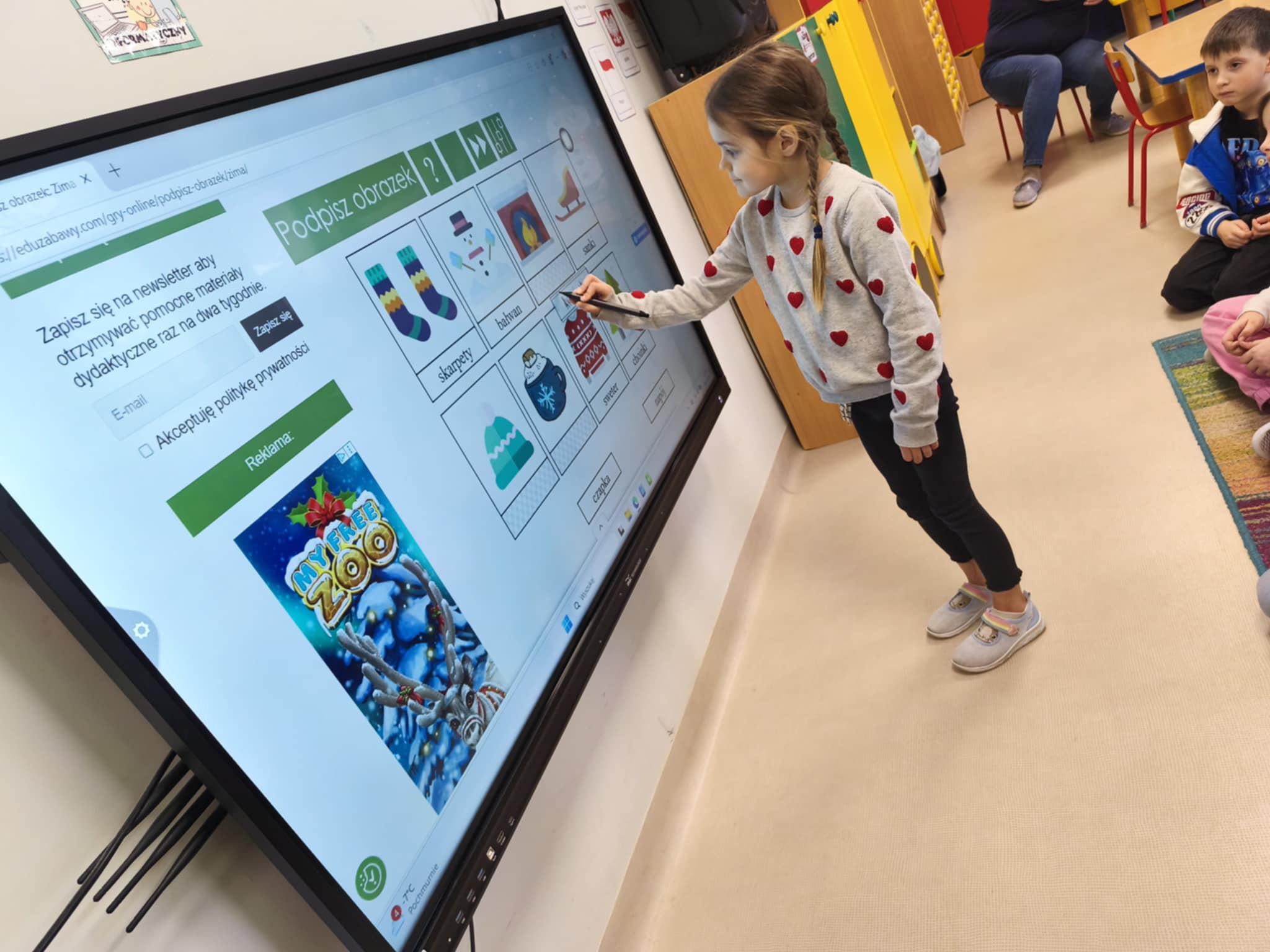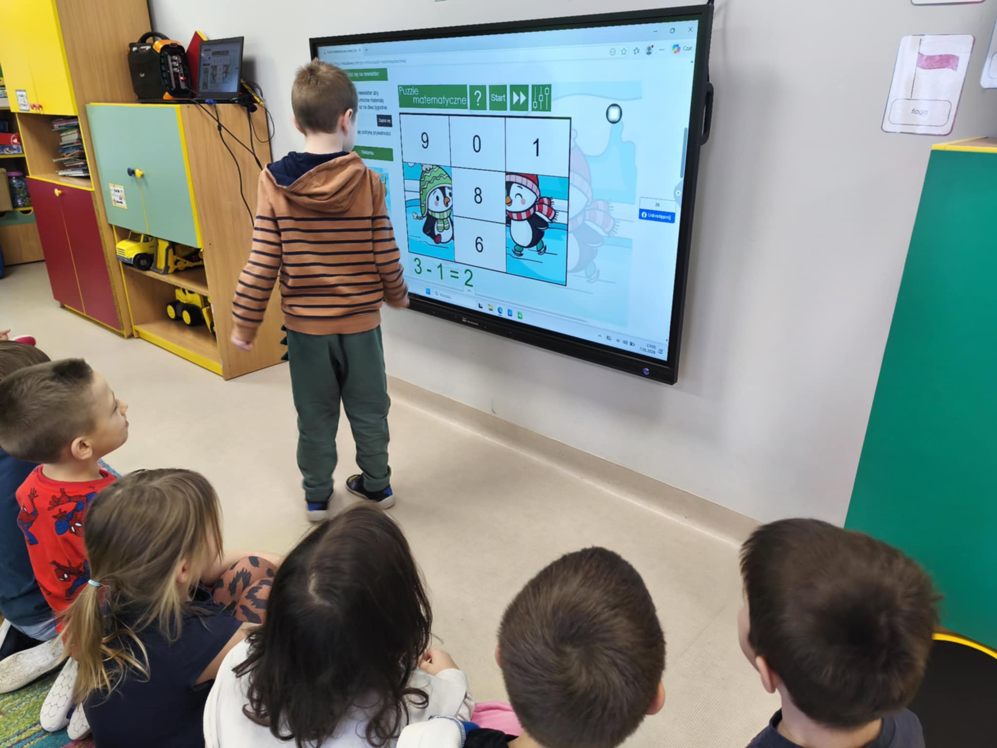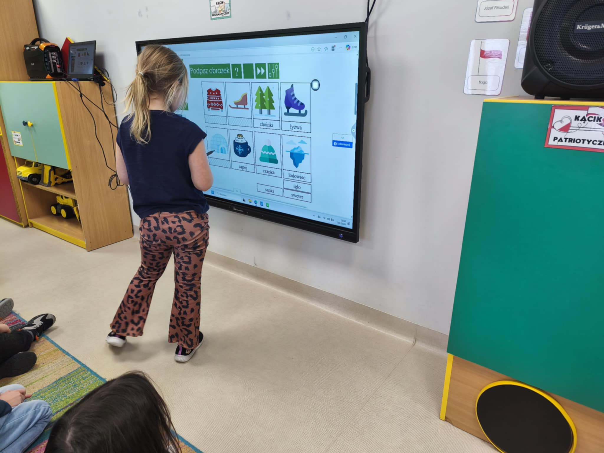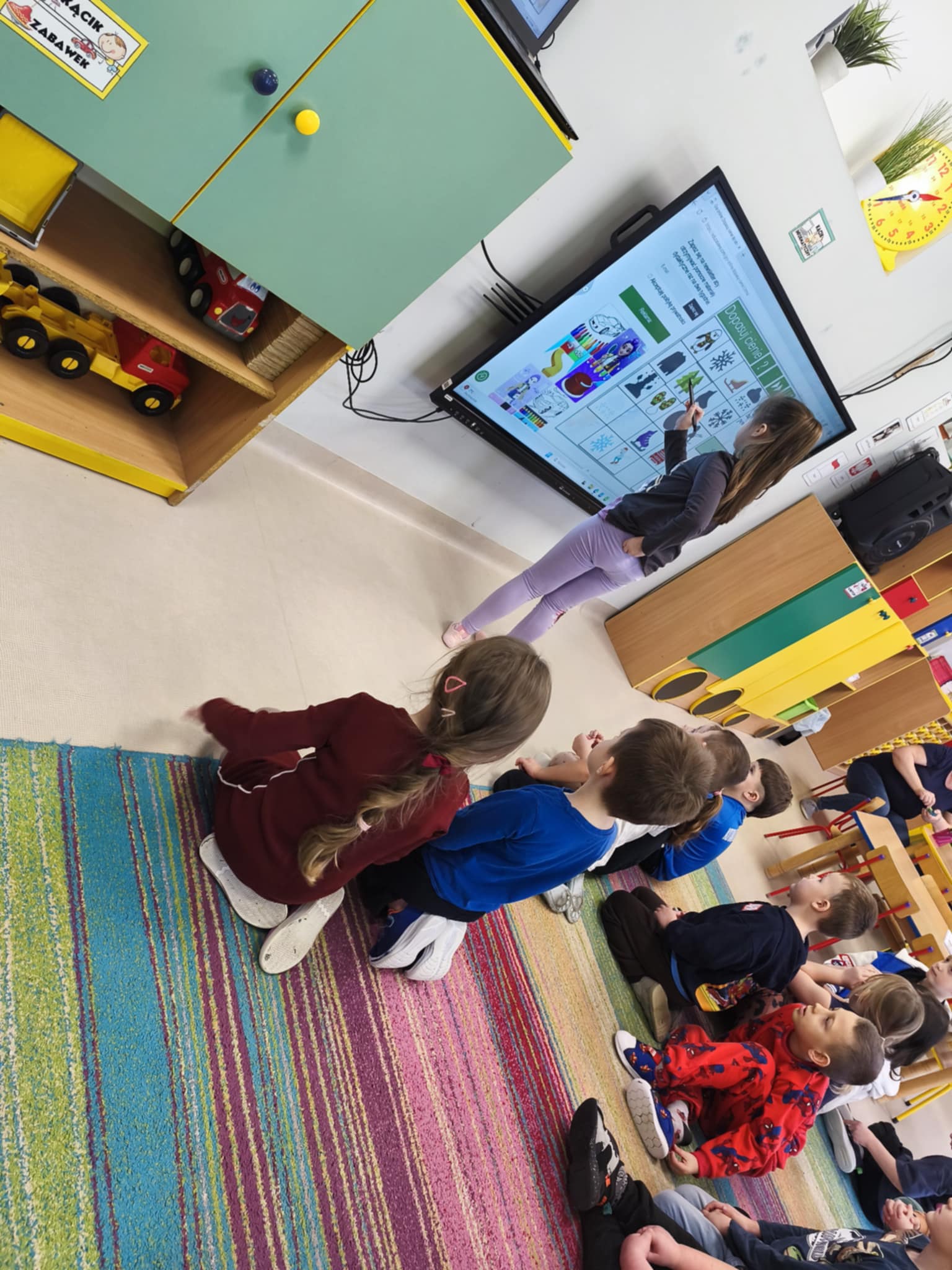 Zabawę rozpoczęliśmy od udziału w zimowej zumbie, co sprawiło dzieciom mnóstwo radości i pozwoliło na atrakcyjne połączenie muzyki i ruchu. Chwilkę później graliśmy w edukacyjne gry online na ekranie multimedialnym, podczas których ćwiczyliśmy czytanie globalne, dodawanie, odejmowanie, łączenie w pary, a to wszystko w ramach zabawy. Nieodzwonym elementem była również gra pamięciowa - zimowe memorki, również przy użyciu ekranu. Na zakończenie, korzystając z pięknej, zimowej aury, wybraliśmy się na spacer zimowy, który był idealnym sposobem na zaczęrpnięcie świeżego powietrza, odrobinę ruchu oraz wyciszenie.